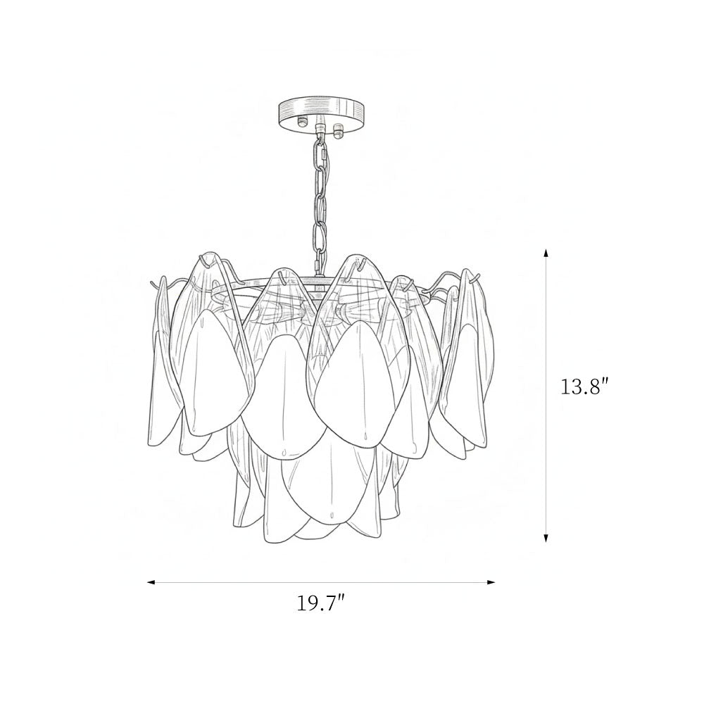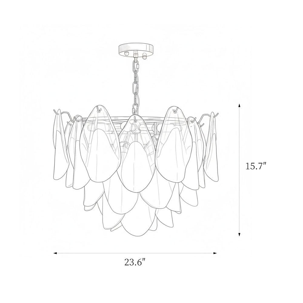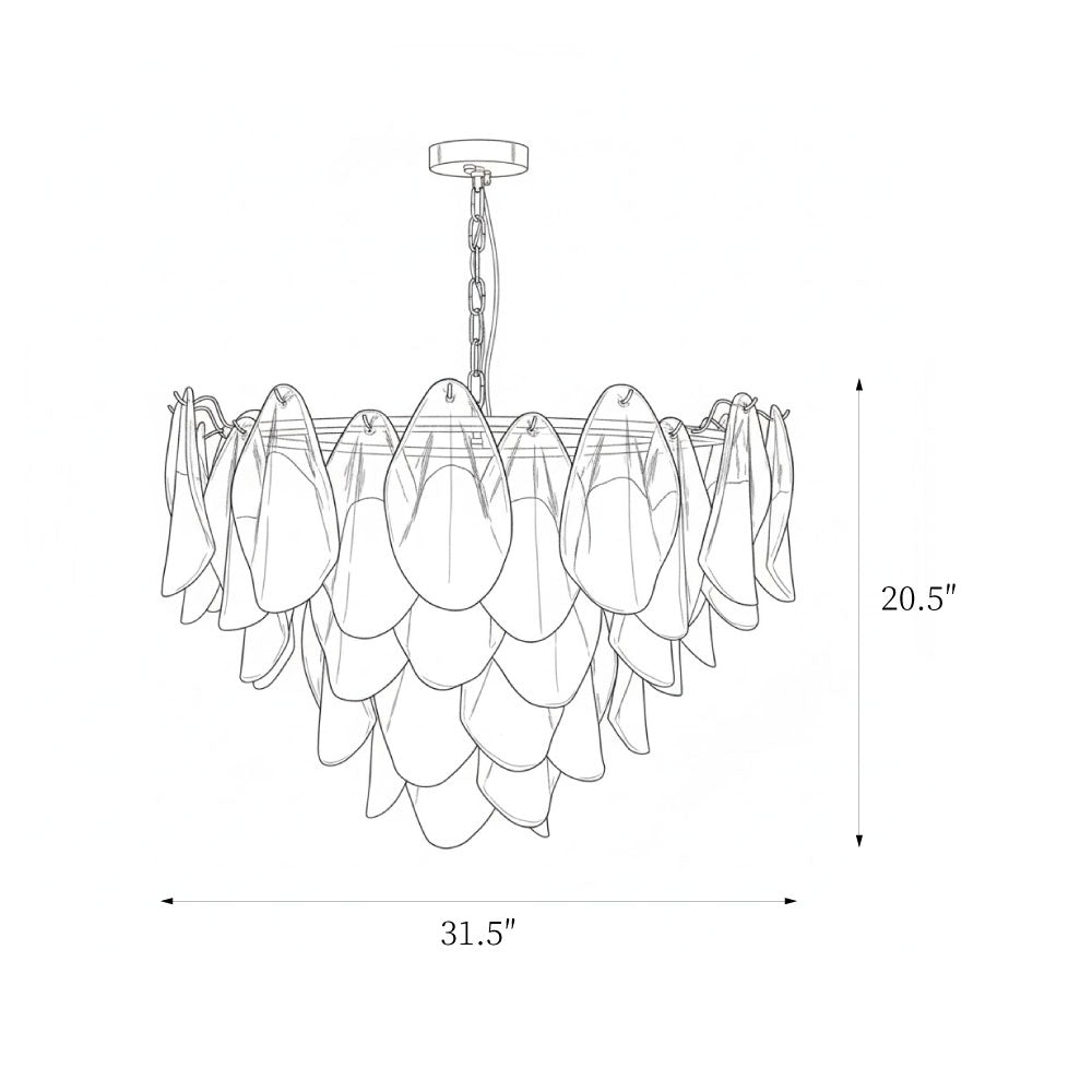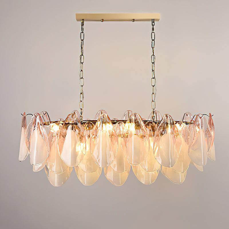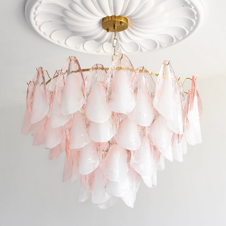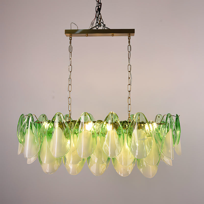 The Fuchsia Petal Chandelier celebrates the poetic rhythm of nature through cascading glass petals tinted in delicate shades of green, pink. Each hand-shaped piece captures the soft translucency of blooming flora, suspended from a iron frame that adds a refined contrast. With its luminous layering and fluid form, this chandelier creates an ethereal presence, ideal for transforming dining rooms, lounges, or artistic interiors into spaces of warmth, movement, and modern botanical elegance.