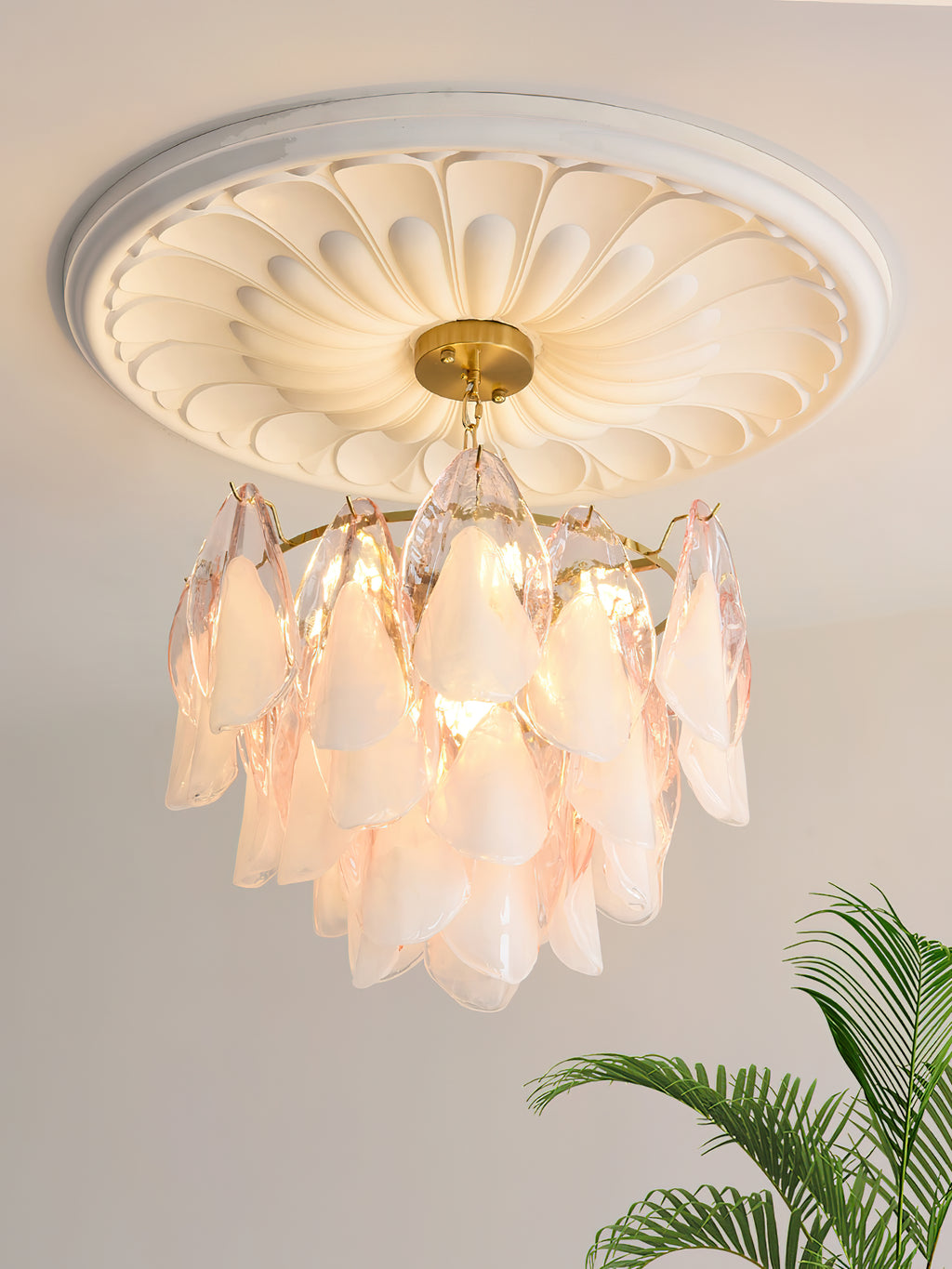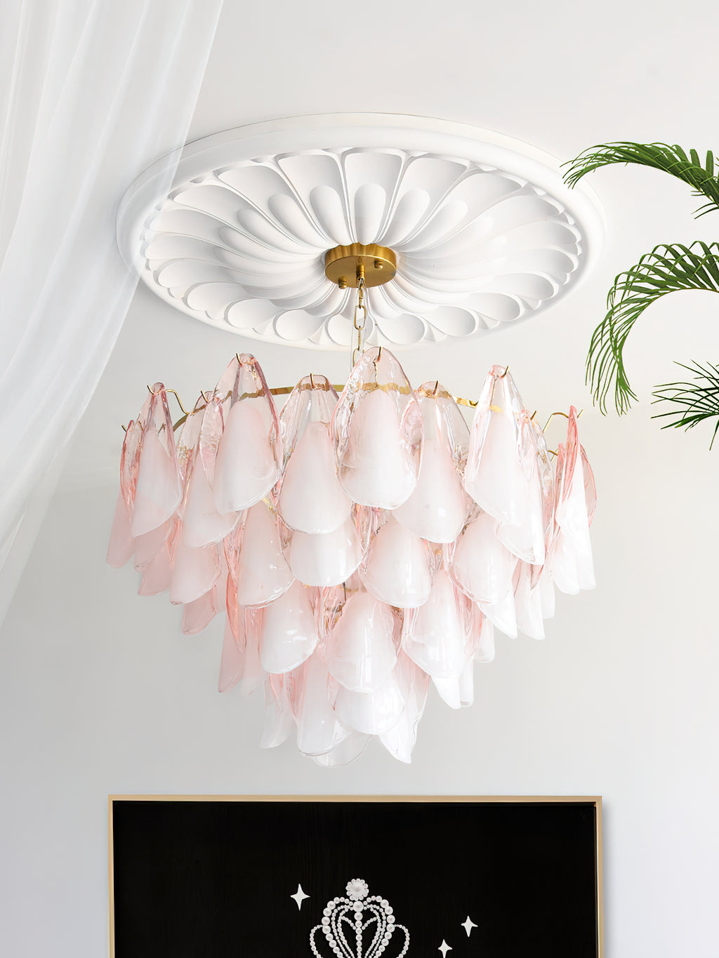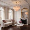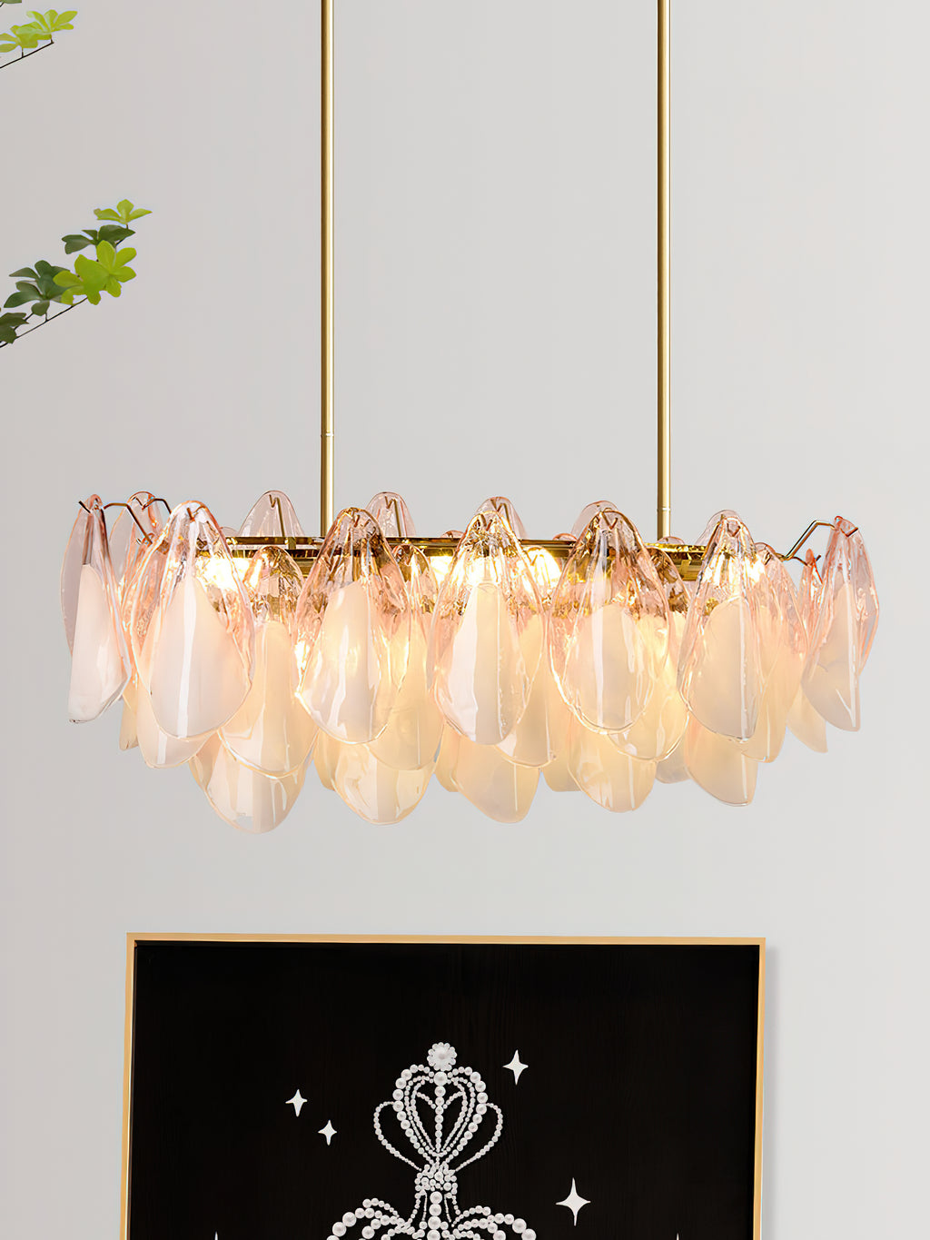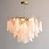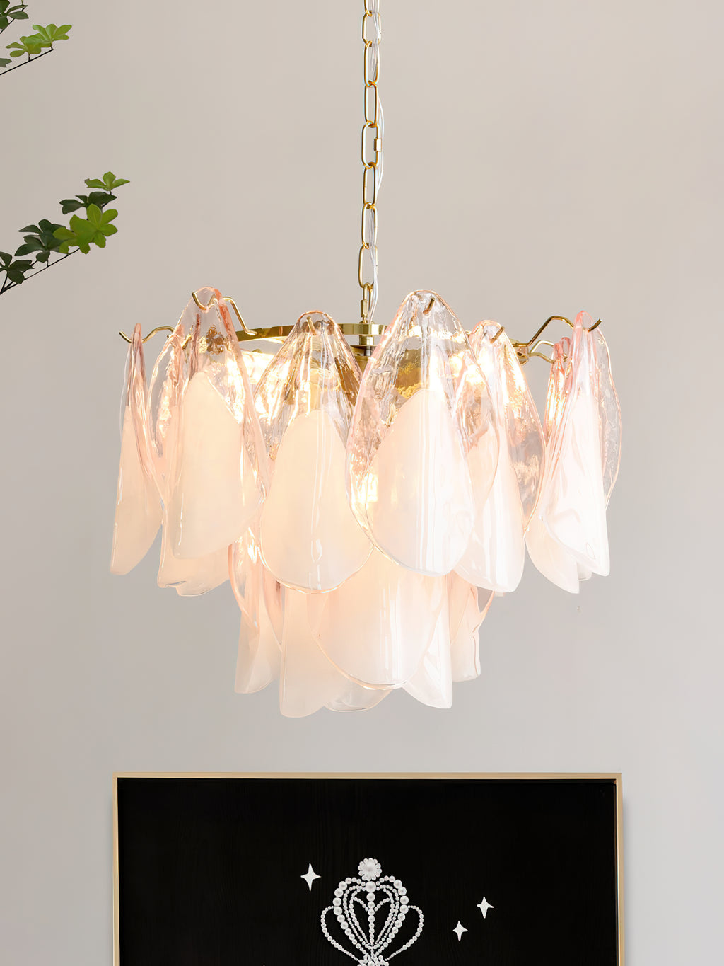 The Fuchsia Petal Chandelier celebrates the poetic rhythm of nature through cascading glass petals tinted in delicate shades of green, pink. Each hand-shaped piece captures the soft translucency of blooming flora, suspended from a iron frame that adds a refined contrast. With its luminous layering and fluid form, this chandelier creates an ethereal presence, ideal for transforming dining rooms, lounges, or artistic interiors into spaces of warmth, movement, and modern botanical elegance.