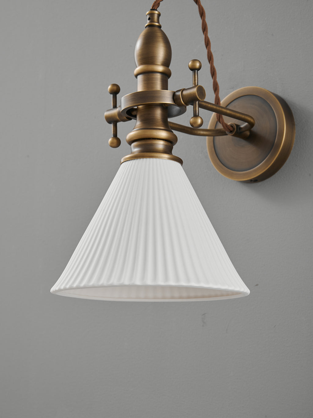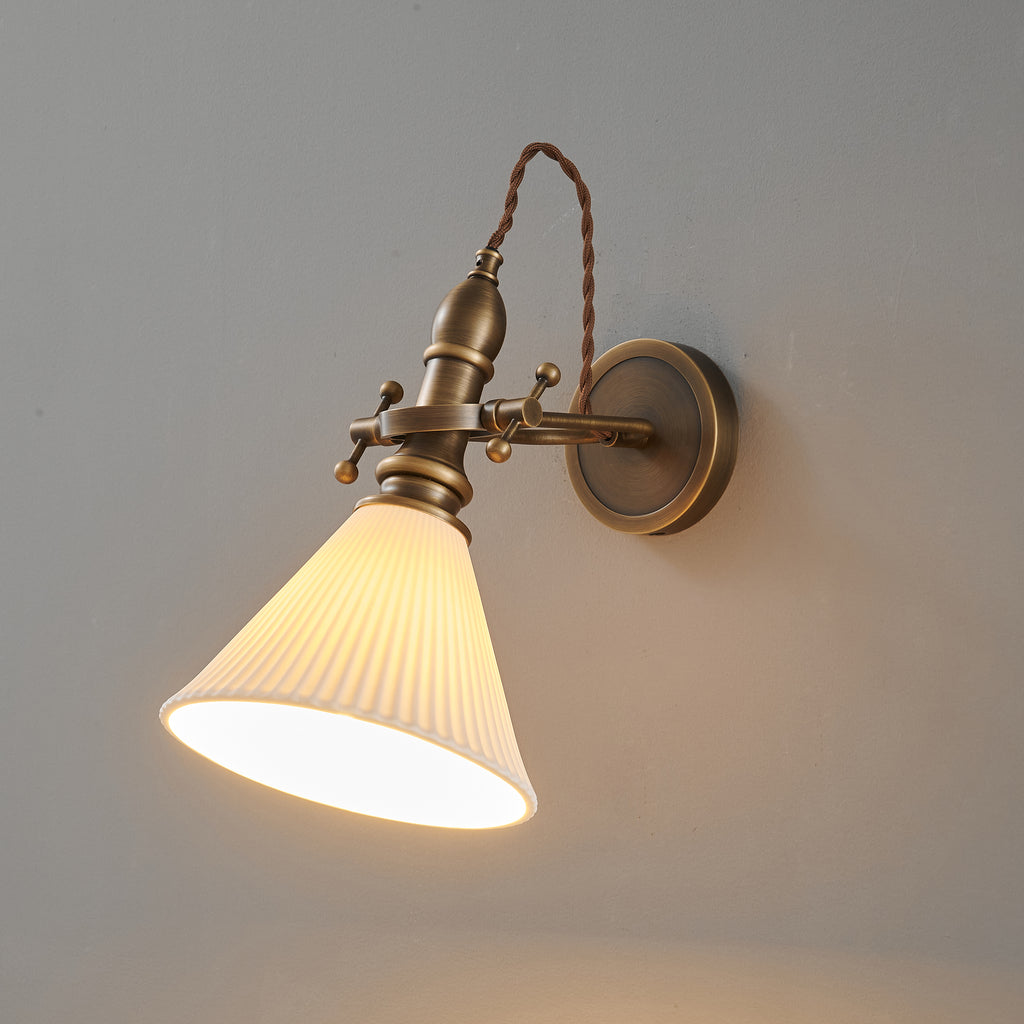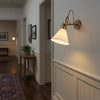 Wellfleet Adjustable Wall Lamp in brass with glass shade delivers sophisticated ambient lighting for any interior space. The adjustable design allows you to direct light precisely where needed, making it ideal for reading nooks, bedside tables, or accent lighting. Crafted from durable brass with a complementary glass shade, this fixture combines timeless elegance with functional versatility. The warm metallic finish pairs beautifully with modern and traditional décor alike, while the adjustable arm ensures optimal positioning for your specific lighting requirements.