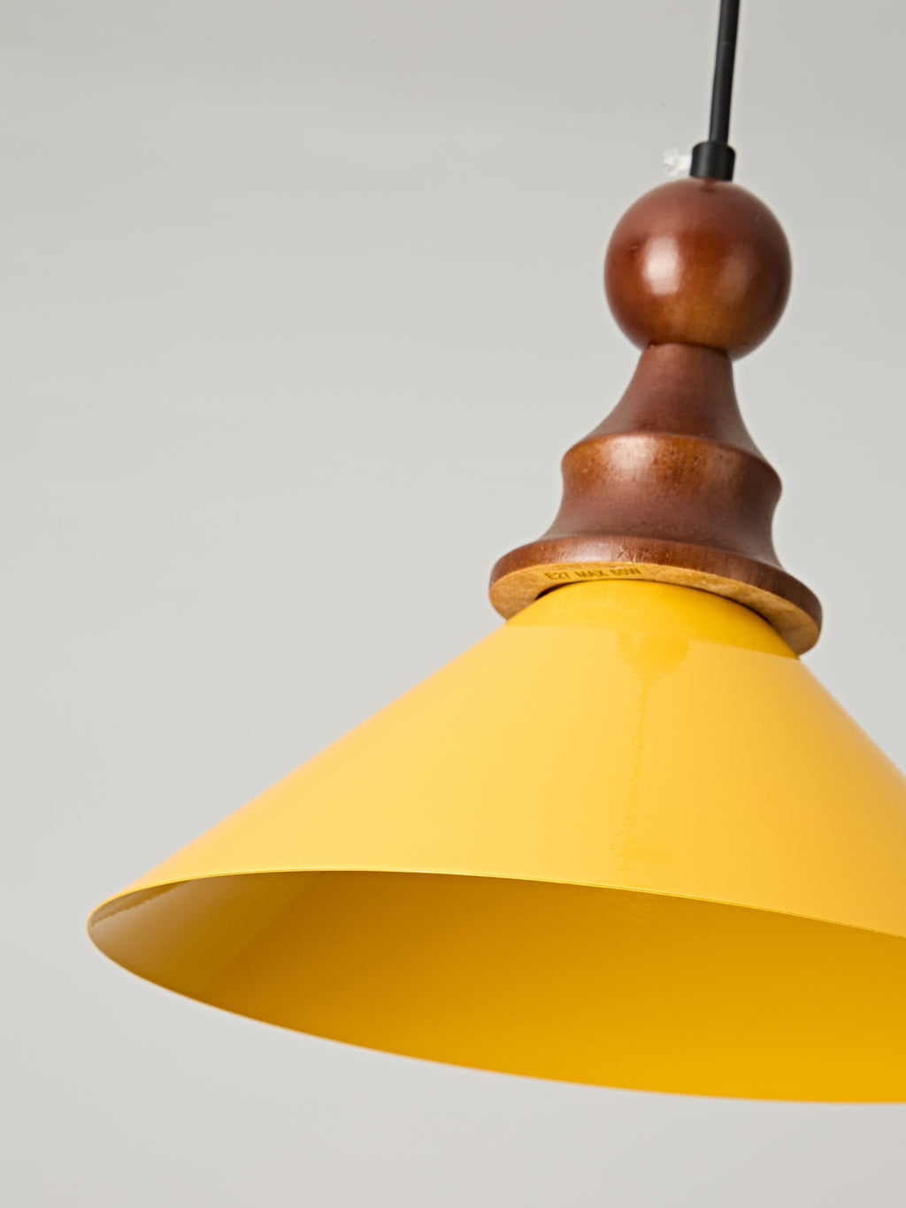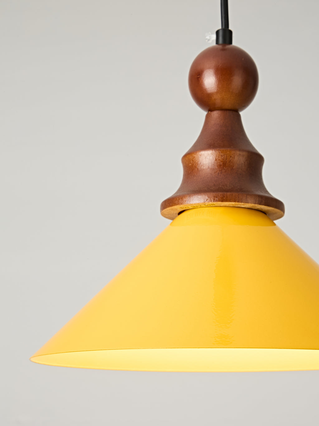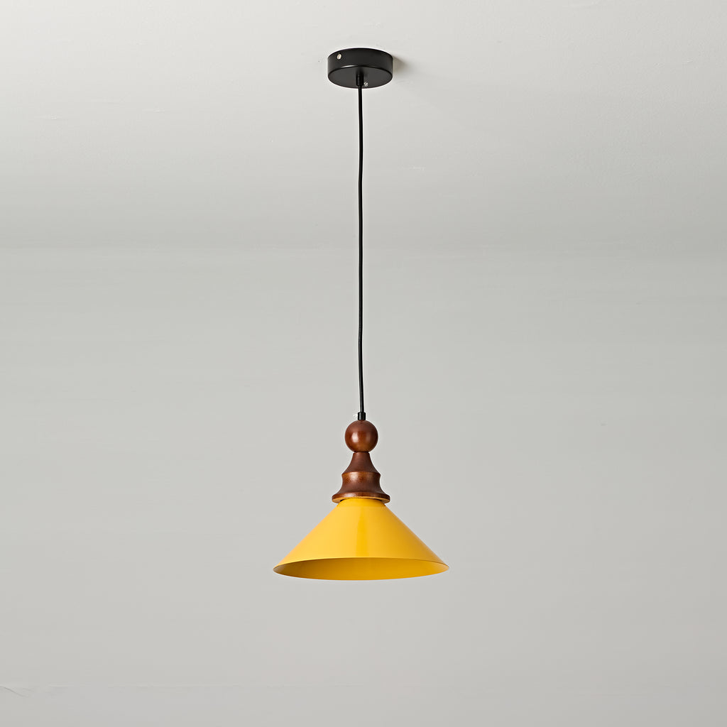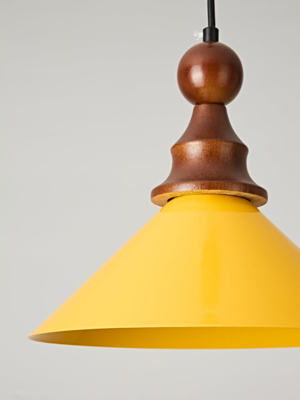 The Zest Pendant is a masterclass in material contrast, where the warmth of hand-finished solid wood meets the sharp precision of industrial ironwork. This piece features a vibrant, conical silhouette that acts as a structural focal point in any room. The stacked wooden neck adds a tactile, organic element to the sleek metal shade, creating a balanced design that feels both nostalgic and firmly rooted in the present.