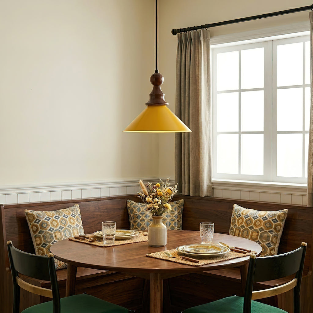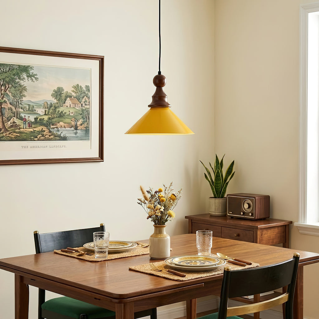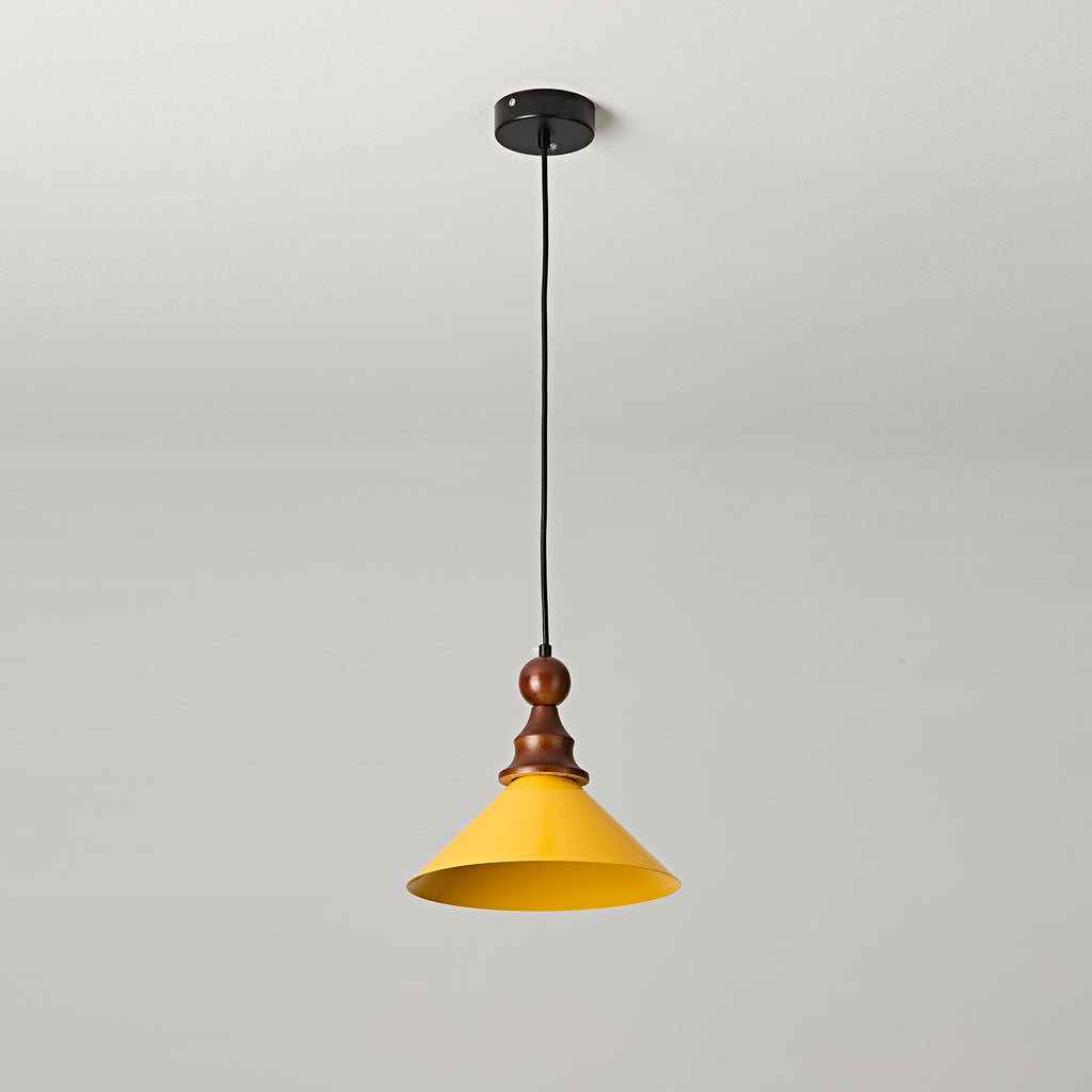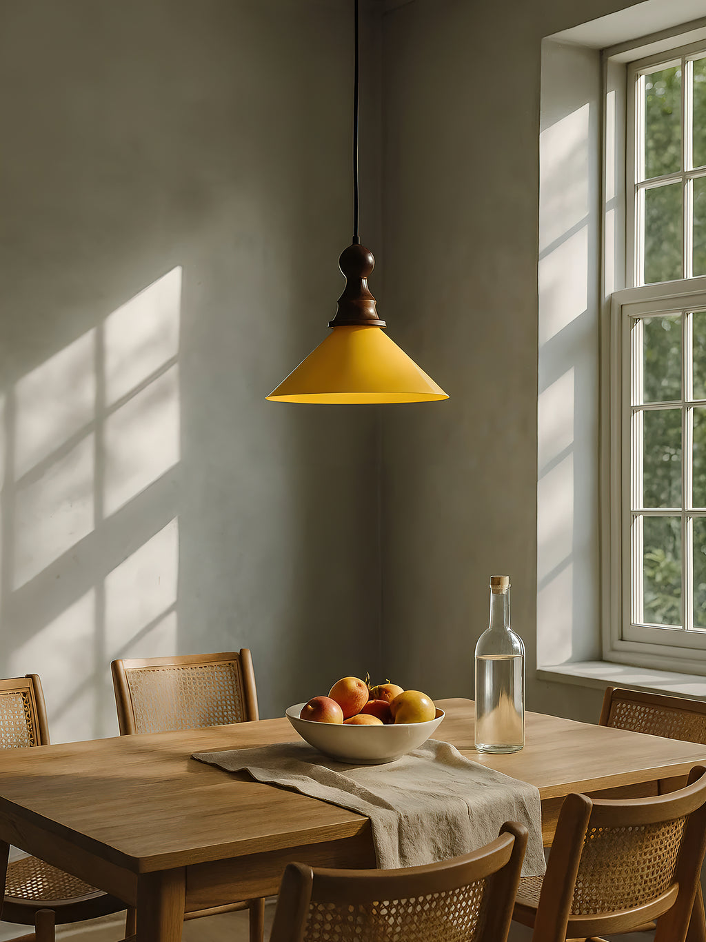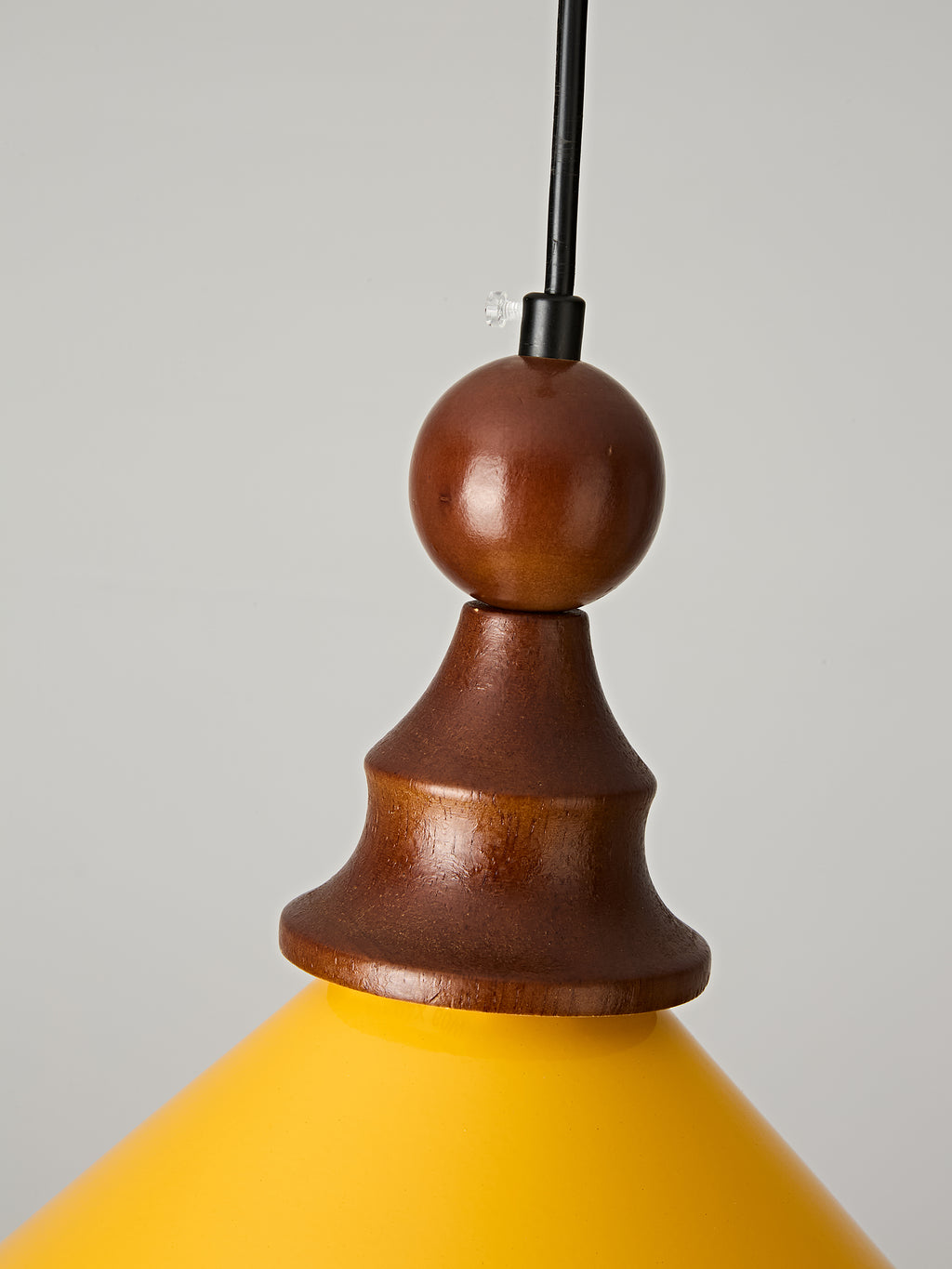The Zest Pendant is a masterclass in material contrast, where the warmth of hand-finished solid wood meets the sharp precision of industrial ironwork. This piece features a vibrant, conical silhouette that acts as a structural focal point in any room. The stacked wooden neck adds a tactile, organic element to the sleek metal shade, creating a balanced design that feels both nostalgic and firmly rooted in the present.