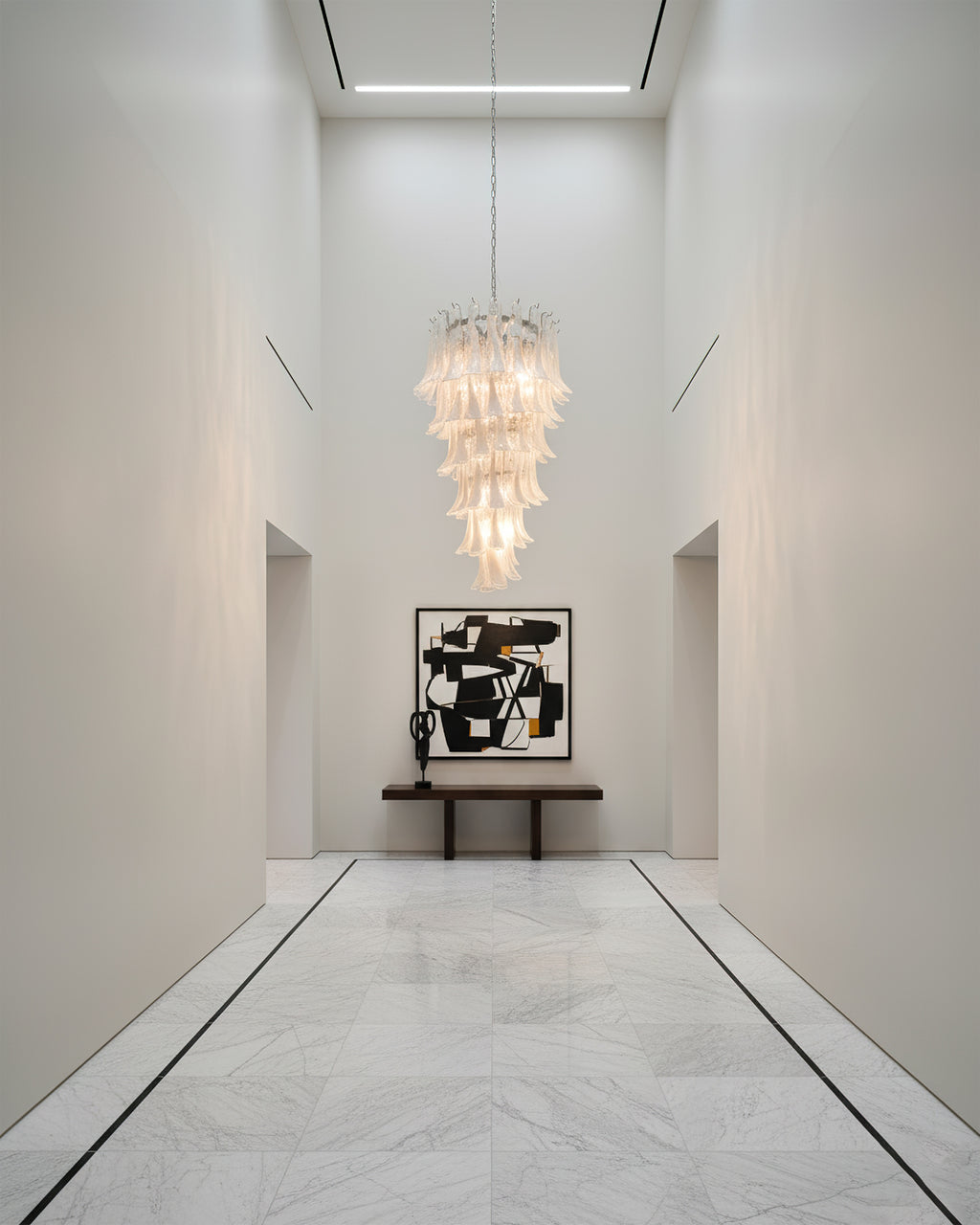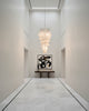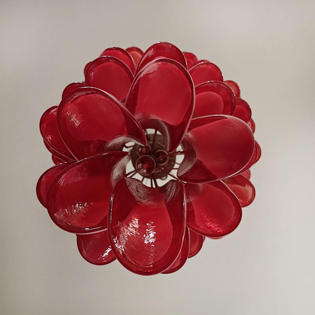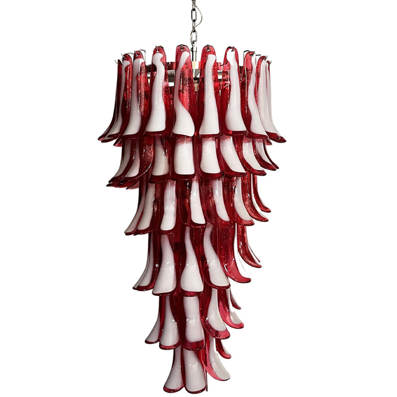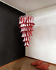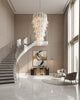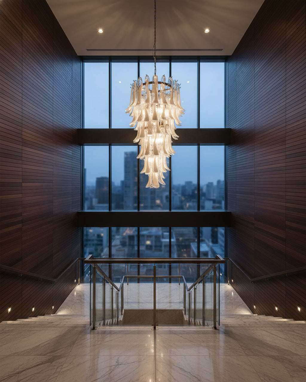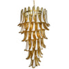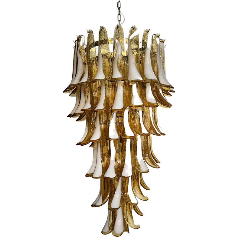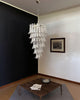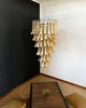 This is the Flares Chandelier, often recognized as a stunning Murano Glass Spiral Chandelier. This piece is pure drama and luxury. It provides a luxurious, ambient, and very flattering glow, making the fixture look like a soft, glittering cloud.