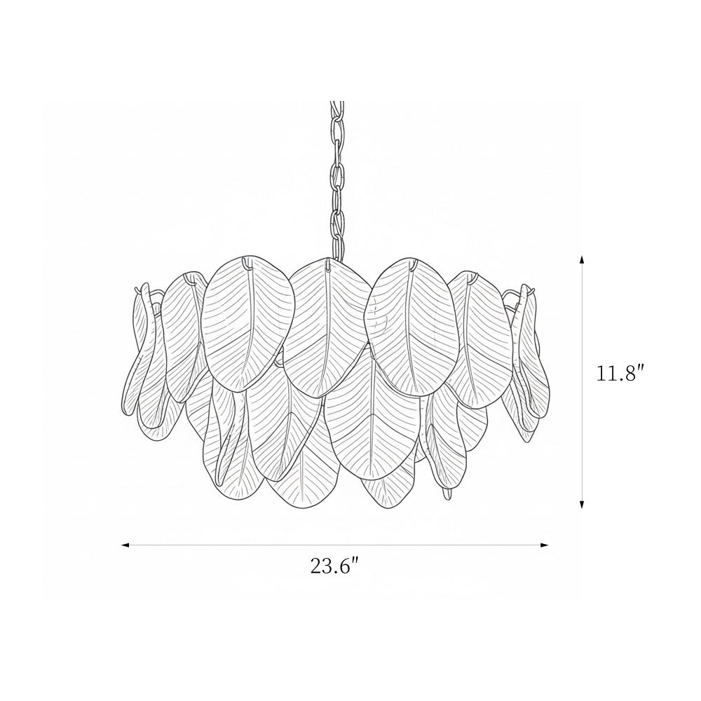 Elevate your interior with this striking freya hloya chandelier, where nature-inspired design meets sophisticated lighting. Each hand-crafted glass leaf element captures and diffuses light beautifully, creating an enchanting ambiance in any room.