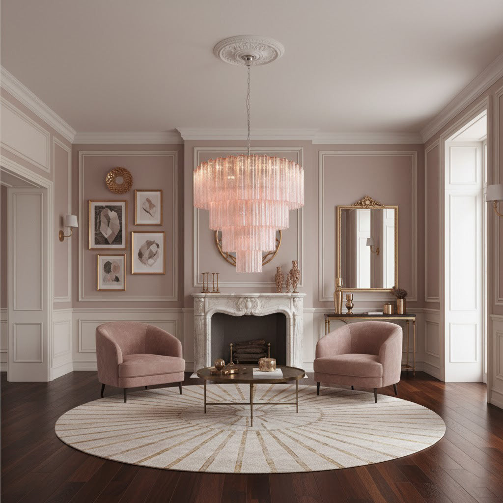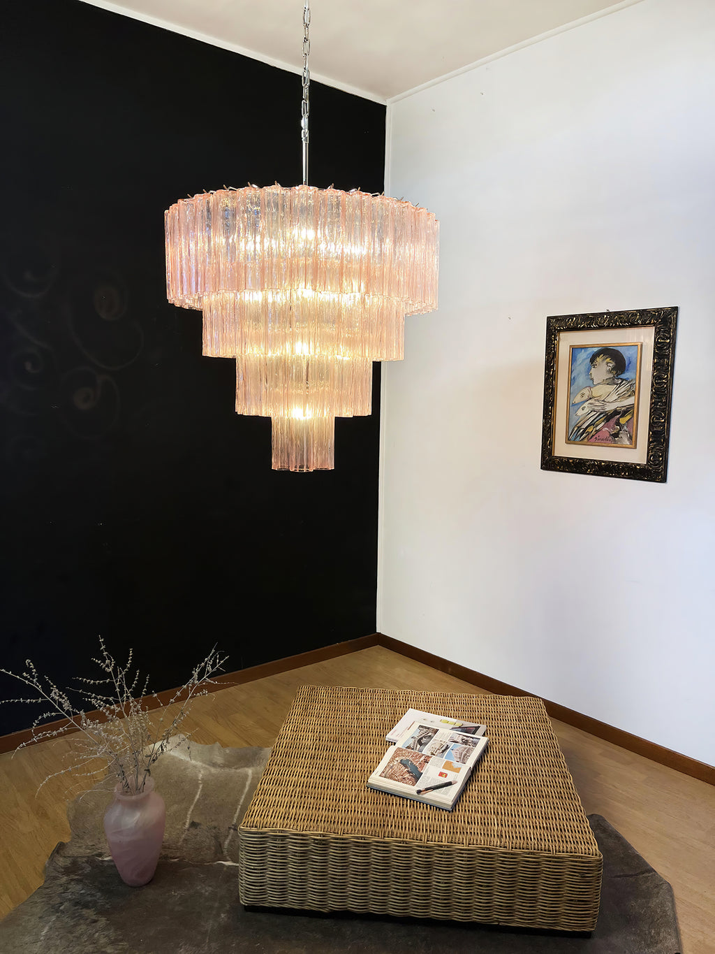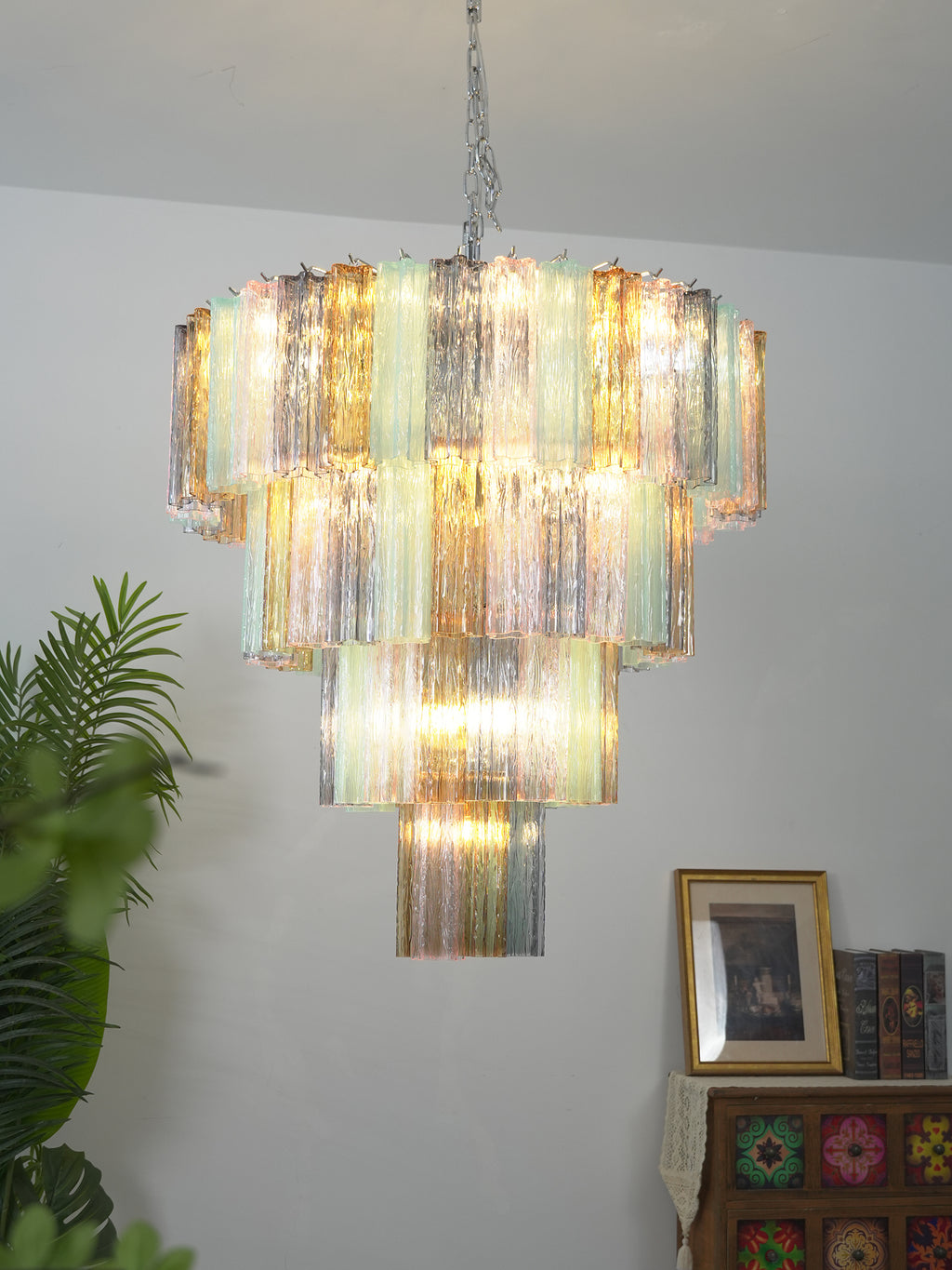 The Tronchi Glass Chandelier showcases authentic Murano glass craftsmanship, featuring hand-blown cylindrical elements that capture and refract light with exceptional clarity. Each piece reflects the artisanal mastery of Venetian glassmakers, delivering sophisticated illumination for discerning interiors. The luminous glass construction creates dynamic visual depth while providing warm, diffused ambient lighting. An investment in timeless design that combines functional elegance with museum-quality artistry.