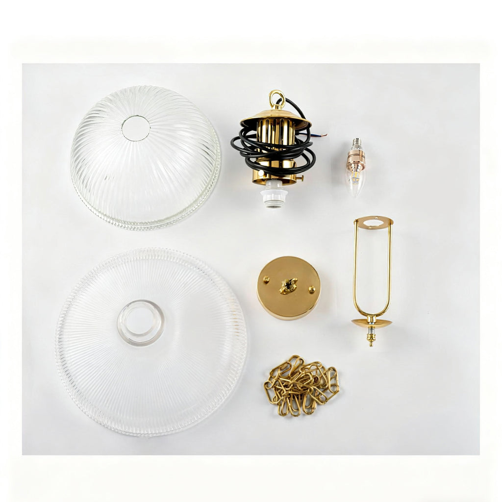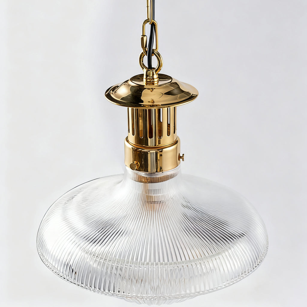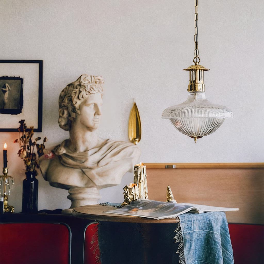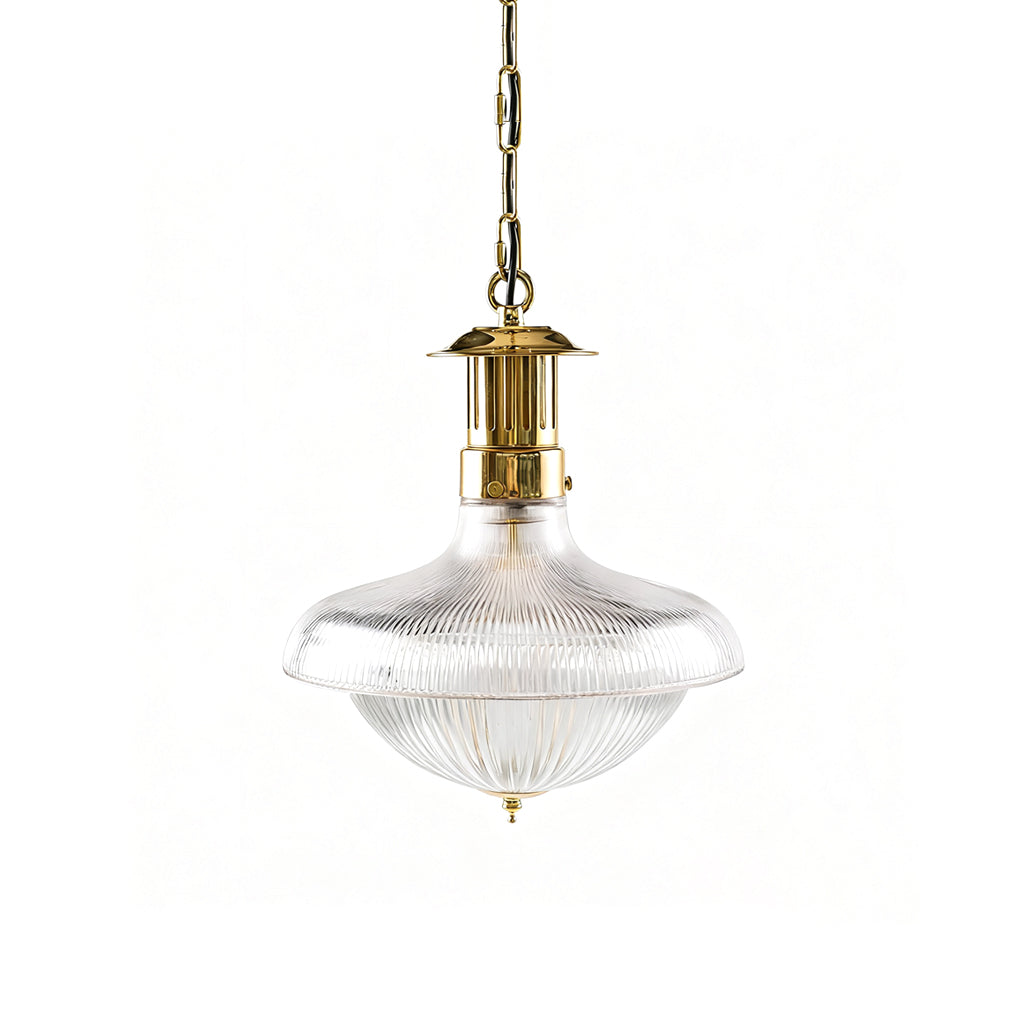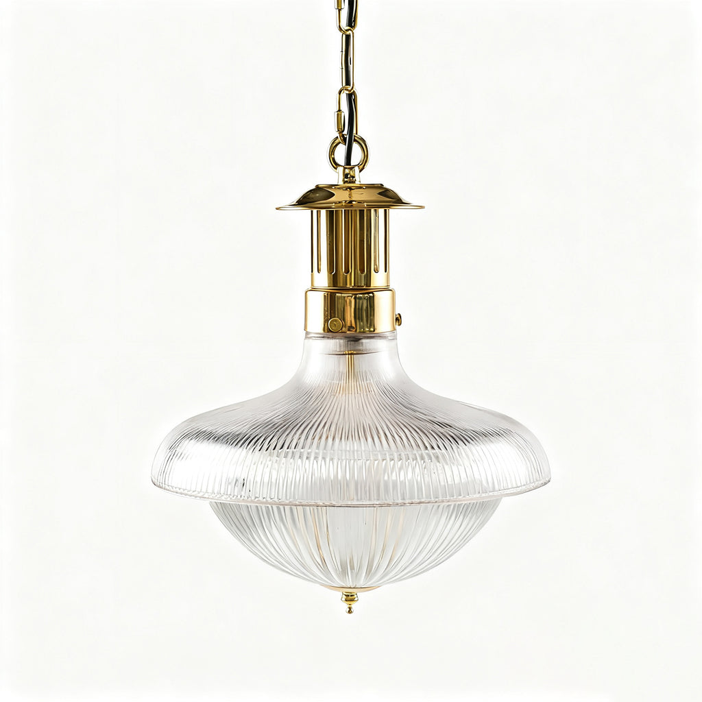 The Corston Pendant Light brings together timeless design and everyday practicality. Made with a sturdy metal frame and a ribbed glass shade, it gives off a warm, even glow while adding a touch of vintage charm to any room. The brass finish pairs beautifully with the clear glass, making it a versatile piece that works well over a kitchen island, in an entryway, or as a statement light in the dining room.