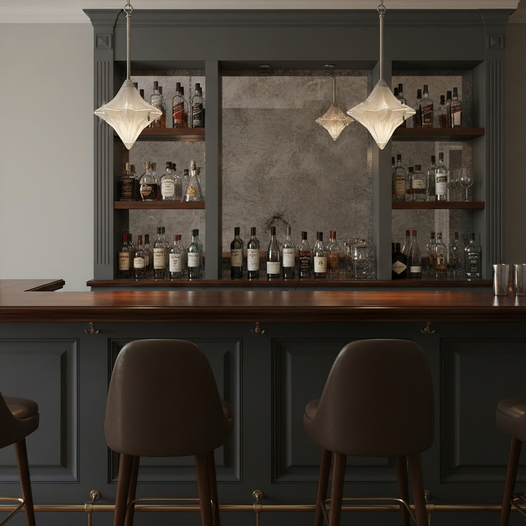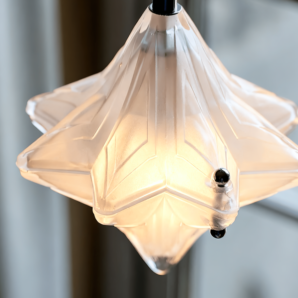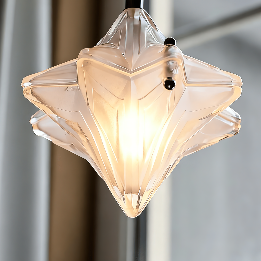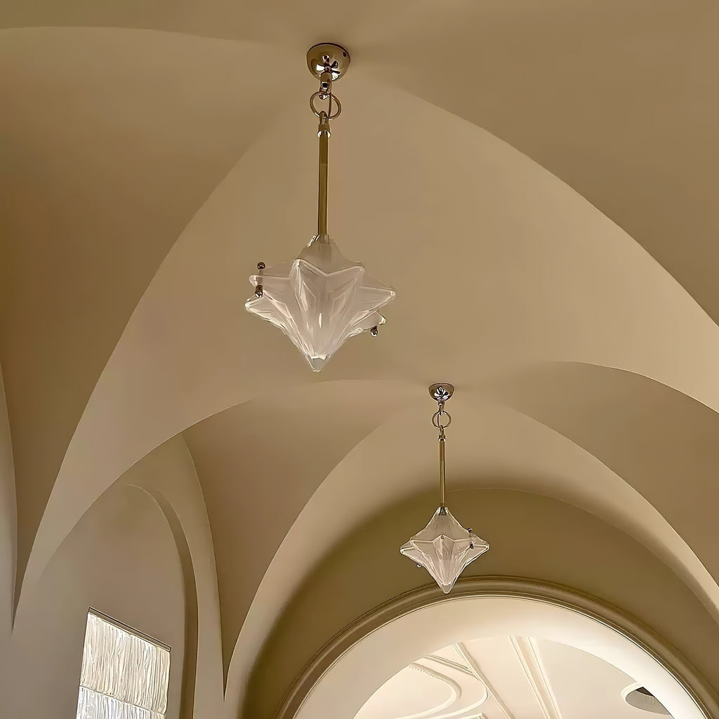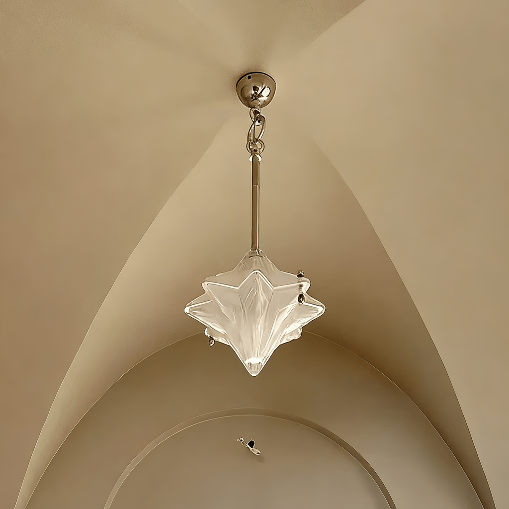 The Lyra Star Pendant Lamp combines timeless elegance with functional design. Crafted from quality glass and iron, this fixture delivers warm, ambient lighting while serving as a striking focal point in any room. The star-shaped design adds architectural interest to modern, transitional, or eclectic interiors. Ideal for dining areas, entryways, or bedrooms, this pendant creates an inviting atmosphere with refined sophistication. Durable construction ensures lasting performance and visual appeal.