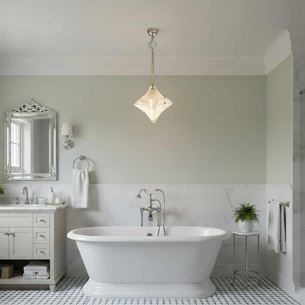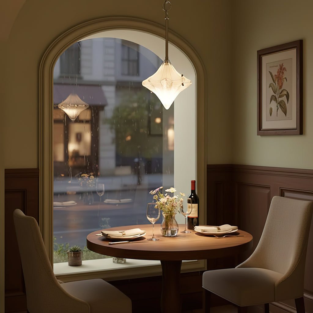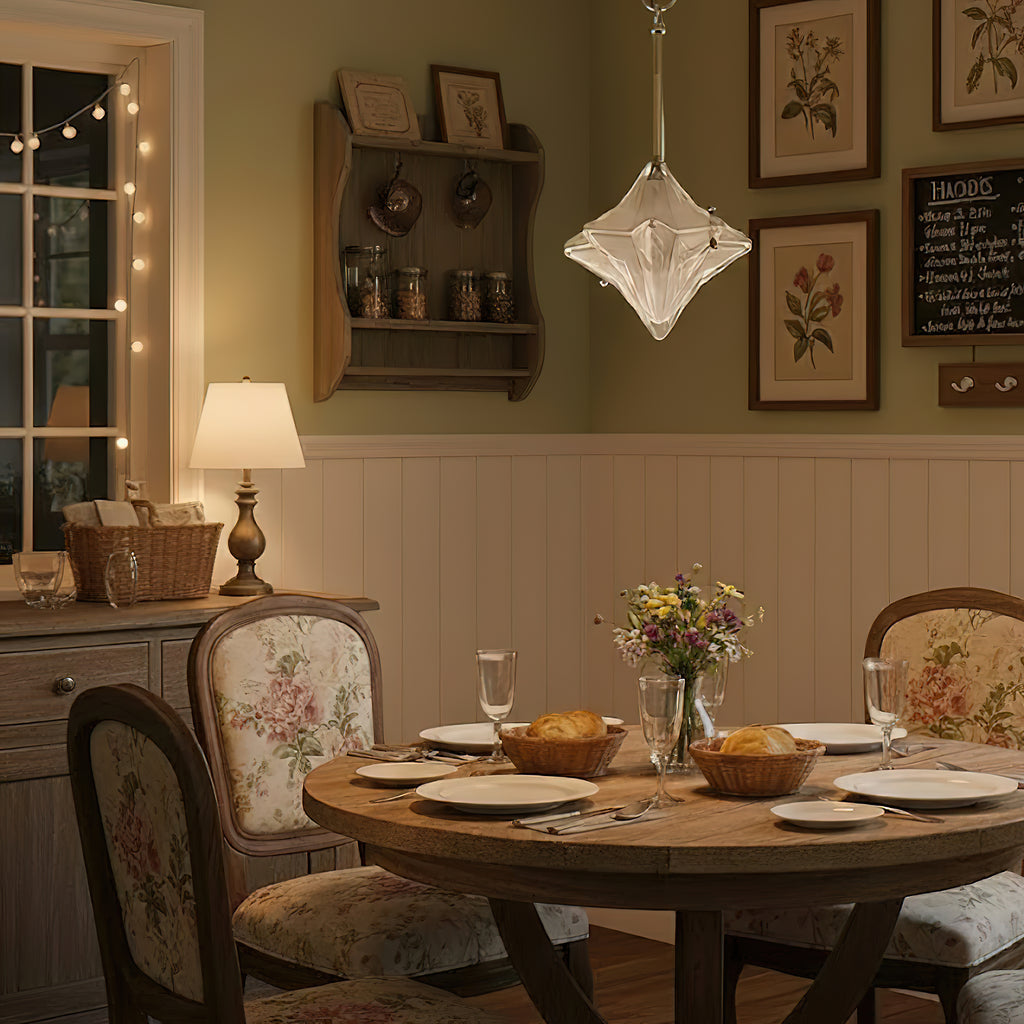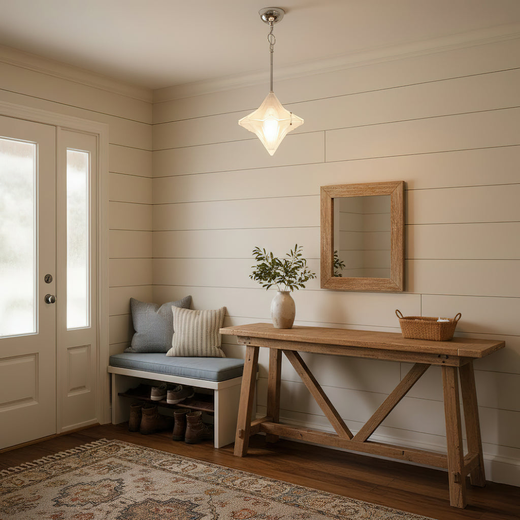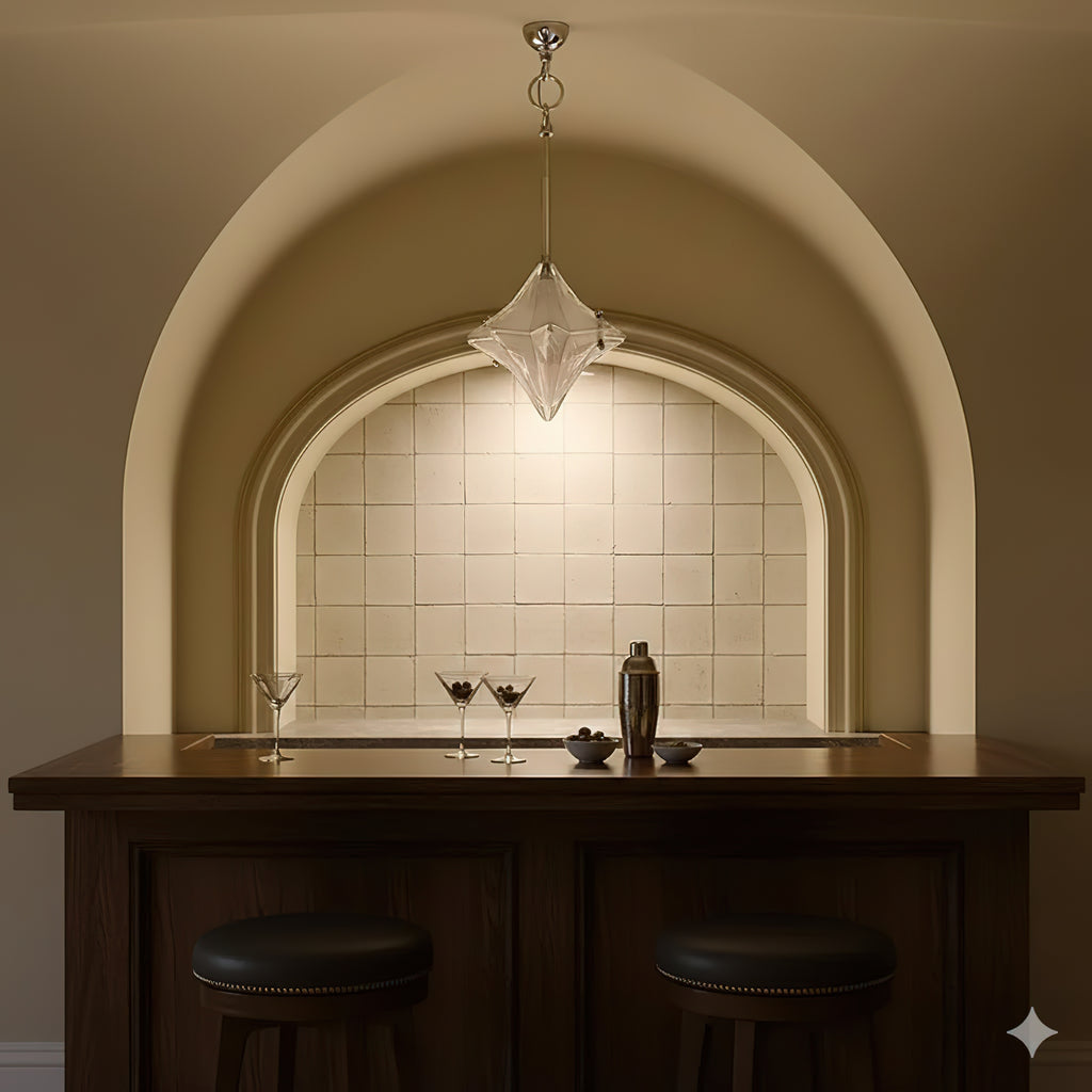The Lyra Star Pendant Lamp combines timeless elegance with functional design. Crafted from quality glass and iron, this fixture delivers warm, ambient lighting while serving as a striking focal point in any room. The star-shaped design adds architectural interest to modern, transitional, or eclectic interiors. Ideal for dining areas, entryways, or bedrooms, this pendant creates an inviting atmosphere with refined sophistication. Durable construction ensures lasting performance and visual appeal.
