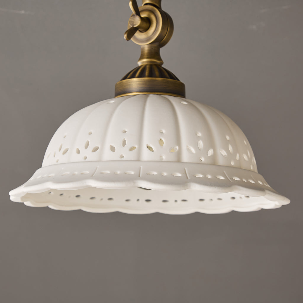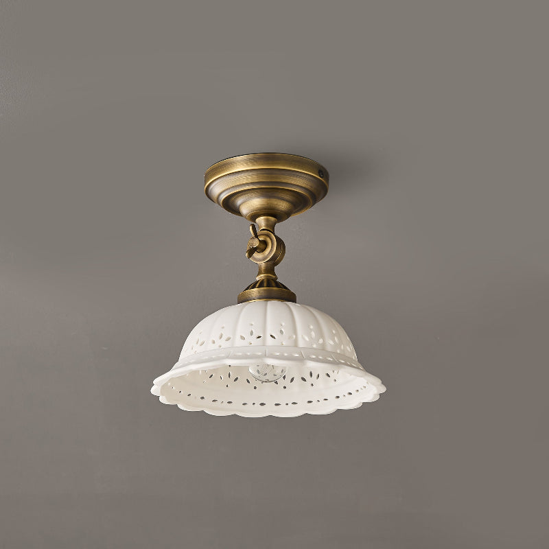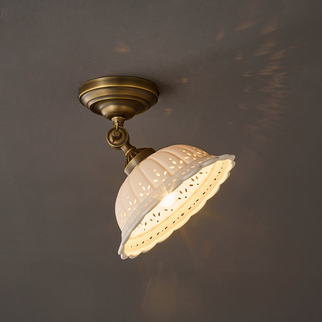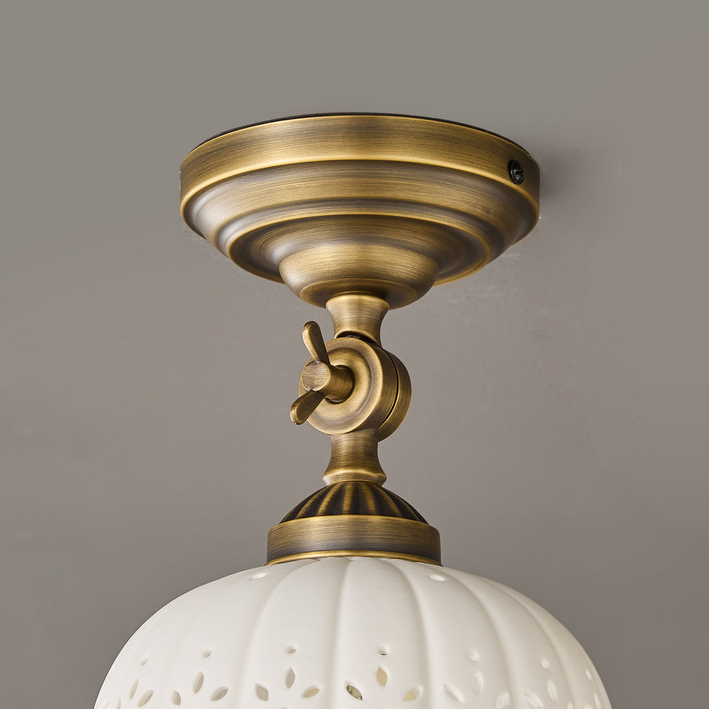 The Rochelle Ceiling Light combines timeless elegance with refined craftsmanship. Featuring a sophisticated brass framework paired with hand-finished ceramic elements, this fixture delivers warm, ambient illumination while serving as a striking architectural accent.Ideal for entryways, dining spaces, or bedrooms seeking understated luxury and enduring style.