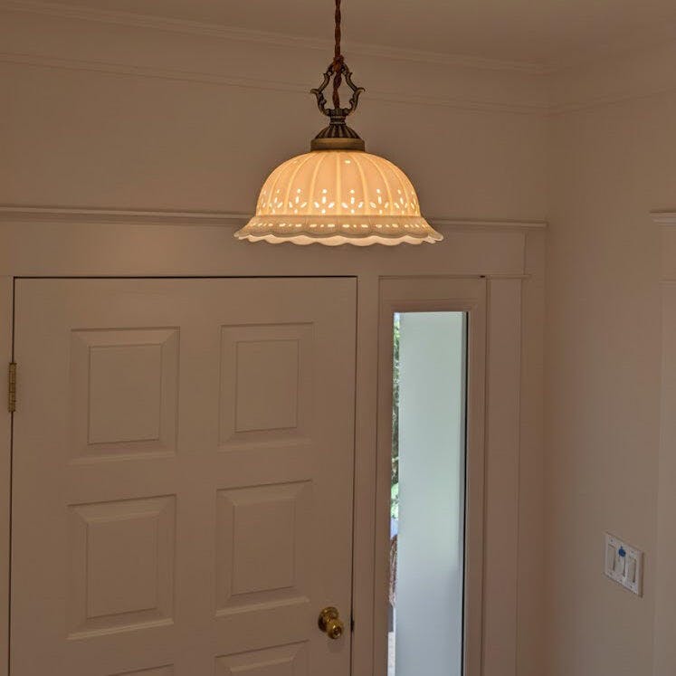 The Rochelle Pendant Light combines timeless elegance with functional design. Crafted from warm brass and complemented by ceramic detailing, this fixture delivers refined illumination for any interior space. The pendant's balanced proportions and quality materials ensure both aesthetic appeal and lasting durability. Ideal for dining areas, entryways, or kitchen islands, it creates a sophisticated focal point while providing reliable ambient lighting. A versatile choice for those seeking understated luxury in their home.