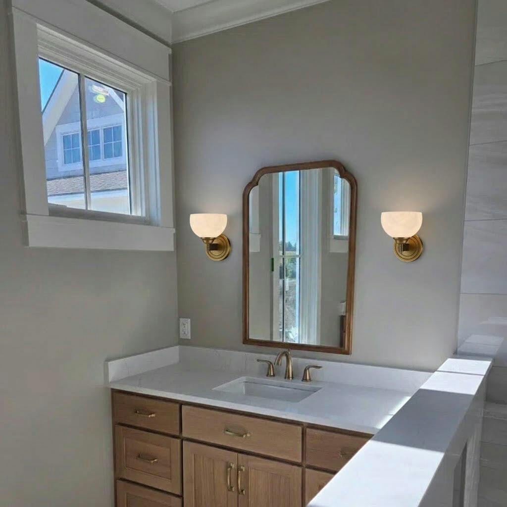 The Selene Wall Lamp showcases antique brass hardware paired with elegant alabaster detailing, delivering a sophisticated aesthetic for discerning interiors. This fixture works beautifully in transitional or classic settings, providing both ambient illumination and architectural interest. Perfect for those seeking lighting that transcends trends and becomes a cherished design investment.