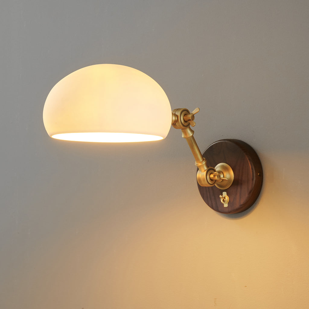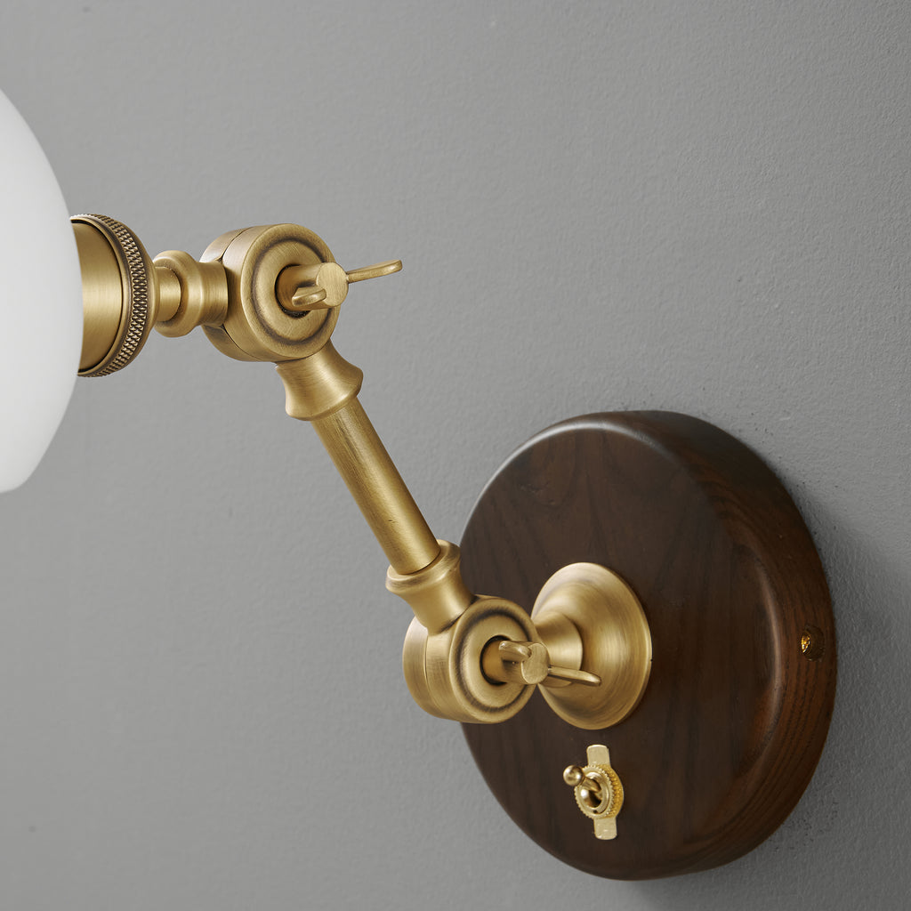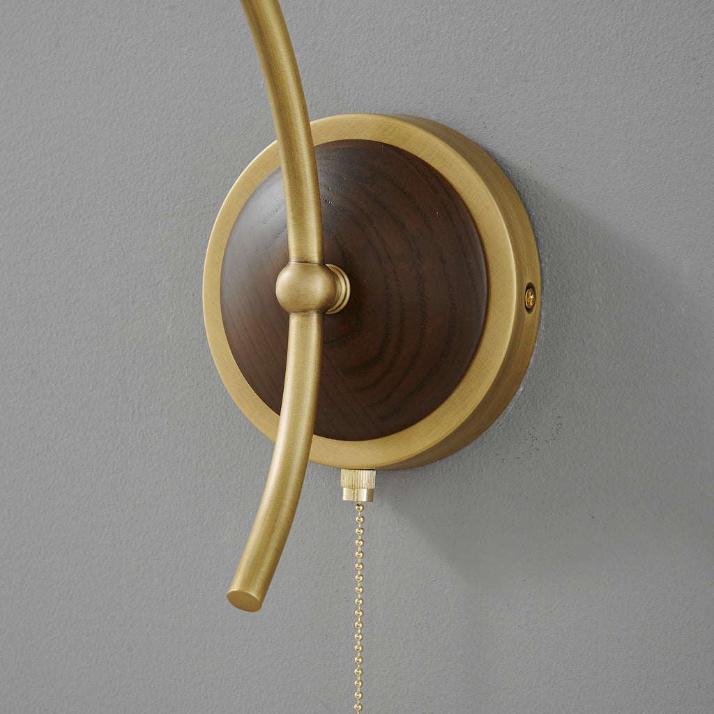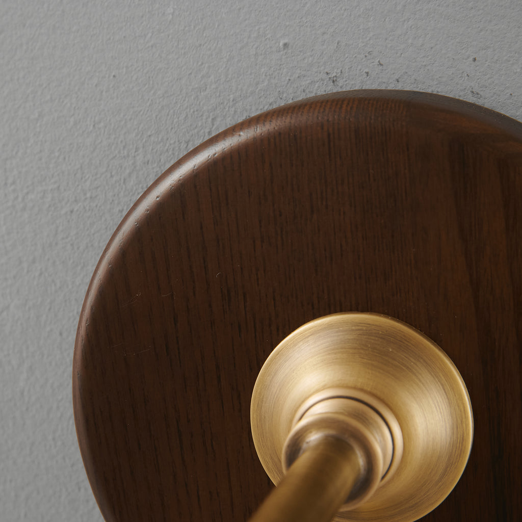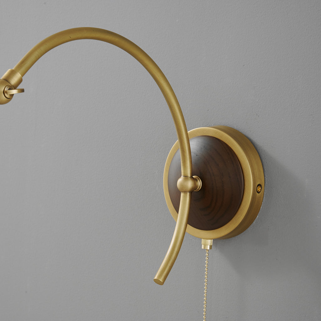 The Miralis Adjustable Wall Lamp combines refined craftsmanship with functional design. Featuring a brass framework paired with warm wood accents and ceramic detailing, this wall-mounted fixture delivers both ambient and task lighting with sophisticated style. The adjustable arm allows precise directional control, making it ideal for reading nooks, bedside spaces, or accent lighting in living areas. Its mixed-material construction creates visual interest while maintaining timeless appeal.