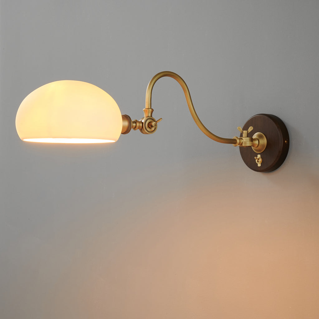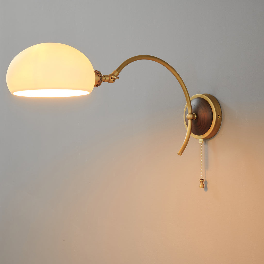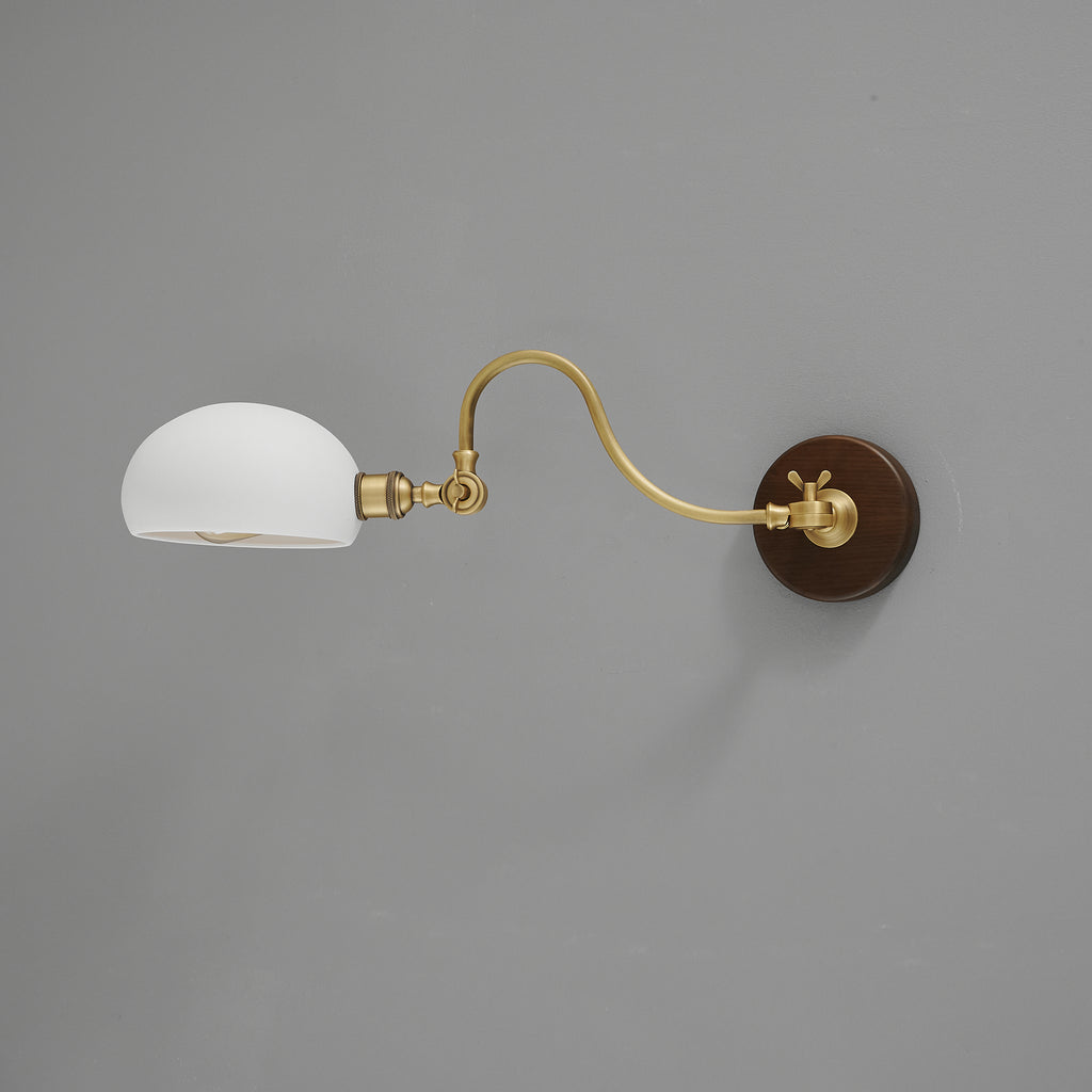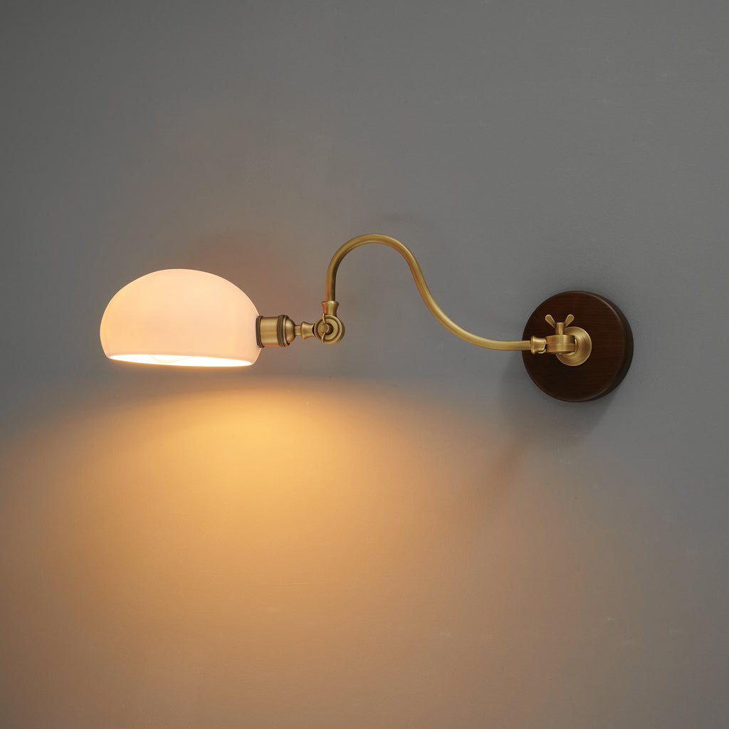 The Miralis Adjustable Wall Lamp combines refined craftsmanship with functional design. Featuring a brass framework paired with warm wood accents and ceramic detailing, this wall-mounted fixture delivers both ambient and task lighting with sophisticated style. The adjustable arm allows precise directional control, making it ideal for reading nooks, bedside spaces, or accent lighting in living areas. Its mixed-material construction creates visual interest while maintaining timeless appeal.