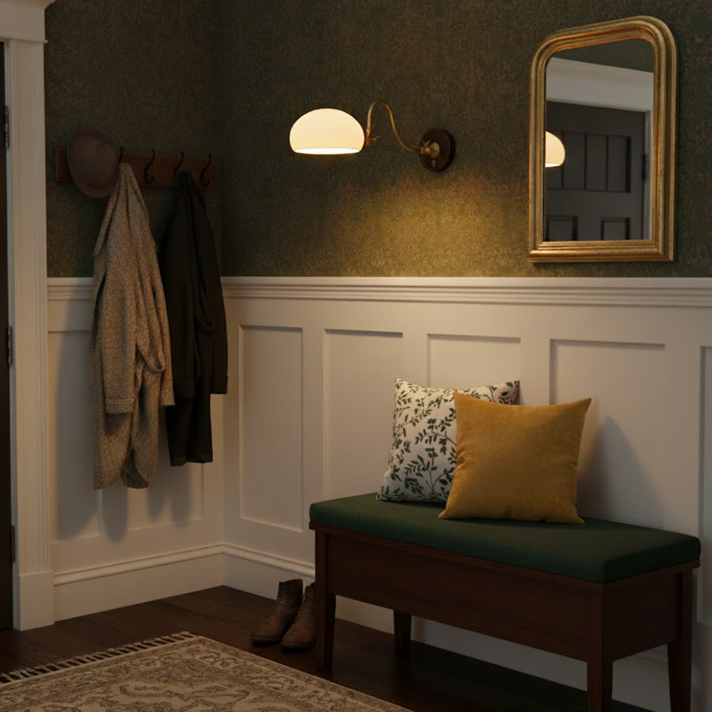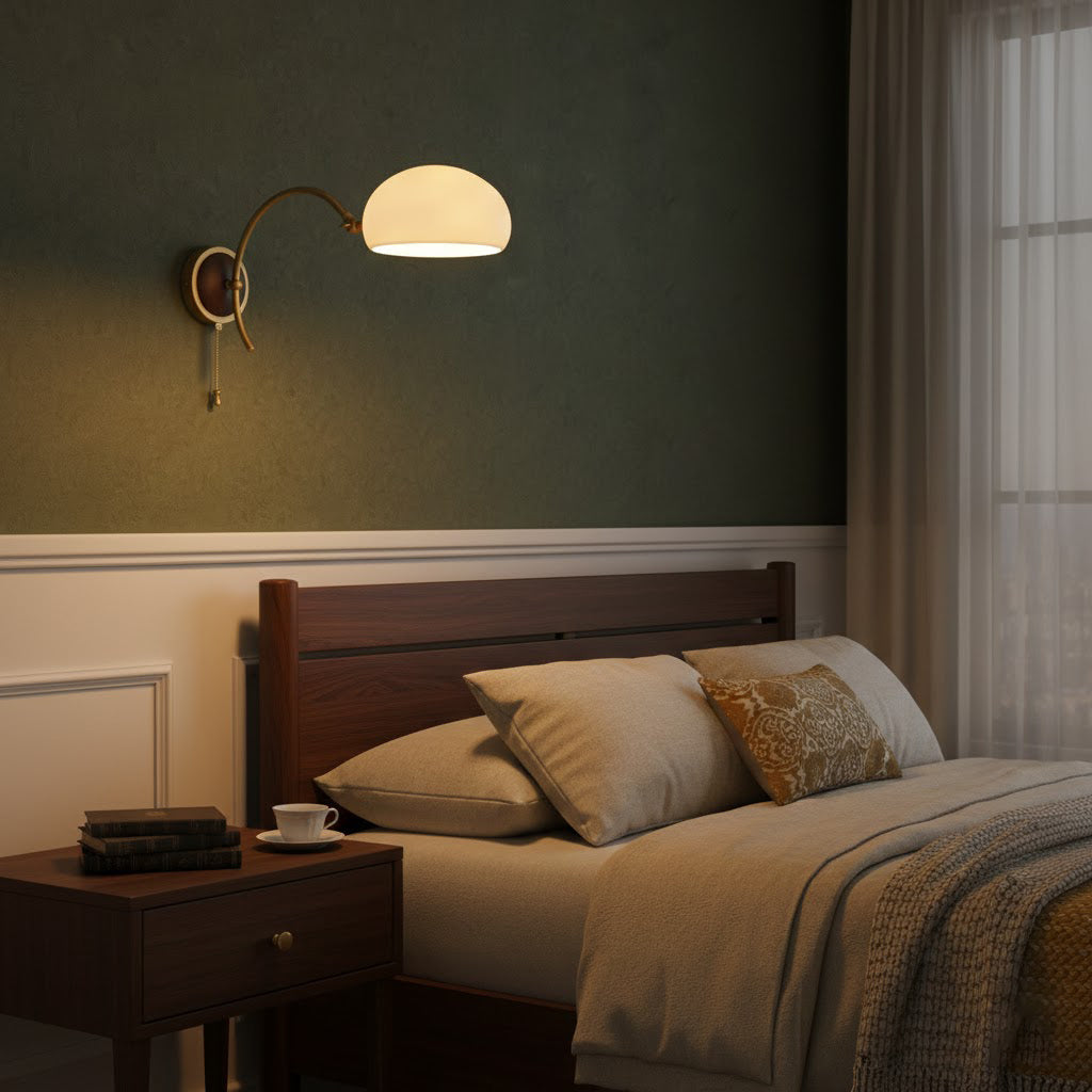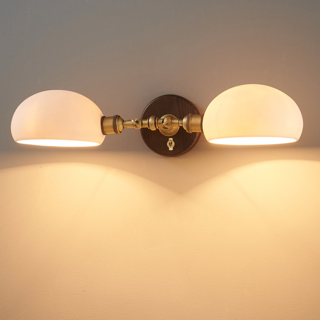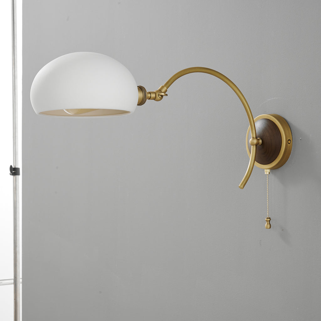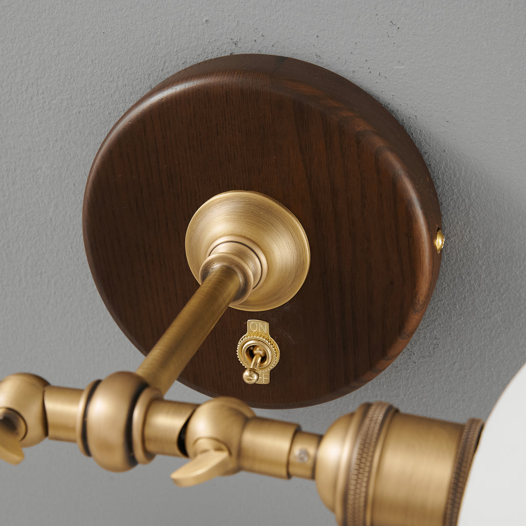 The Miralis Adjustable Wall Lamp combines refined craftsmanship with functional design. Featuring a brass framework paired with warm wood accents and ceramic detailing, this wall-mounted fixture delivers both ambient and task lighting with sophisticated style. The adjustable arm allows precise directional control, making it ideal for reading nooks, bedside spaces, or accent lighting in living areas. Its mixed-material construction creates visual interest while maintaining timeless appeal.