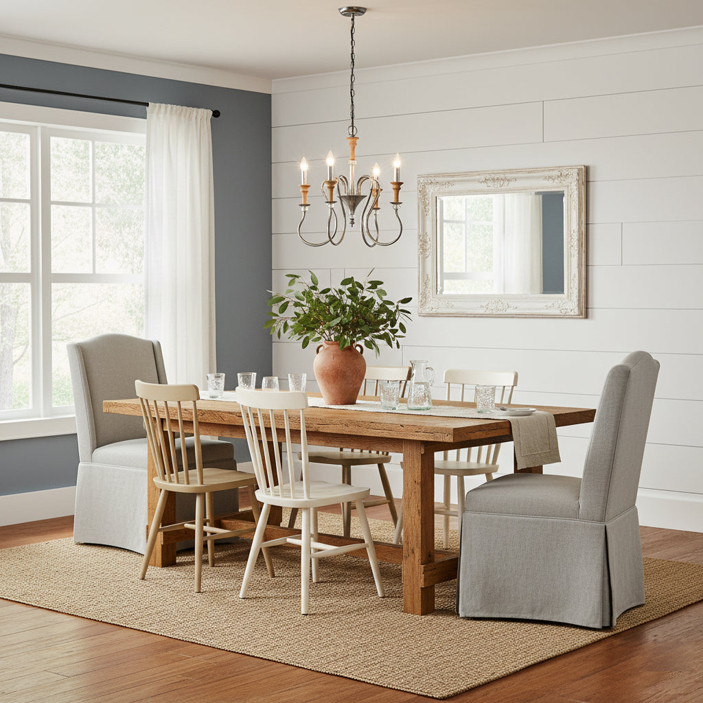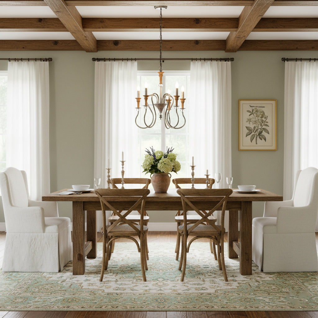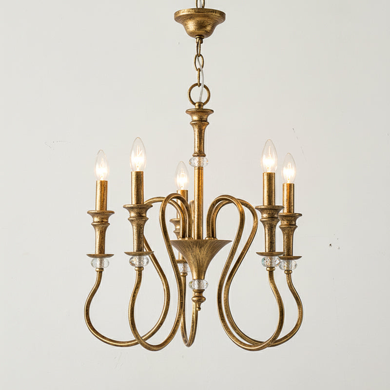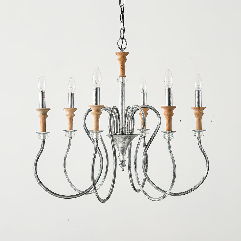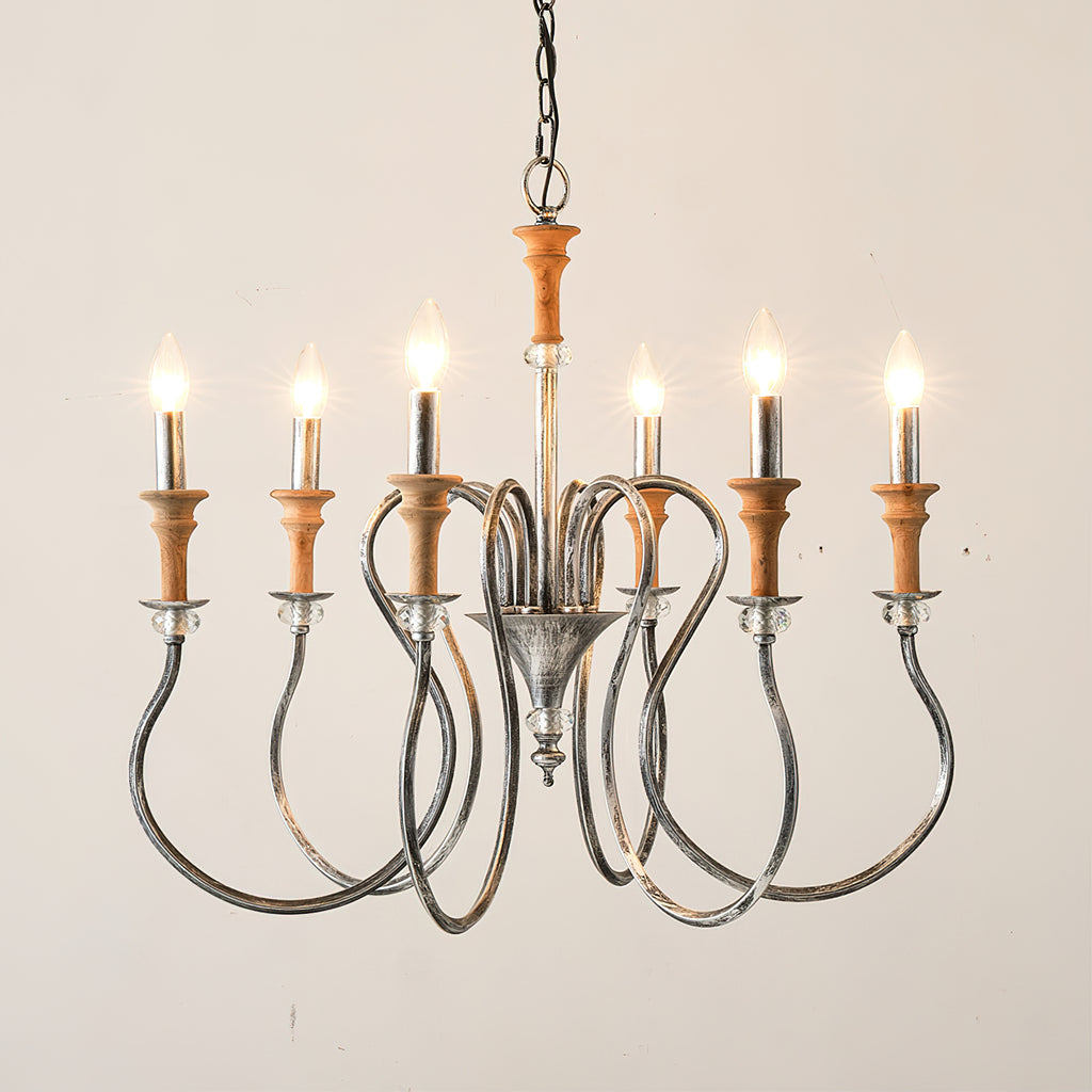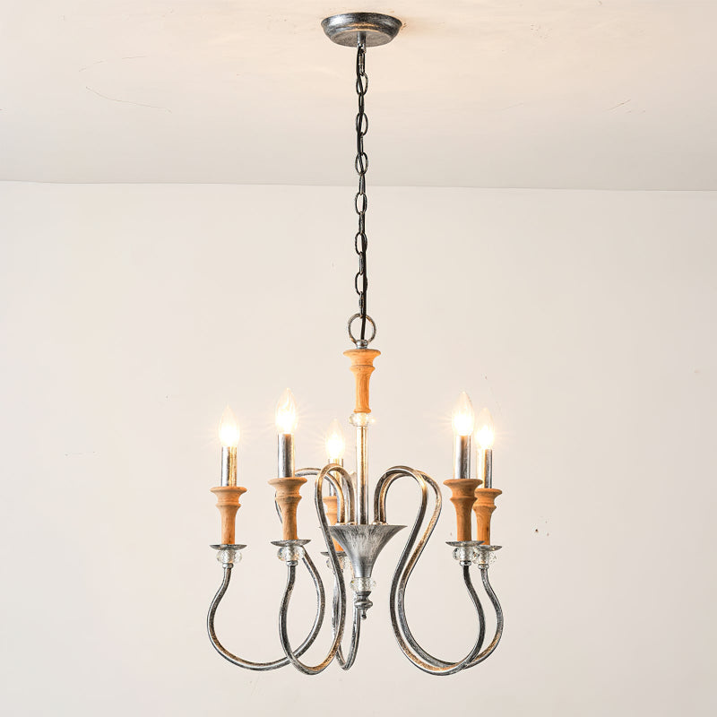 The Freddi Pendant Light is a charming 5-light chandelier that beautifully blends rustic warmth with refined. Features five gracefully curved arms in a classic French Country or Farmhouse style. The elegant curves and wood detailing create a timeless, inviting look.