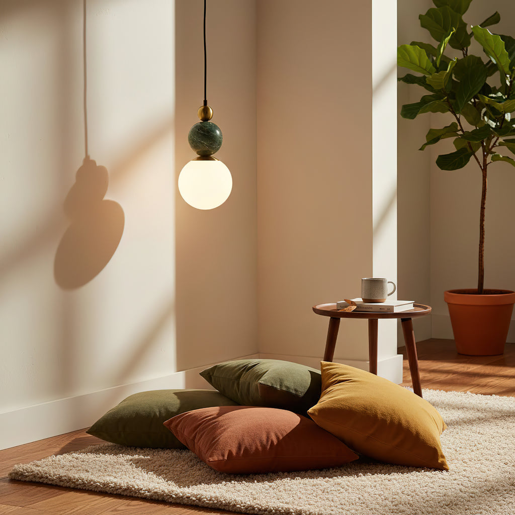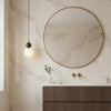 The Celestia Pendant Light embodies celestial harmony through its refined material composition. Marble accents ground the design with natural elegance, while the interplay of materials—cool glass, warm brass, and organic marble—produces a luminous effect that feels both grounded and transcendent. This pendant delivers sophisticated ambient lighting while serving as a sculptural statement piece that captures the profound beauty of cosmic order.
