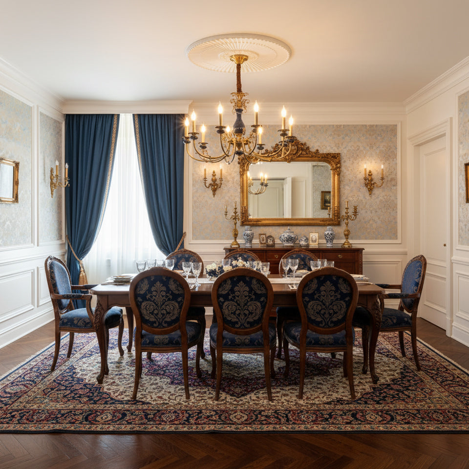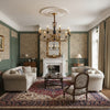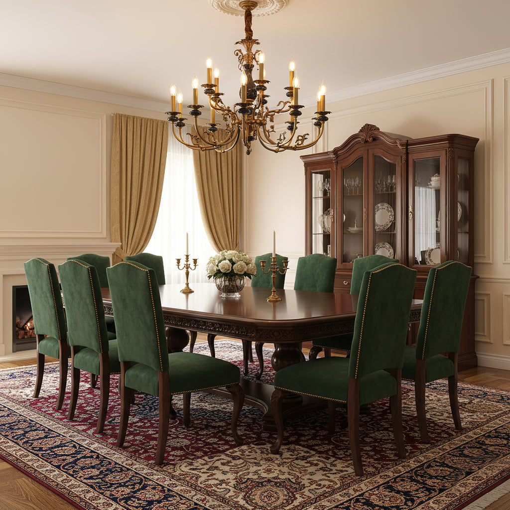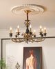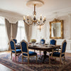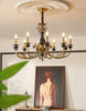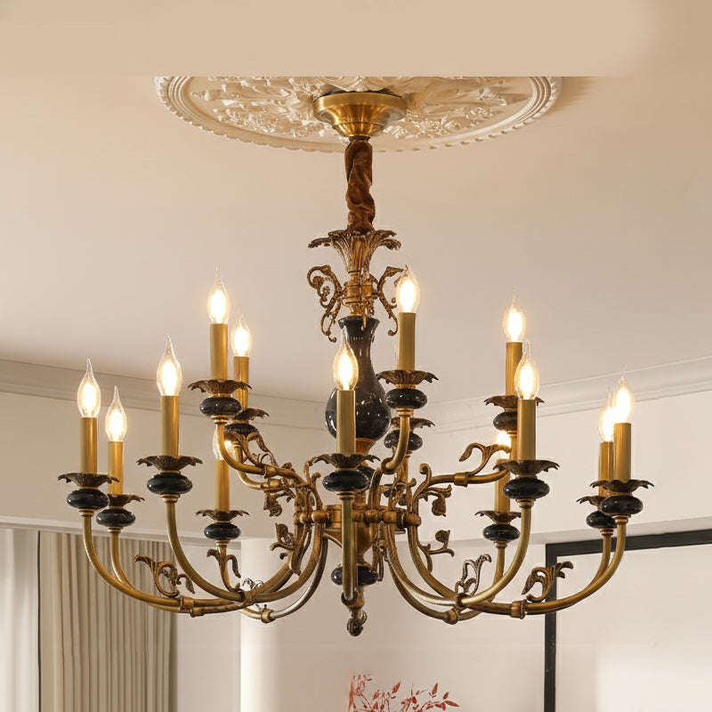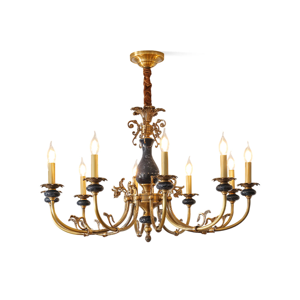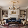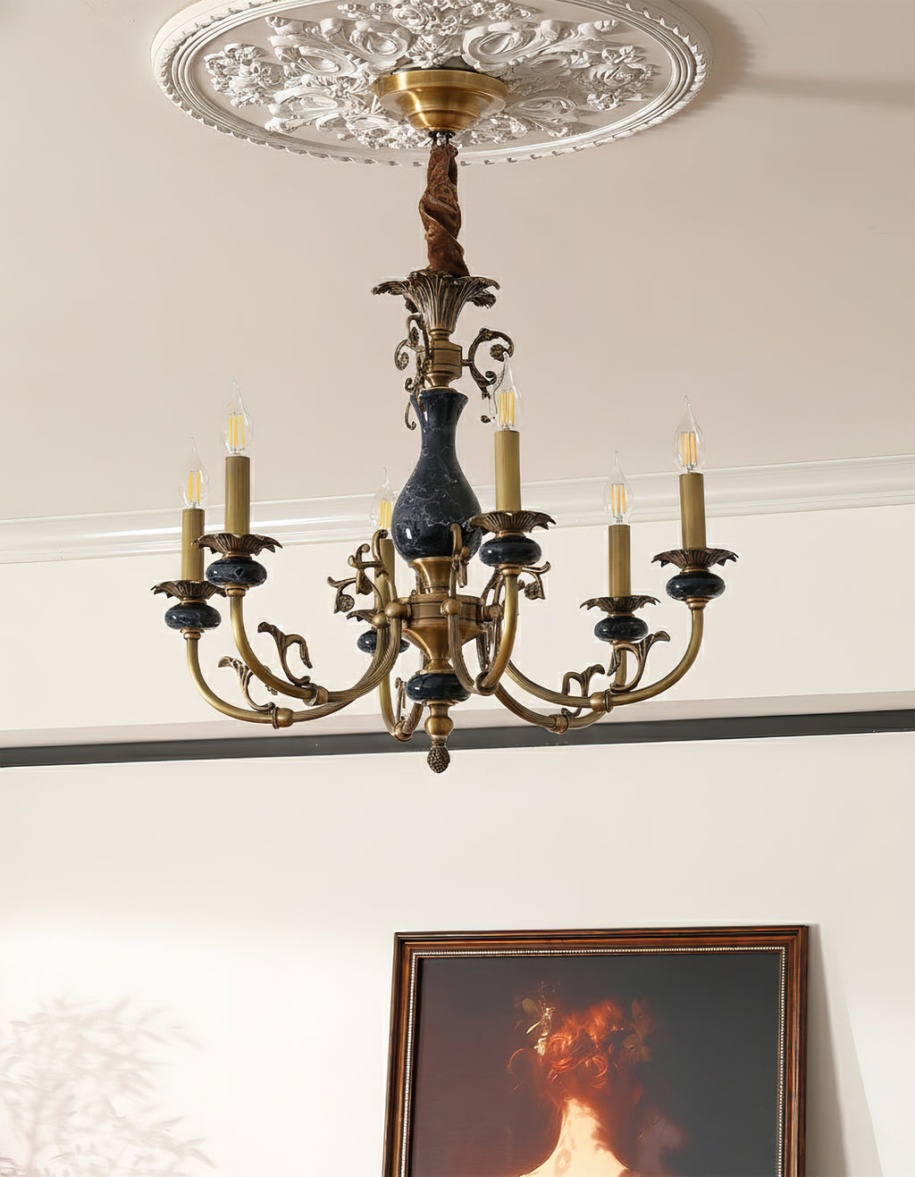 The Ember Chandelier combines a golden brass frame with bold, dark ceramic accents for a look that commands attention. From the ornate scrollwork to the velvet-touch chain cover, every detail is designed to impress.