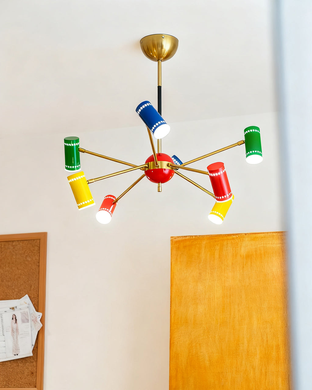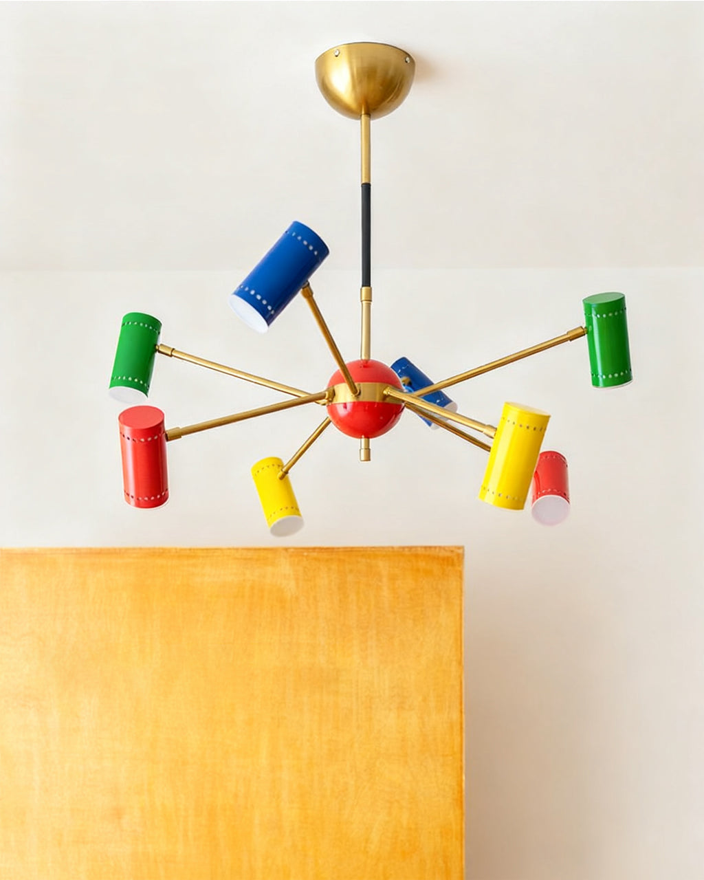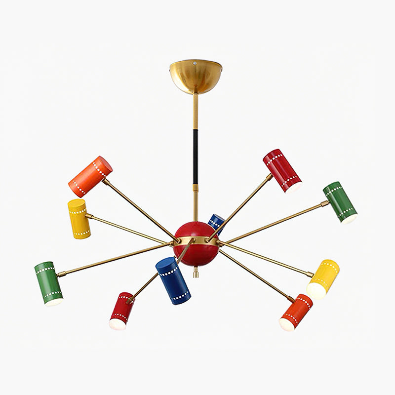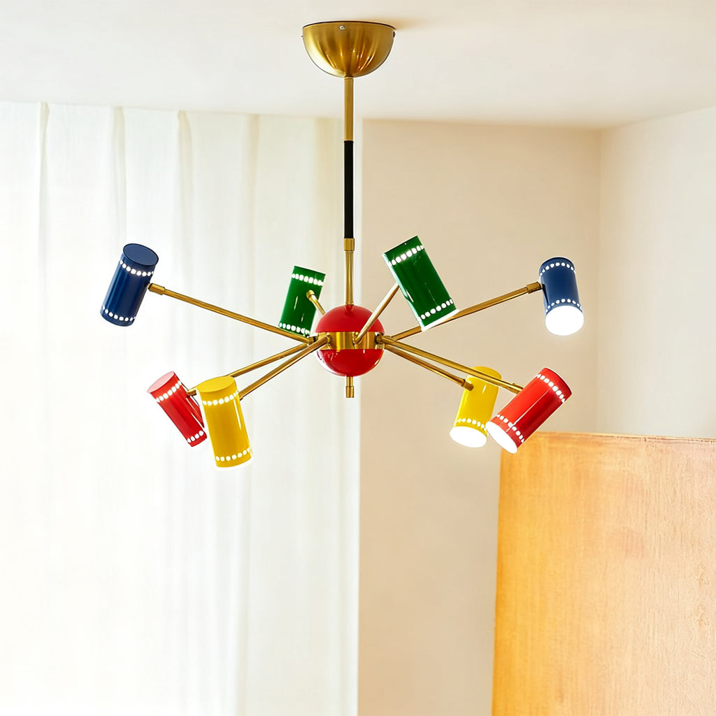 The Prism Chandelier has this fantastic mid-century modern vibe with its classic satellite shape. Each arm shoots out to a vibrant, colorful shade, creating an explosion of happy energy.