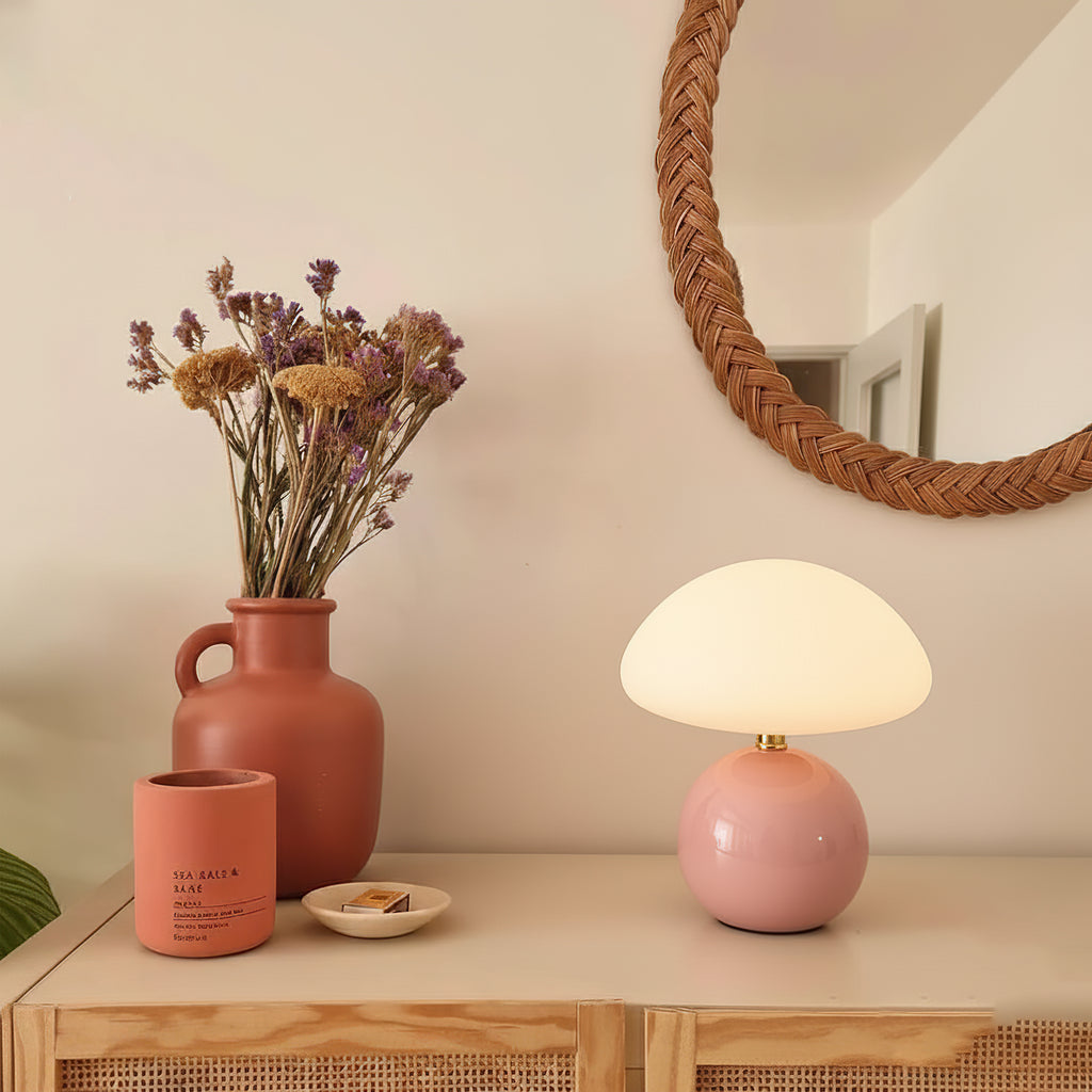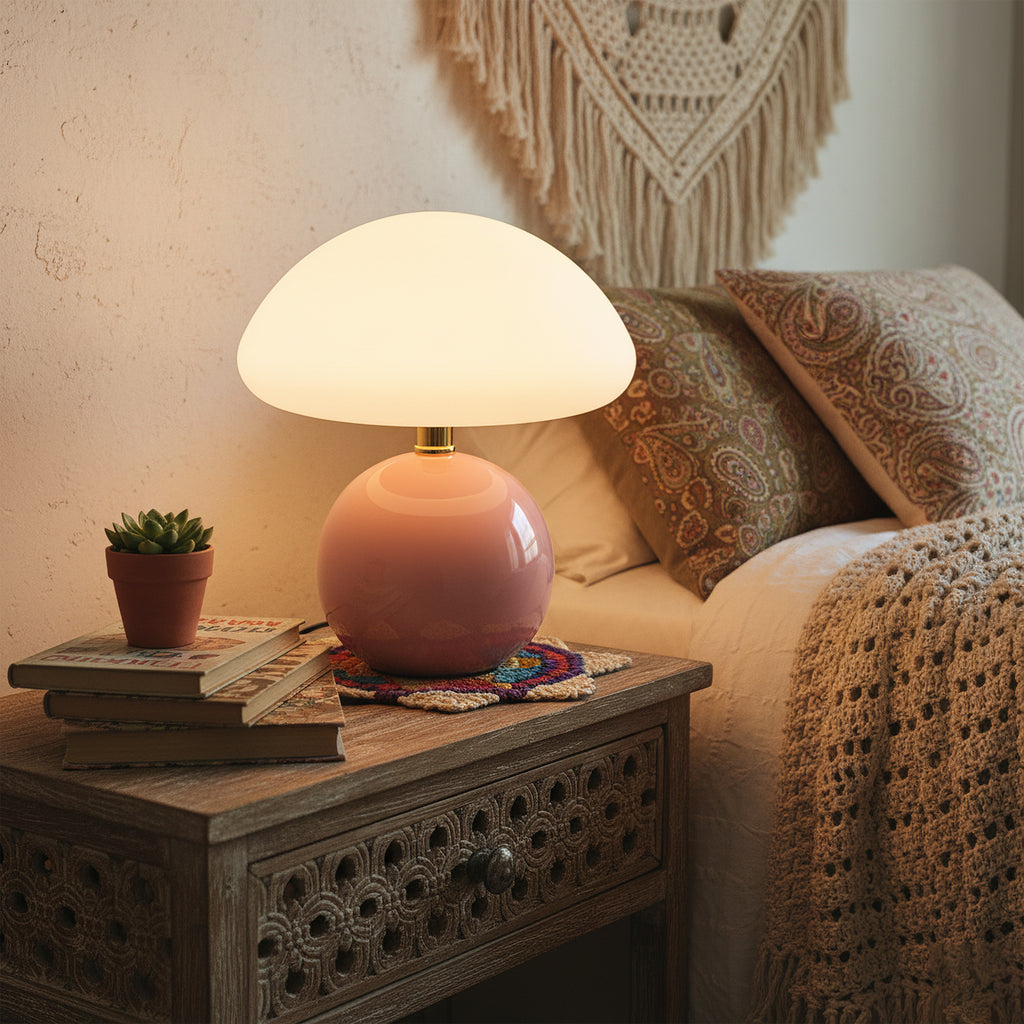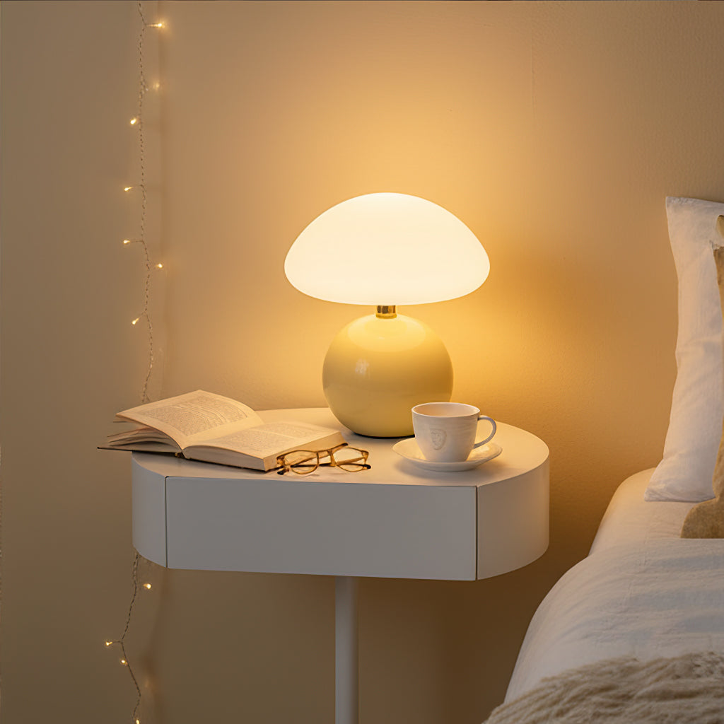 Add a touch of sophistication and elegance to your space with the Dawnwake Mushroom Table Lamp. Made of ceramic with a smooth shade, it has clean lines and a modern shape. Whether you're styling a modern bedroom or creating a serene reading nook, this lamp adds both function and refined charm.