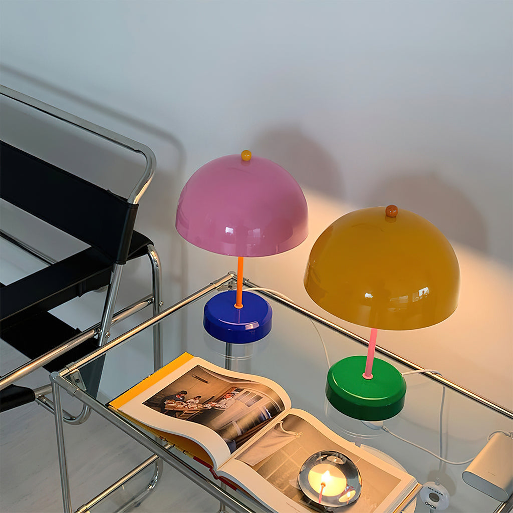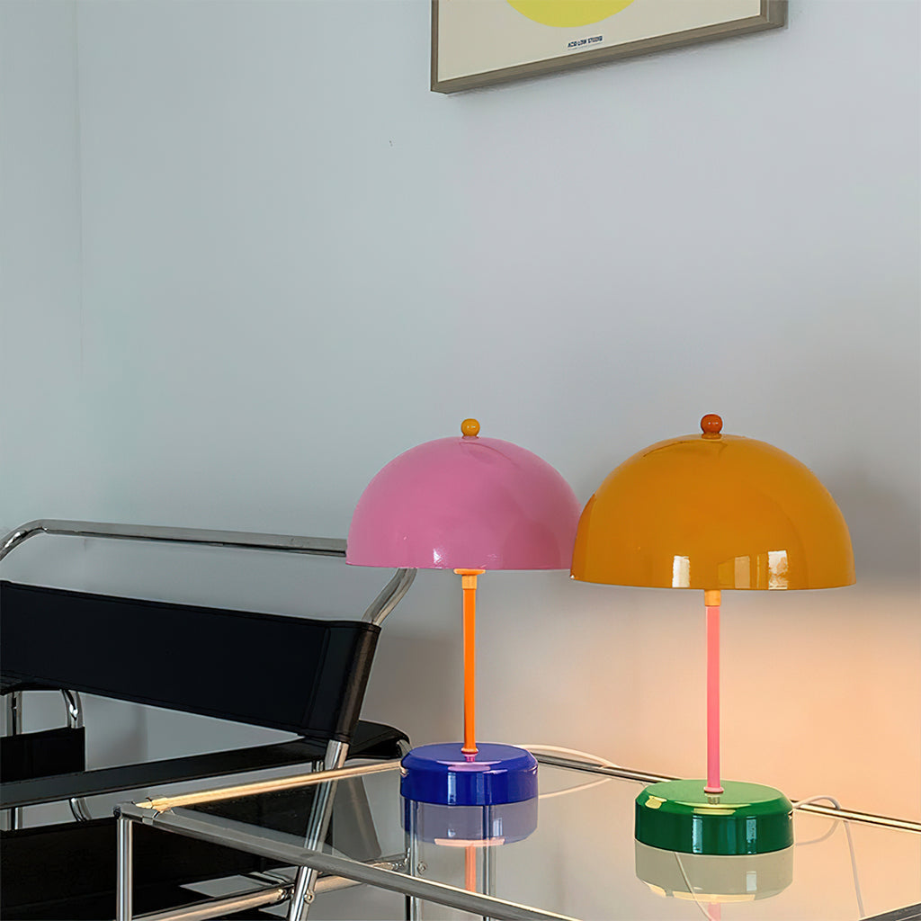 It has a really strong, architectural feel, mixing a perfect cone base with a classic dome shade. The color blocking is just fantastic and has a really cool, artistic vibe that reminds you of the Memphis design movement.