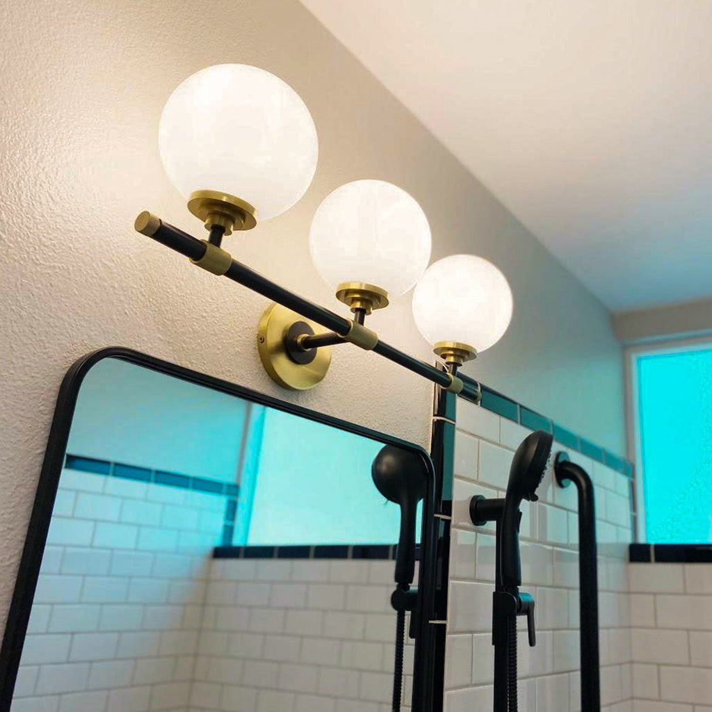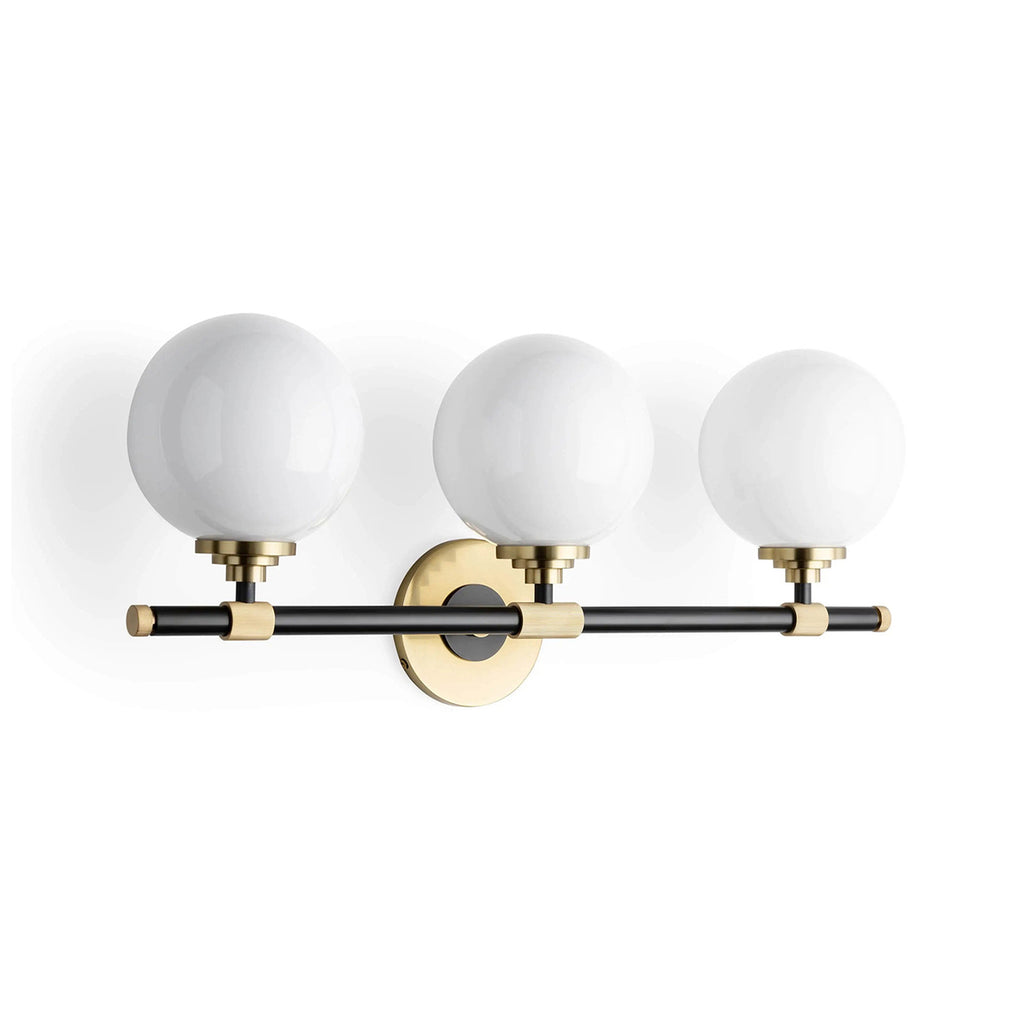 The Bowery Wall Lamp blends transitional elements with a distinct vintage style for a striking, high-end aesthetic. The fixture's brass finish complements the simple style of its three creamy white globes. It'll blend seamlessly into any space, from the bathroom to a vanity.