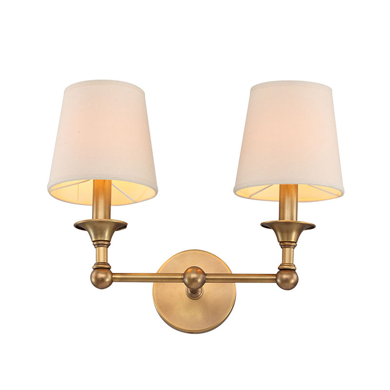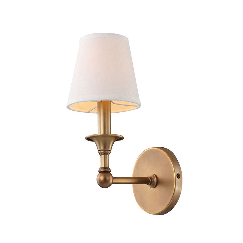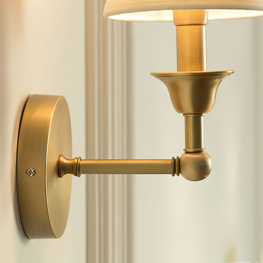 The main body of the Gianna Wall Lamp is made of brass, presenting an elegant appearance, luxurious texture and durability. The lampshade is made of fabric, emitting soft light and creating a warm atmosphere. The overall shape is simple yet exquisite, both decorative and practical, suitable for adding style to spaces such as bedrooms and corridors.