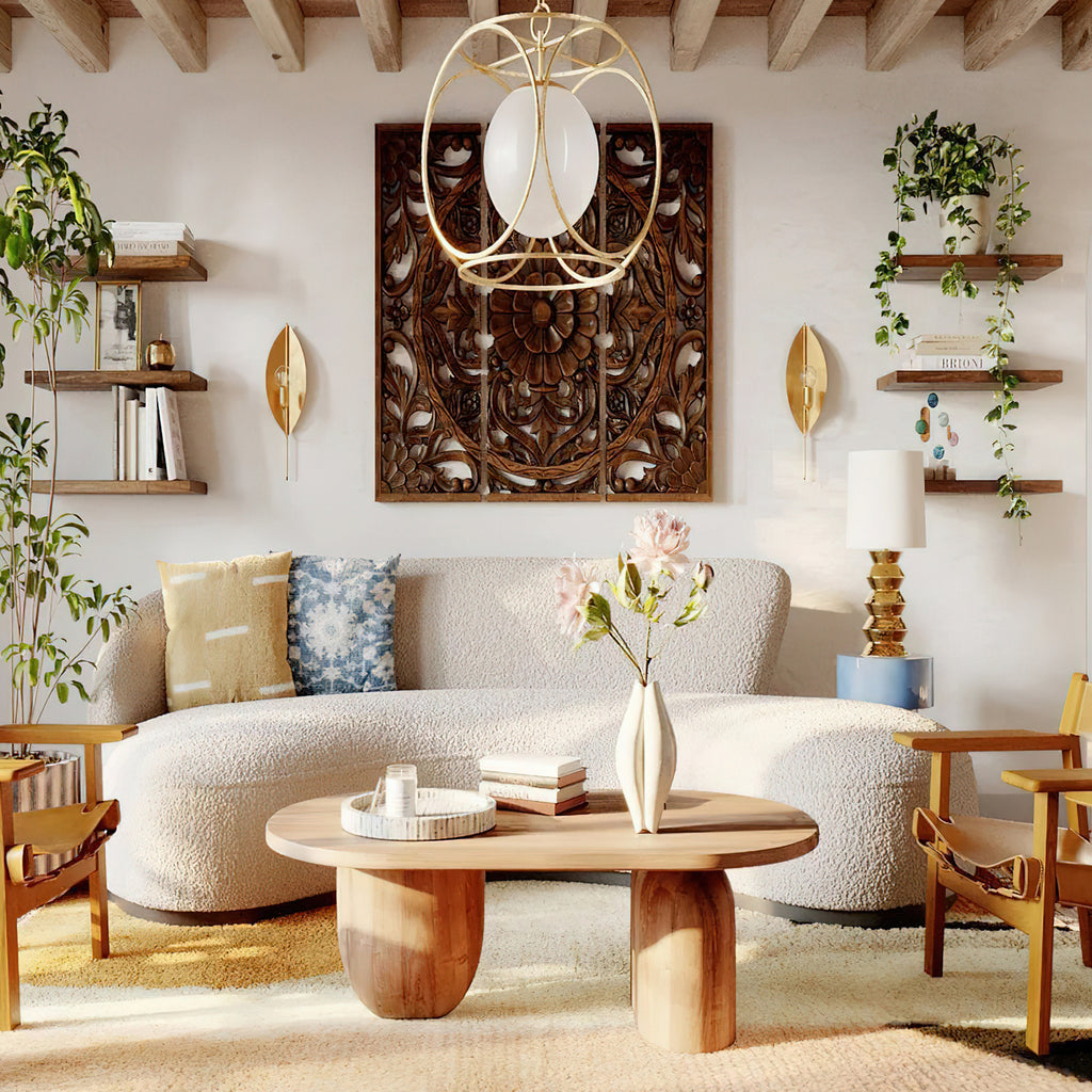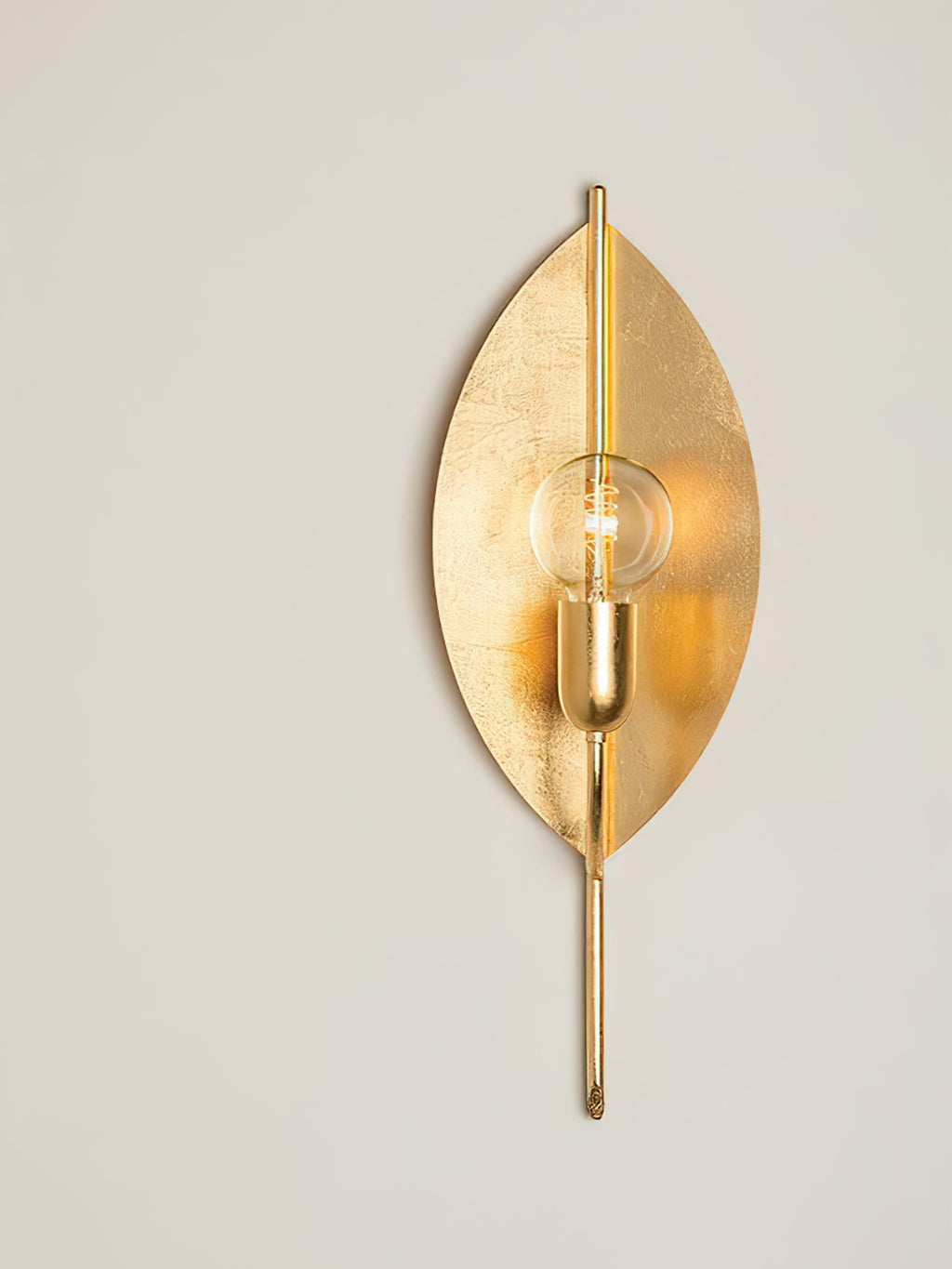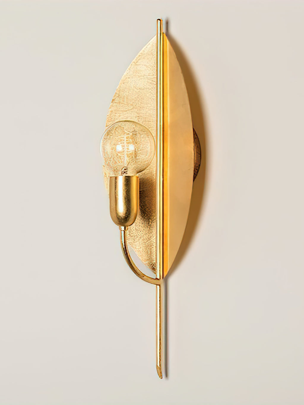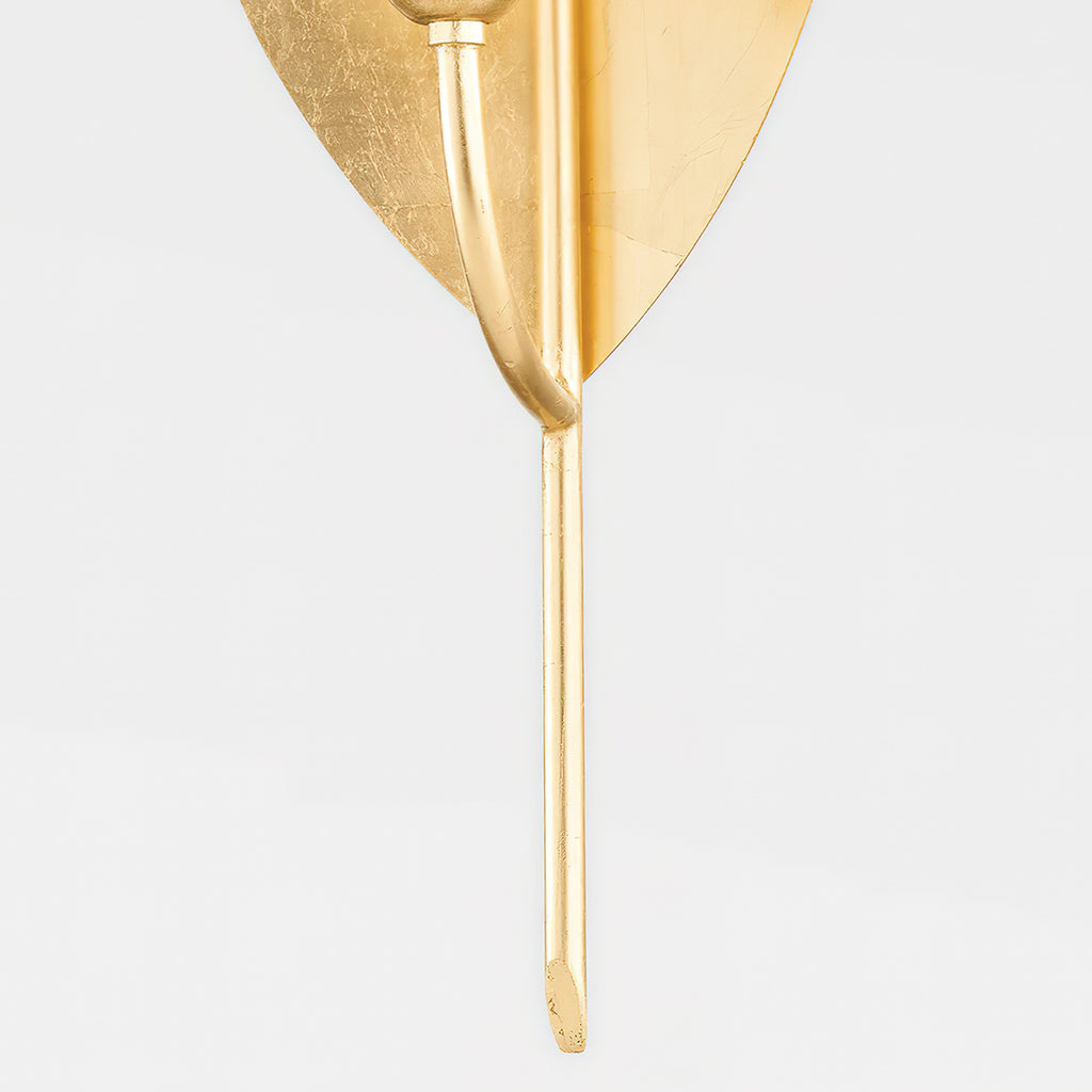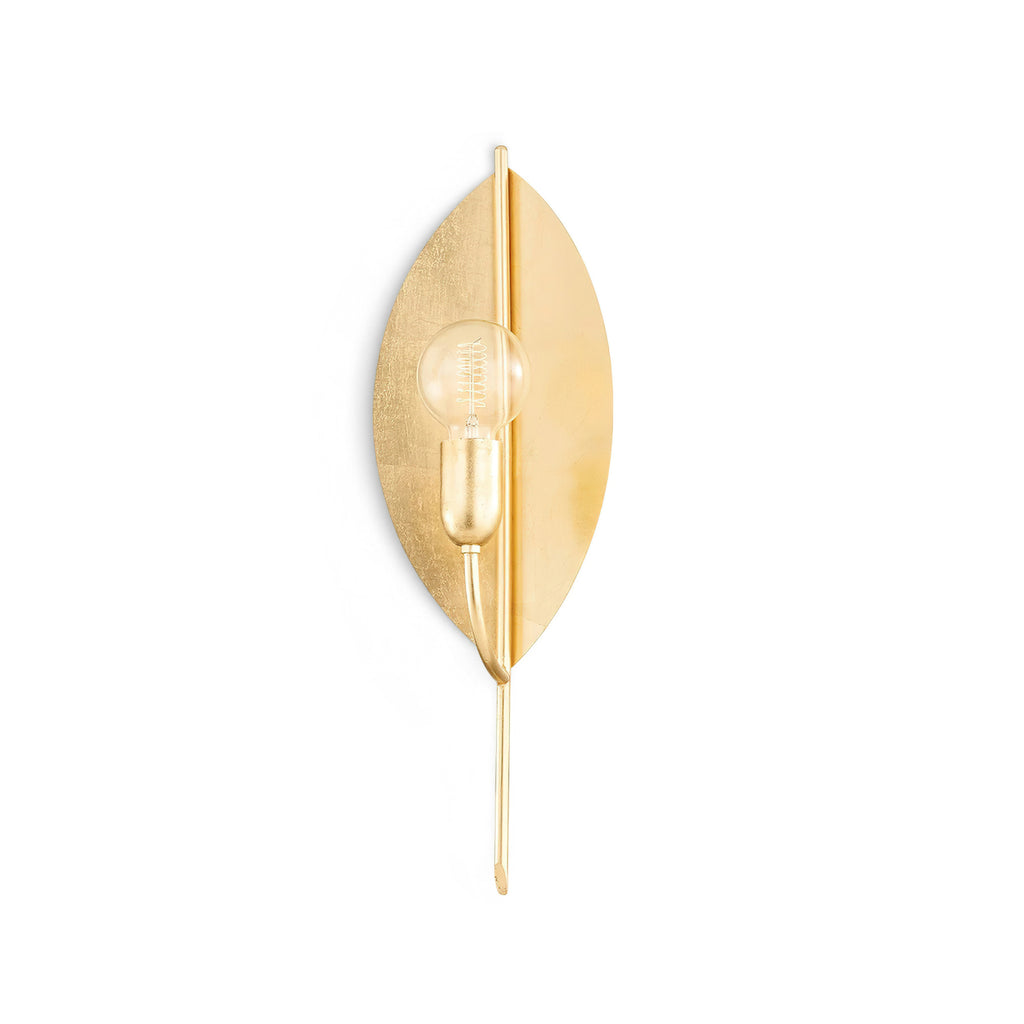 A modern botanical design, the Lorelei Wall Lamp strips the leaf, a symbol of peace, life and growth, down to its most basic form. Light reflects beautifully off the panels of vintage gold leaf. Meticulously monochromatic, right down to the bulb socket, it will add natural beauty and grace to any space.