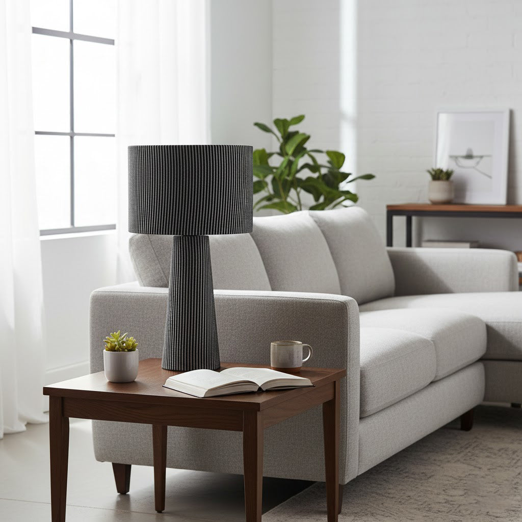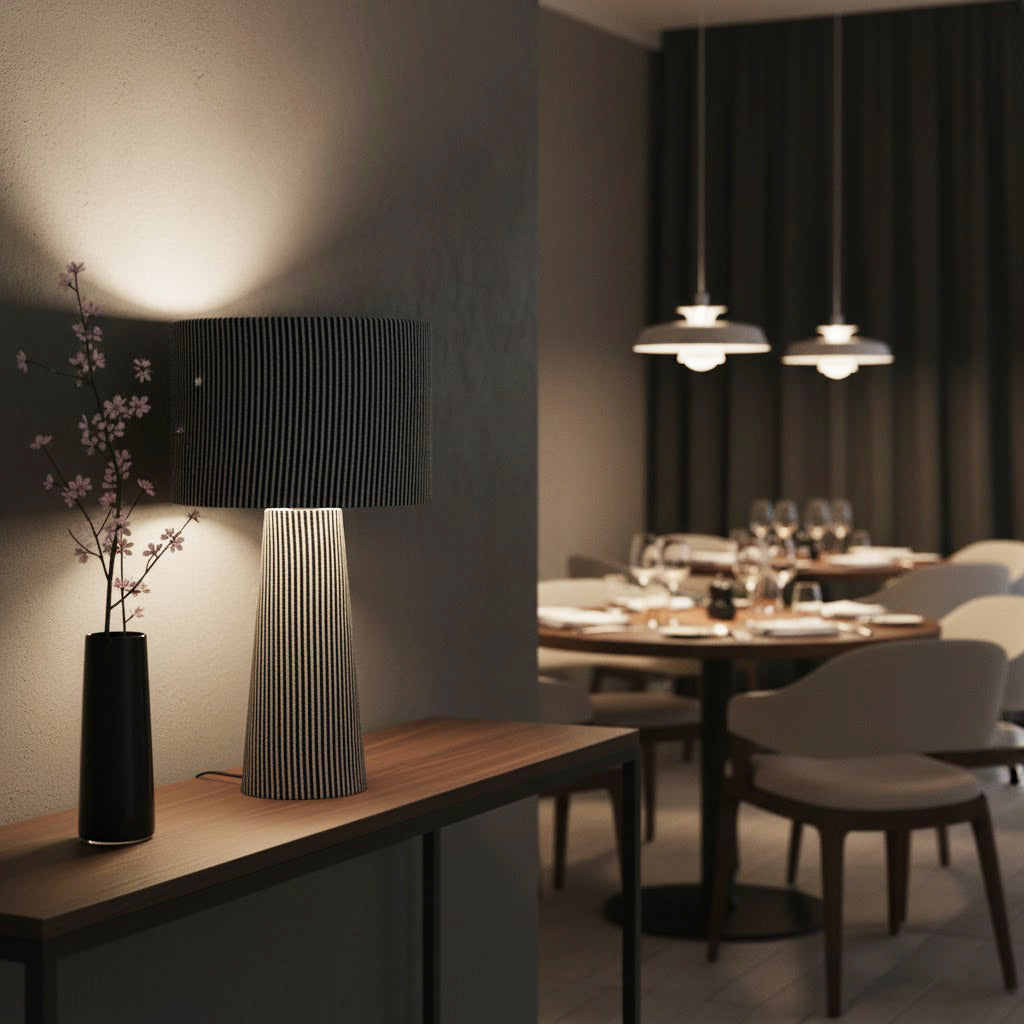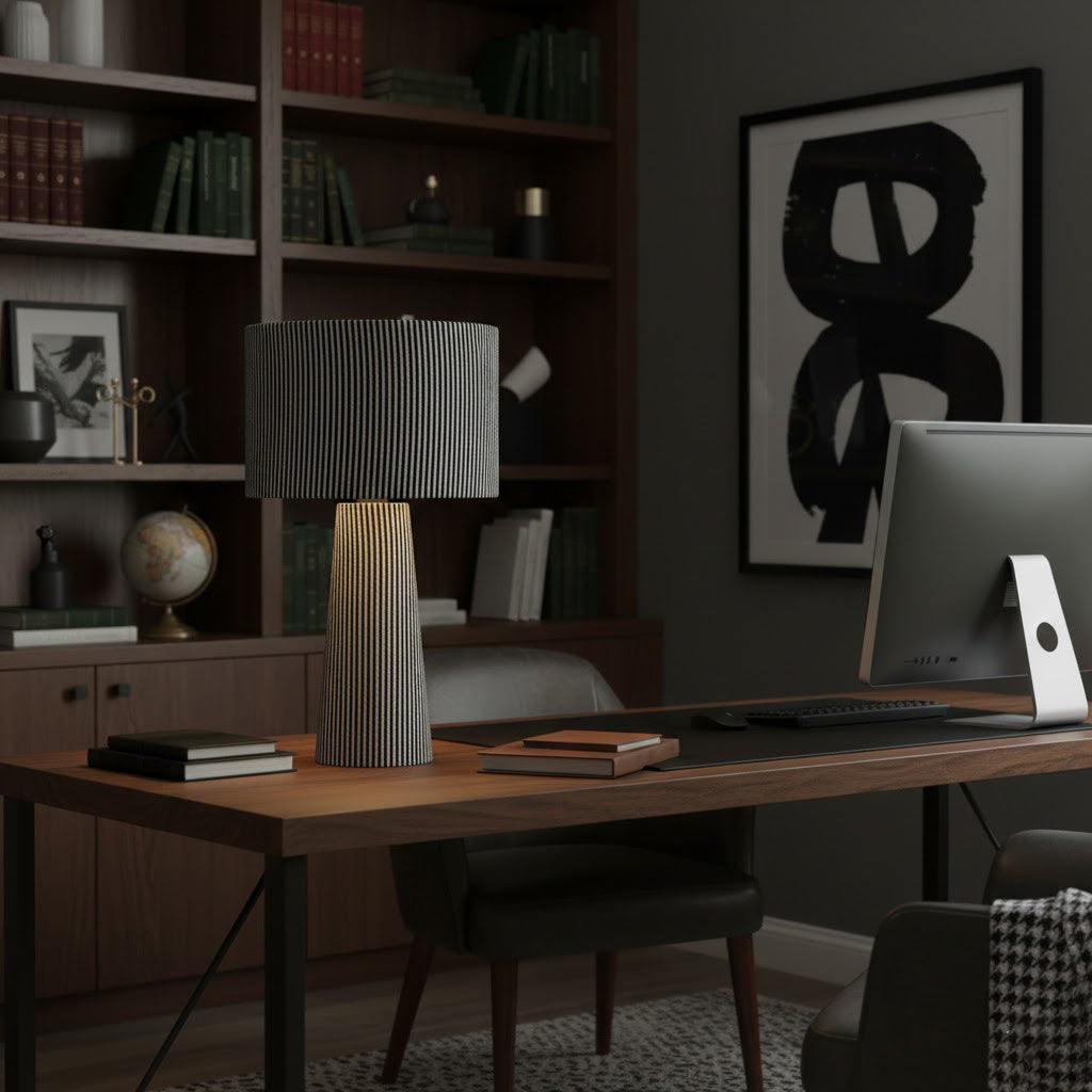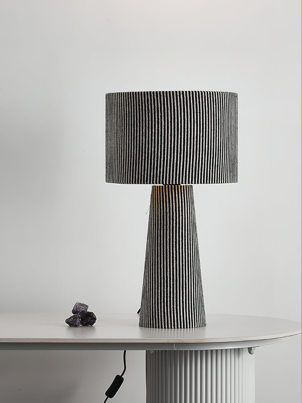 Elevate your space with this Ferrer Table Lamp, which perfectly blends modern design with practical lighting. The fabric lampshade diffuses light evenly and softly, creating a warm and inviting atmosphere while minimizing glare. The striped pattern adds a touch of visual interest without being overpowering, making it an ideal accent for modern, transitional, or eclectic interior decor. It's the perfect choice for any room seeking both style and functionality.
