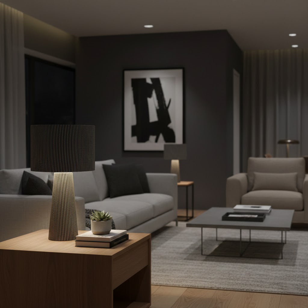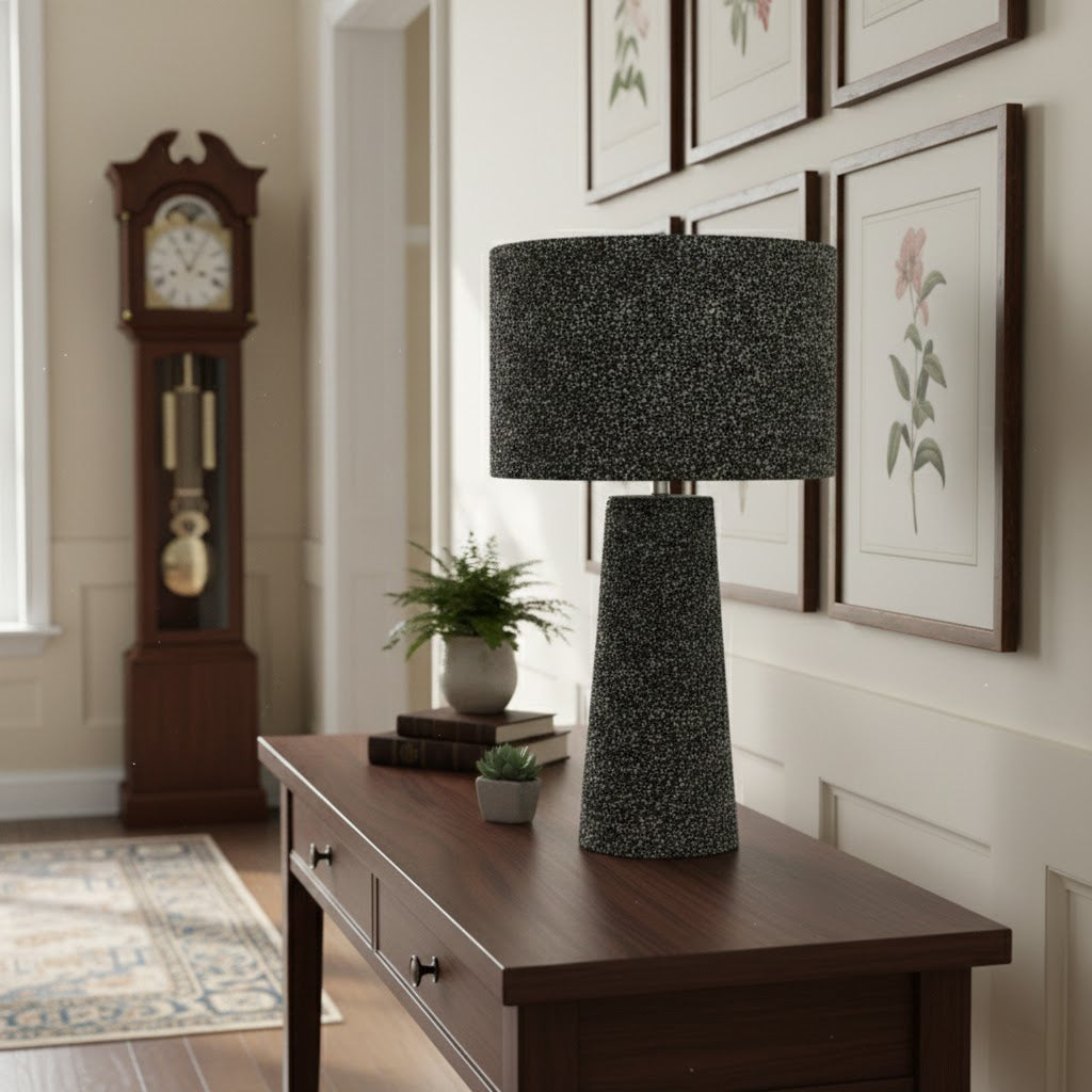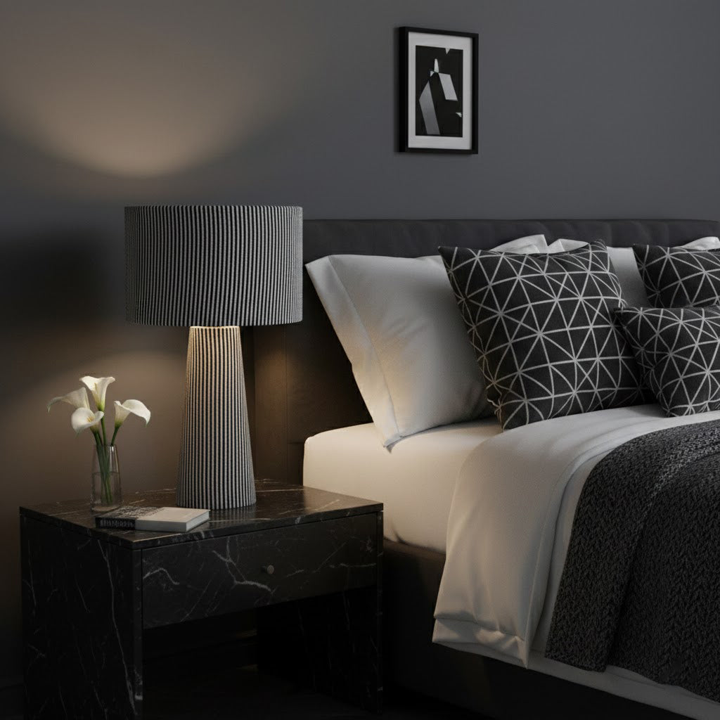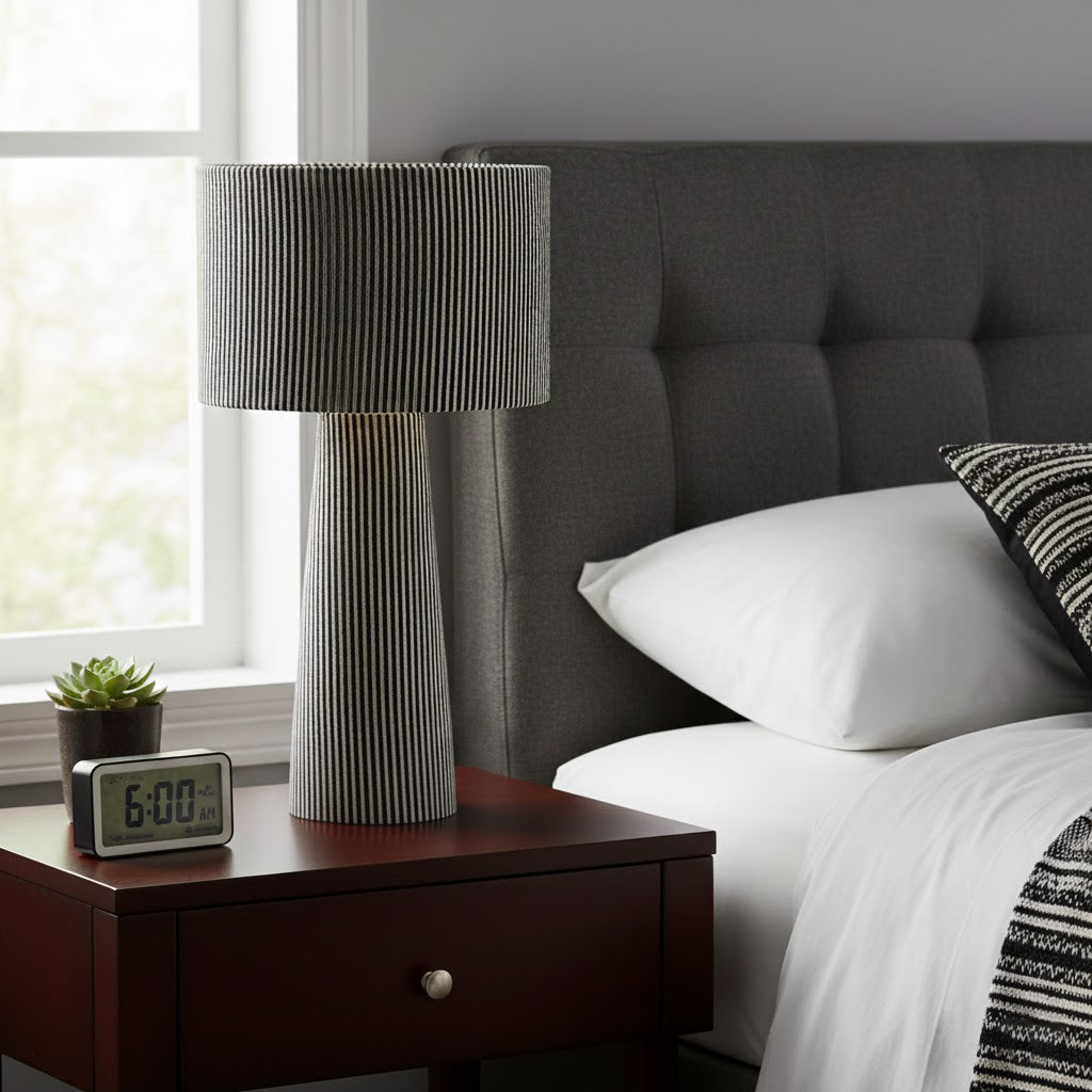 Elevate your space with this Ferrer Table Lamp, which perfectly blends modern design with practical lighting. The fabric lampshade diffuses light evenly and softly, creating a warm and inviting atmosphere while minimizing glare. The striped pattern adds a touch of visual interest without being overpowering, making it an ideal accent for modern, transitional, or eclectic interior decor. It's the perfect choice for any room seeking both style and functionality.