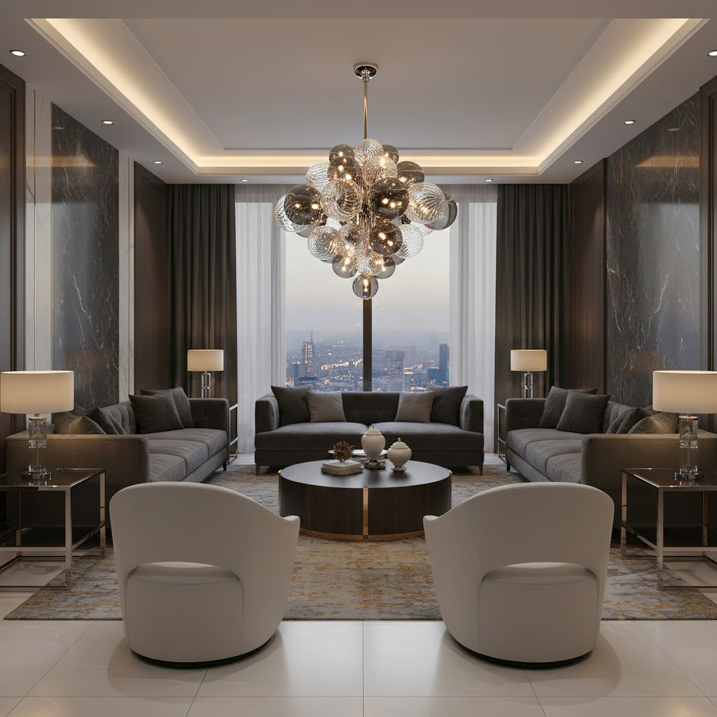 The Pallocino Chandelier combines timeless elegance with contemporary design. Crafted from premium glass, iron this fixture delivers sophisticated illumination for dining rooms, entryways, or living spaces. The glass elements diffuse light beautifully while the iron framework provides structural integrity and a refined aesthetic. Its versatile style complements both modern and traditional interiors, making it an ideal choice for homeowners seeking quality craftsmanship and enduring appeal.