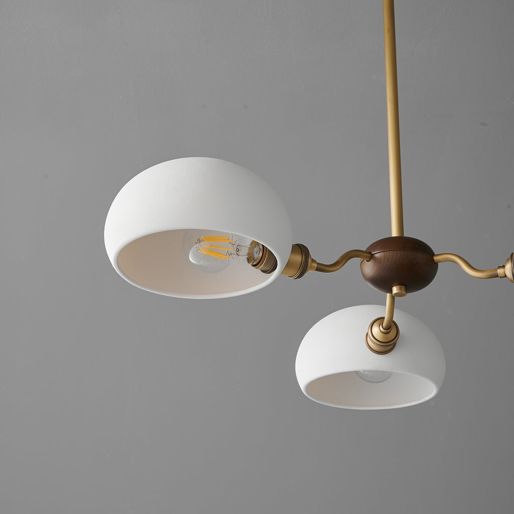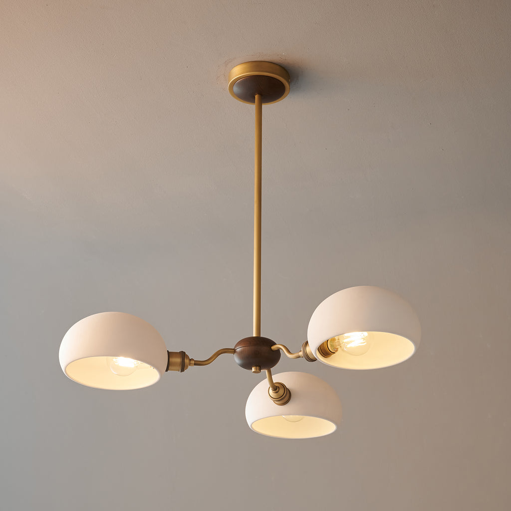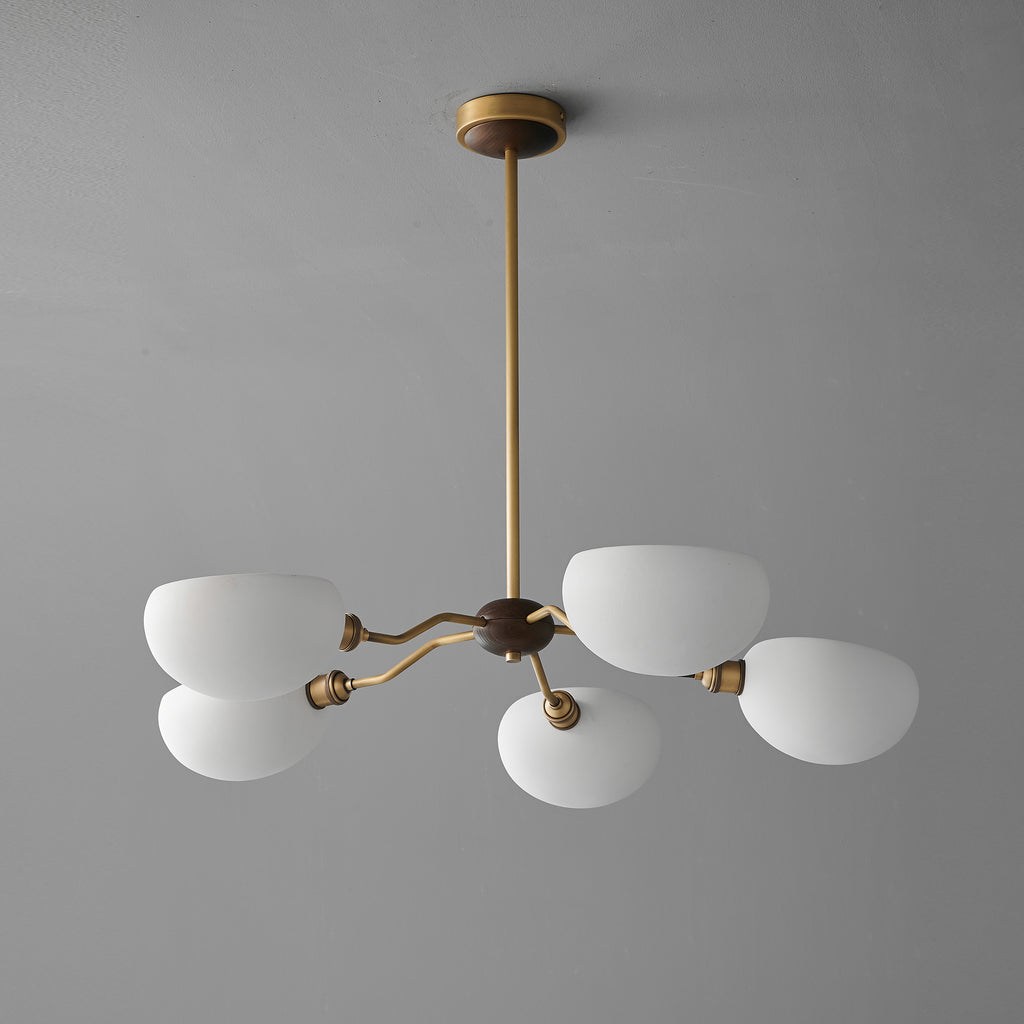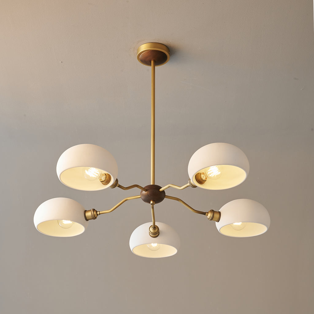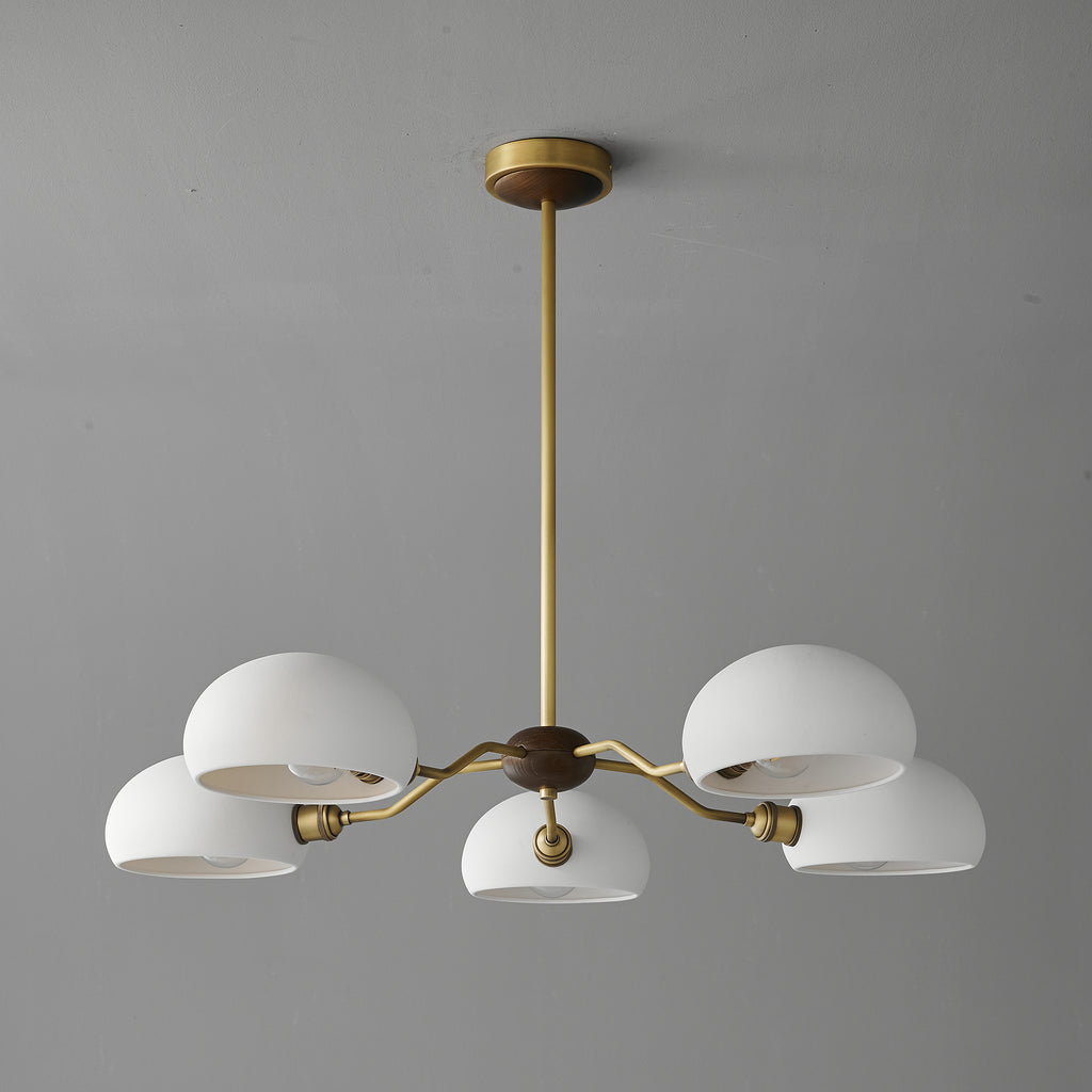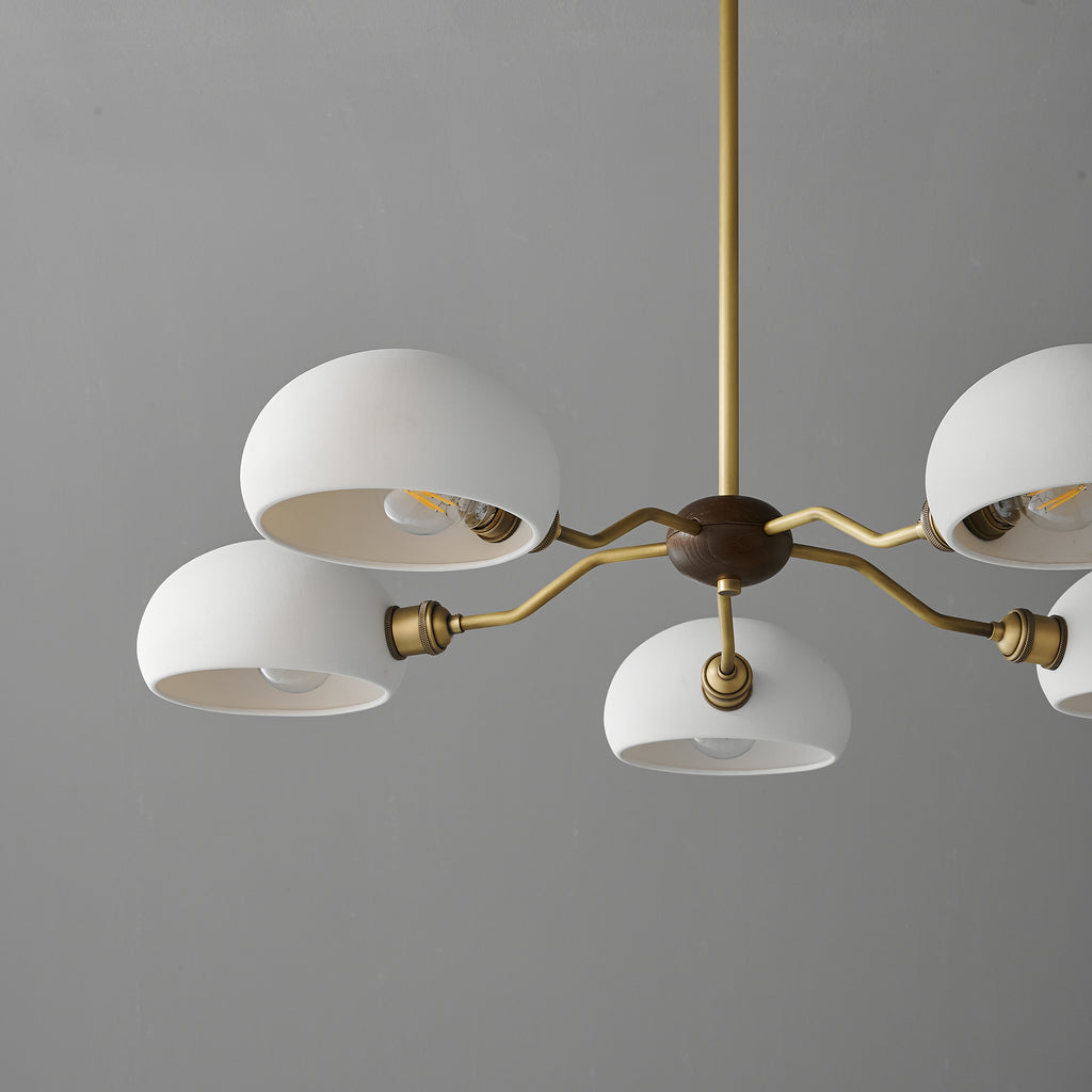 The Miralis Chandelier combines three refined materials to create a statement lighting fixture. Brass elements provide warm metallic accents and durability, while ash wood brings natural grain and organic elegance to the design. Ceramic components add textural contrast and a sophisticated finish. This thoughtfully composed chandelier works as both functional illumination and a curated design piece, suitable for contemporary or transitional interiors seeking understated luxury.