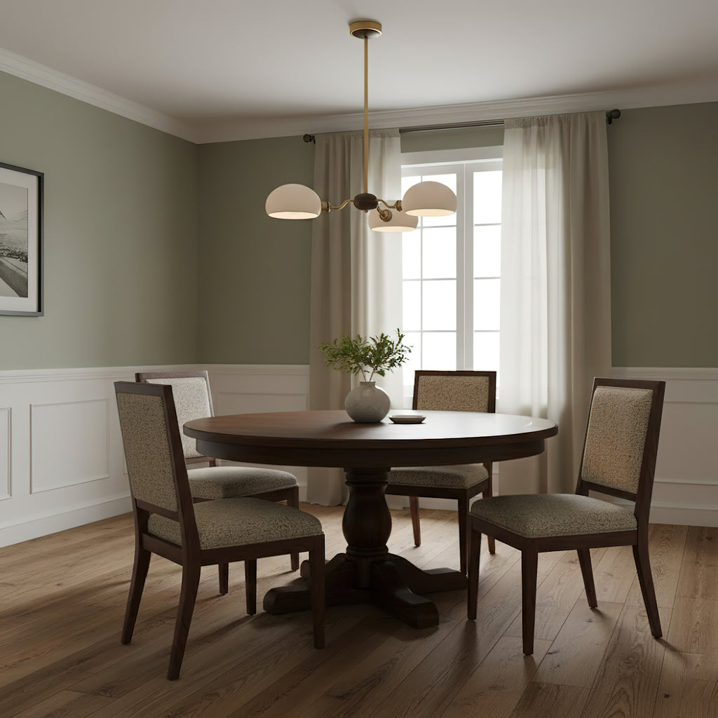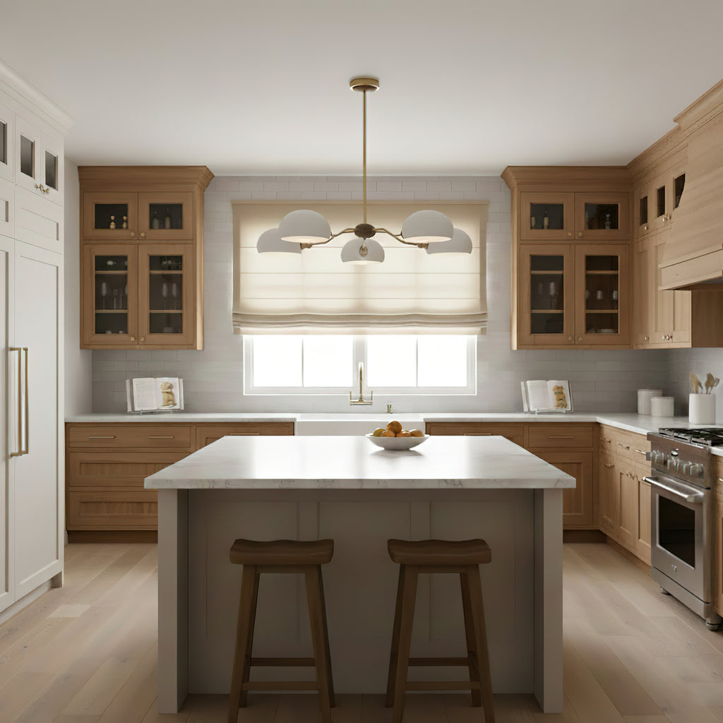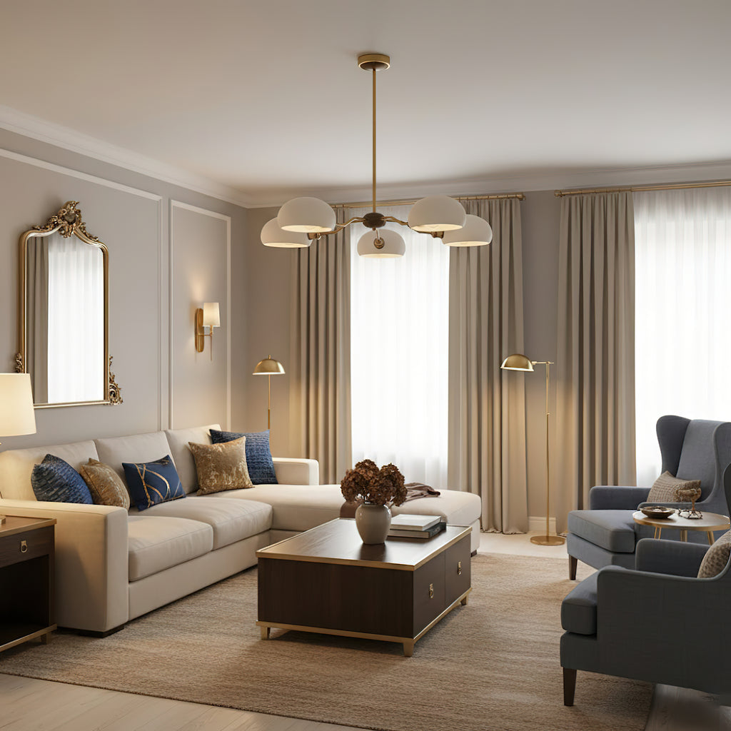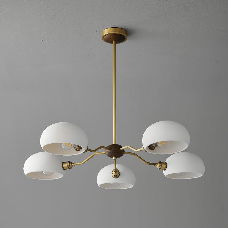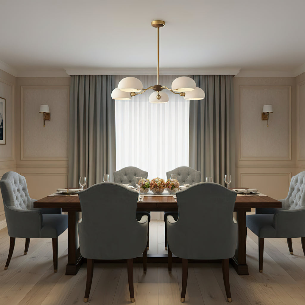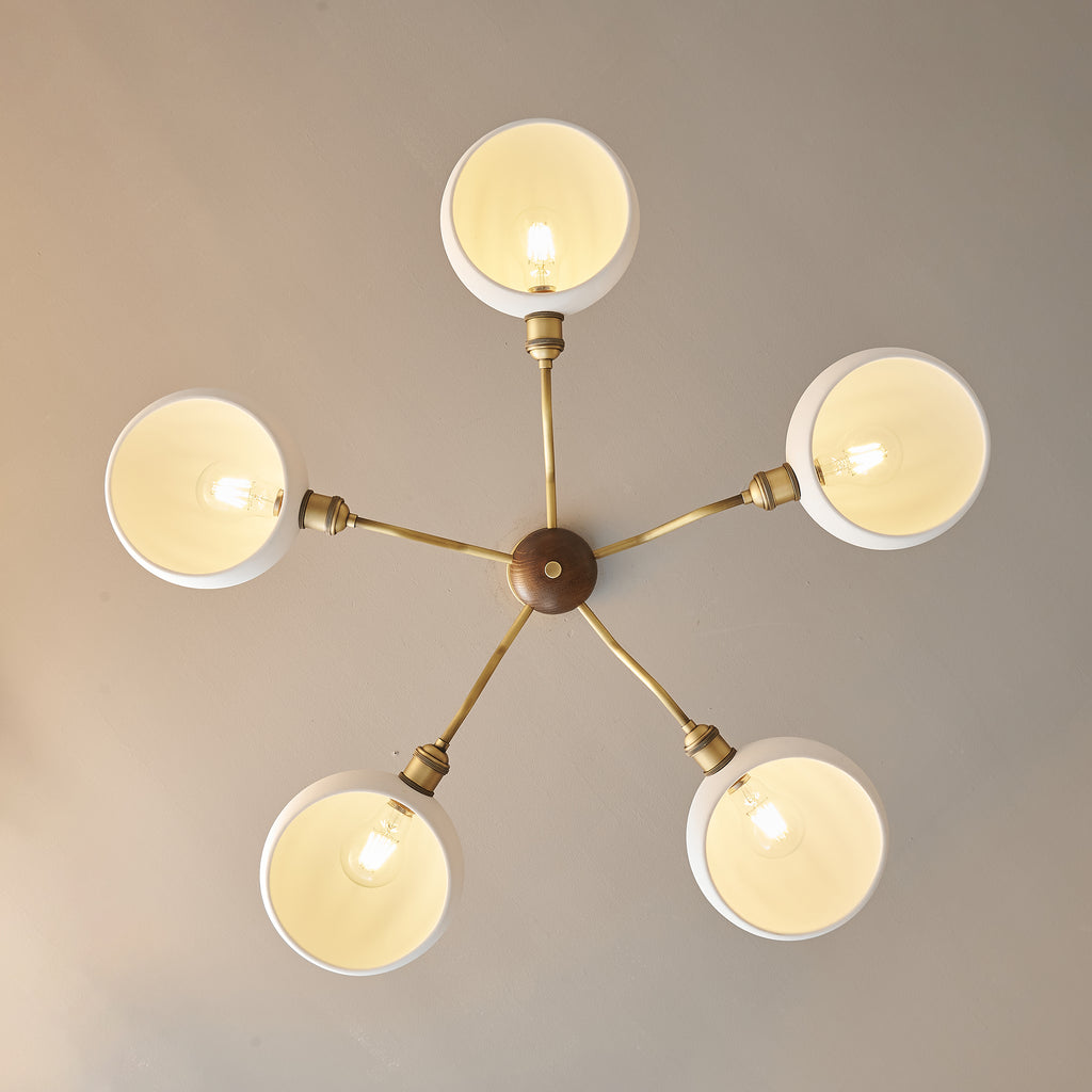The Miralis Chandelier combines three refined materials to create a statement lighting fixture. Brass elements provide warm metallic accents and durability, while ash wood brings natural grain and organic elegance to the design. Ceramic components add textural contrast and a sophisticated finish. This thoughtfully composed chandelier works as both functional illumination and a curated design piece, suitable for contemporary or transitional interiors seeking understated luxury.