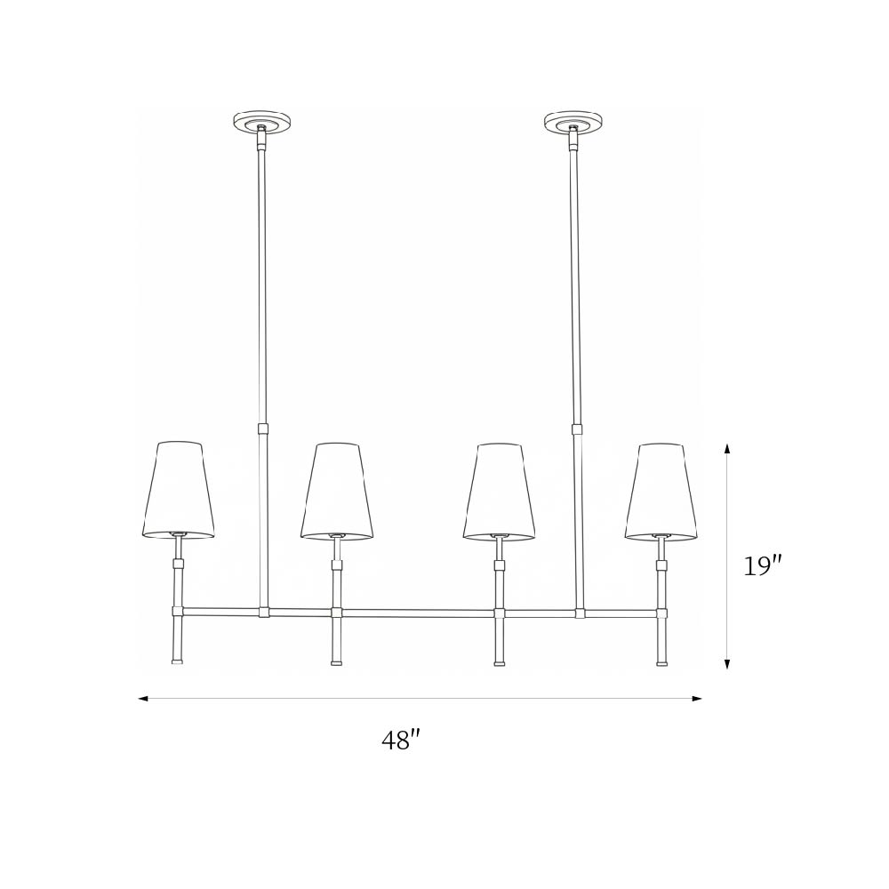 • 4-Lights Size: L 48" x W 2.5" x H 19" / L 115.5cm x W 6cm x H 48cm
