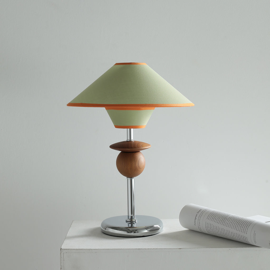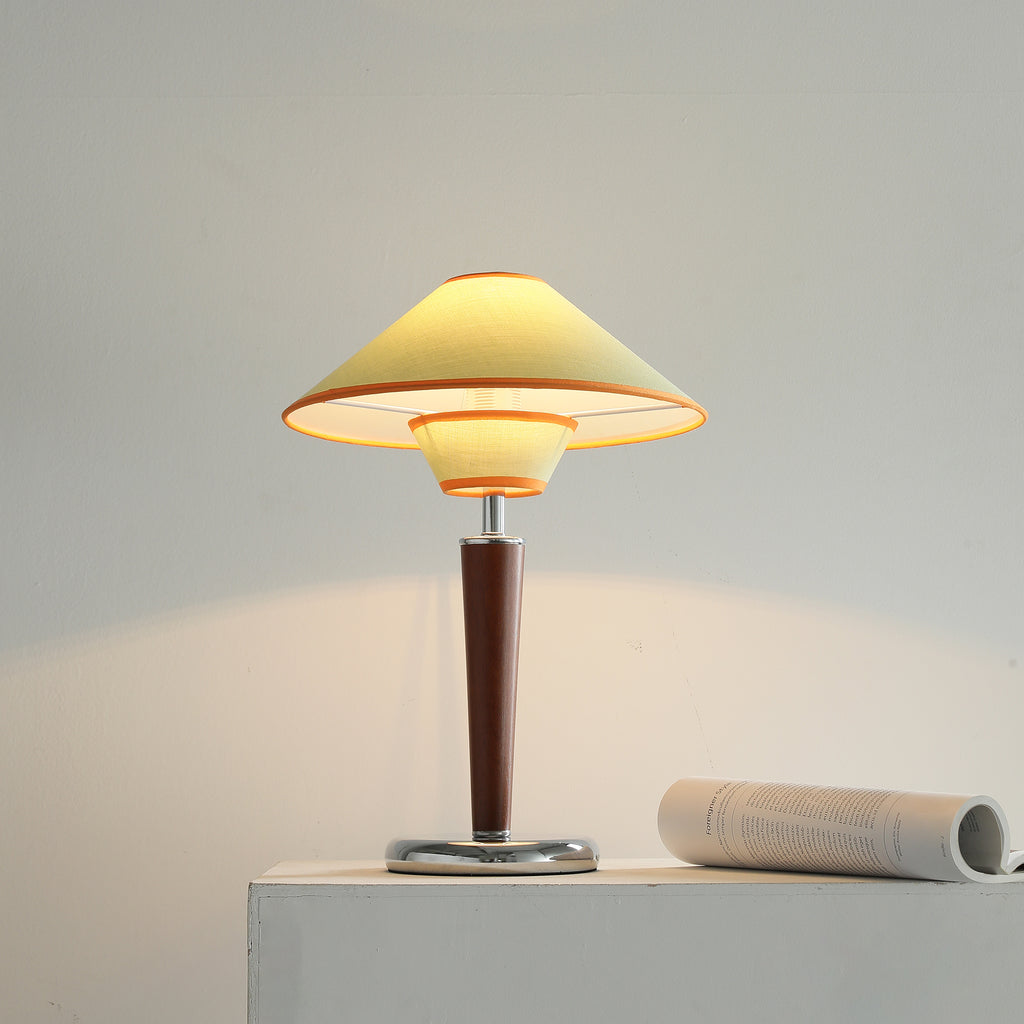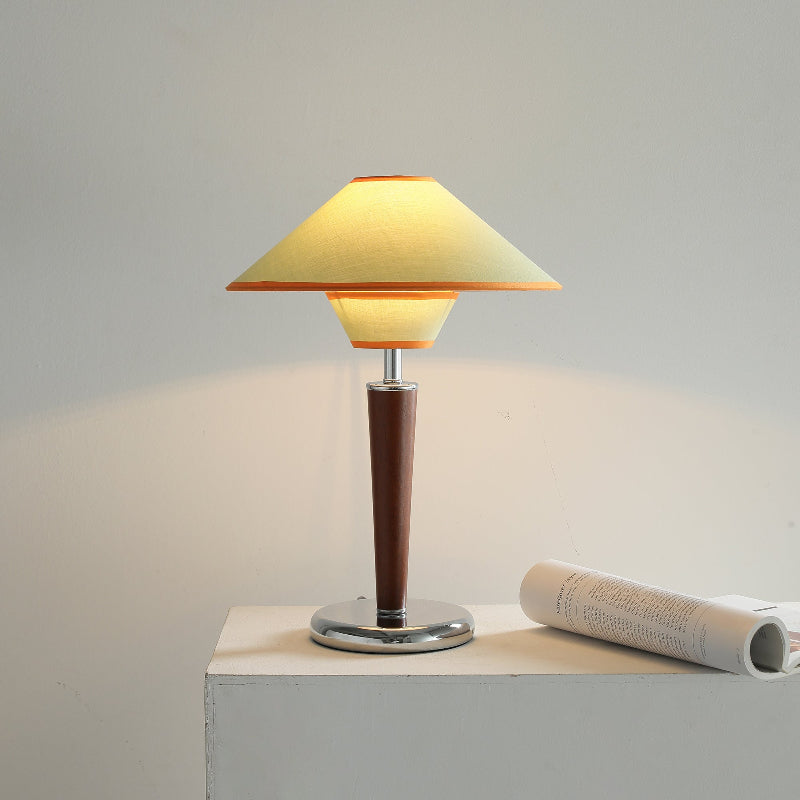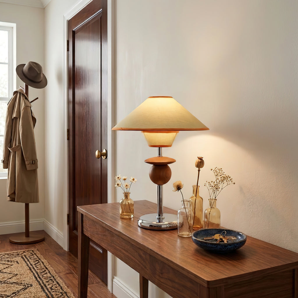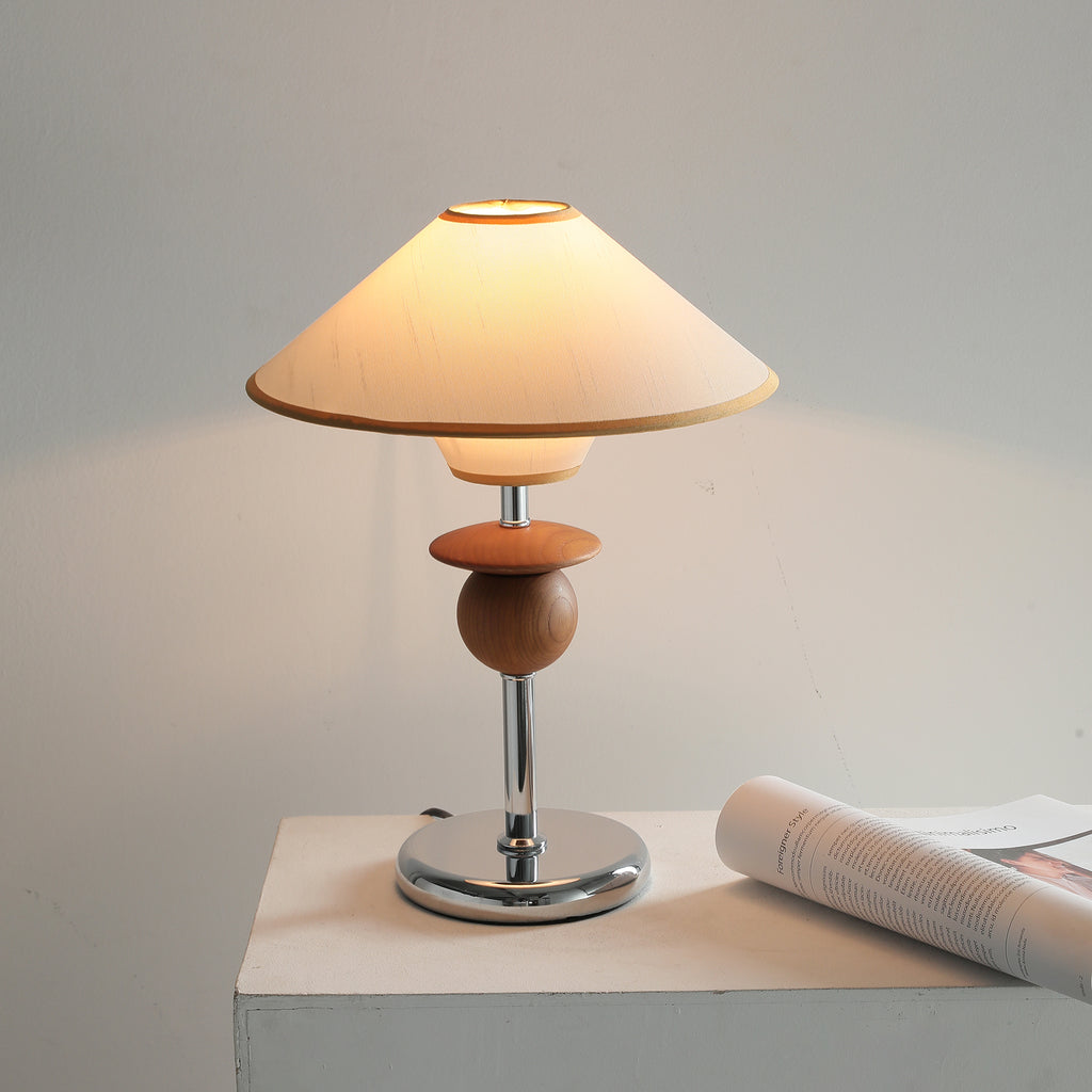 With its elegant and distinctive Mid-Century Modern aesthetic, the Bastian Table Lamp masterfully blends the warmth of fabric with the rustic charm of wood. Its signature double-tiered conical fabric shade not only casts a soft, inviting glow but is also accented by exquisite trim, exuding a sense of refined taste. The lamp's highly sculptural solid wood body—whether featuring fluid tapered lines or playful geometric forms comprising spheres and discs—showcases the beauty of expert craftsmanship. Anchored by a sturdy, modern polished plated base, the Bastian Table Lamp serves as more than just a functional light source; it is a decorative art piece designed to elevate the style of any bedroom or living room while creating a warm, welcoming atmosphere.