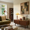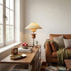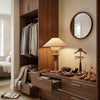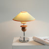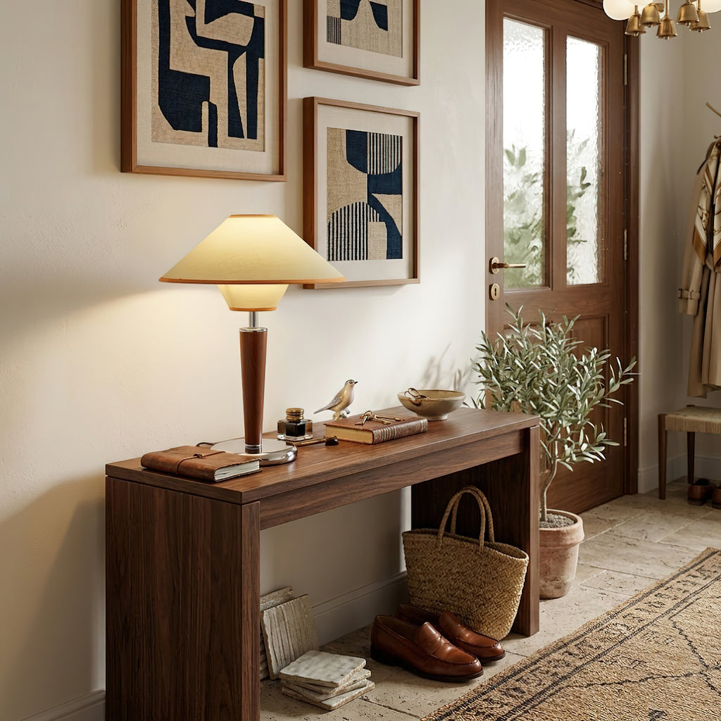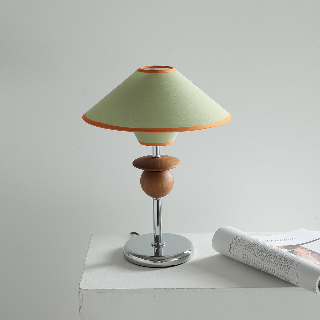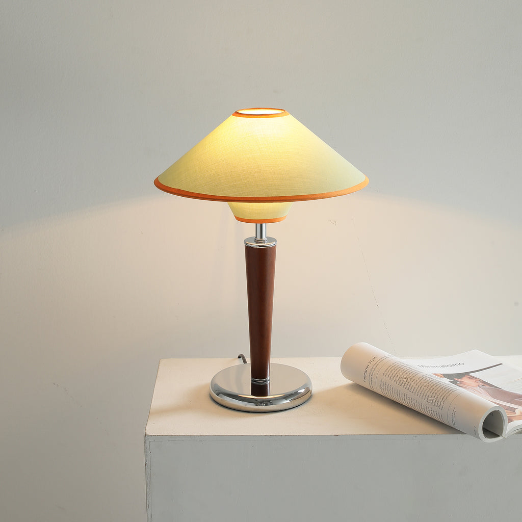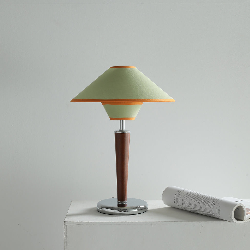 With its elegant and distinctive Mid-Century Modern aesthetic, the Bastian Table Lamp masterfully blends the warmth of fabric with the rustic charm of wood. Its signature double-tiered conical fabric shade not only casts a soft, inviting glow but is also accented by exquisite trim, exuding a sense of refined taste. The lamp's highly sculptural solid wood body—whether featuring fluid tapered lines or playful geometric forms comprising spheres and discs—showcases the beauty of expert craftsmanship. Anchored by a sturdy, modern polished plated base, the Bastian Table Lamp serves as more than just a functional light source; it is a decorative art piece designed to elevate the style of any bedroom or living room while creating a warm, welcoming atmosphere.