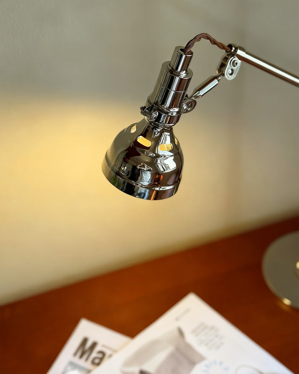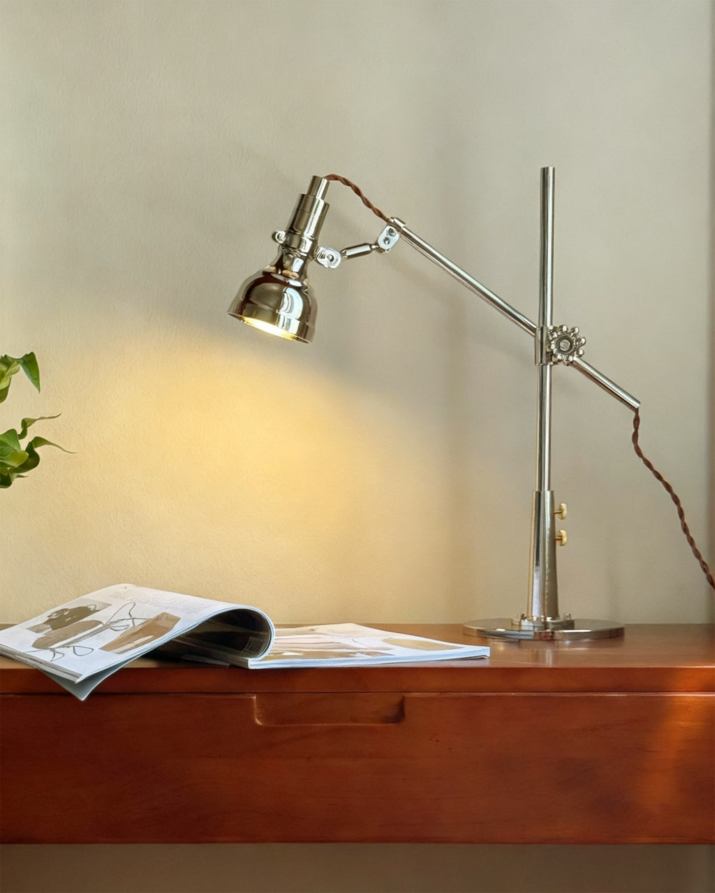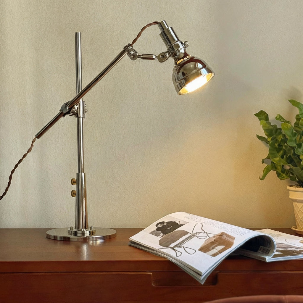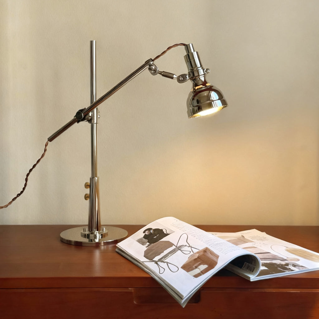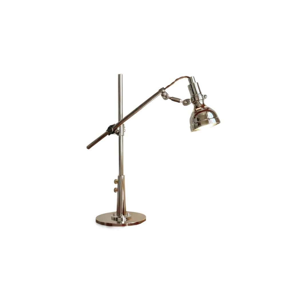 The Reynolds Table Lamp is all about its industrial-chic design and hands-on functionality. It features a fully adjustable arm and head in a beautiful polished nickel finish, so you can direct light exactly where you need it.