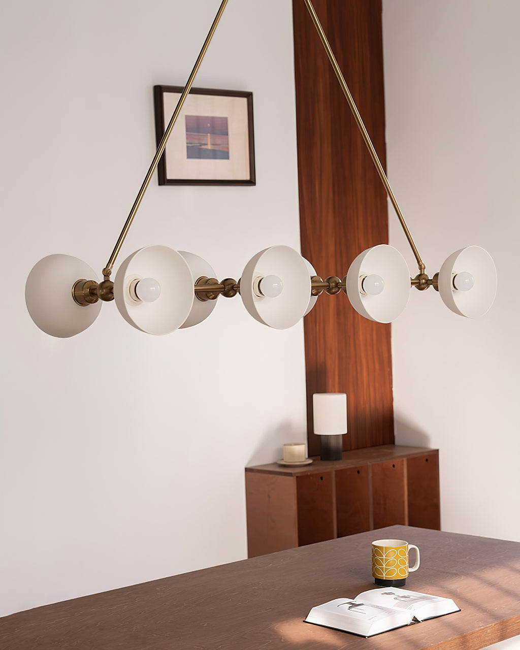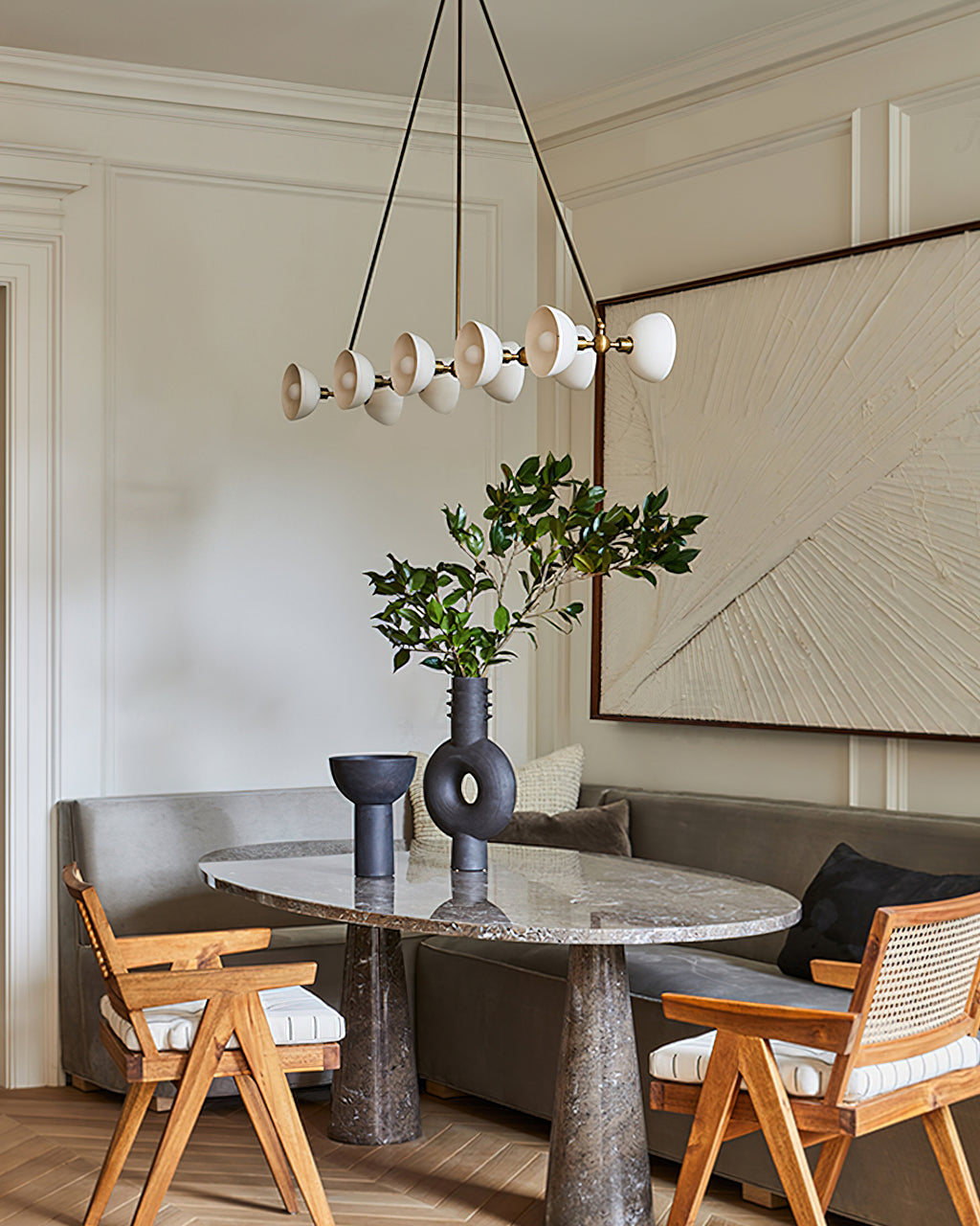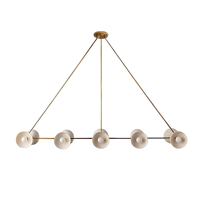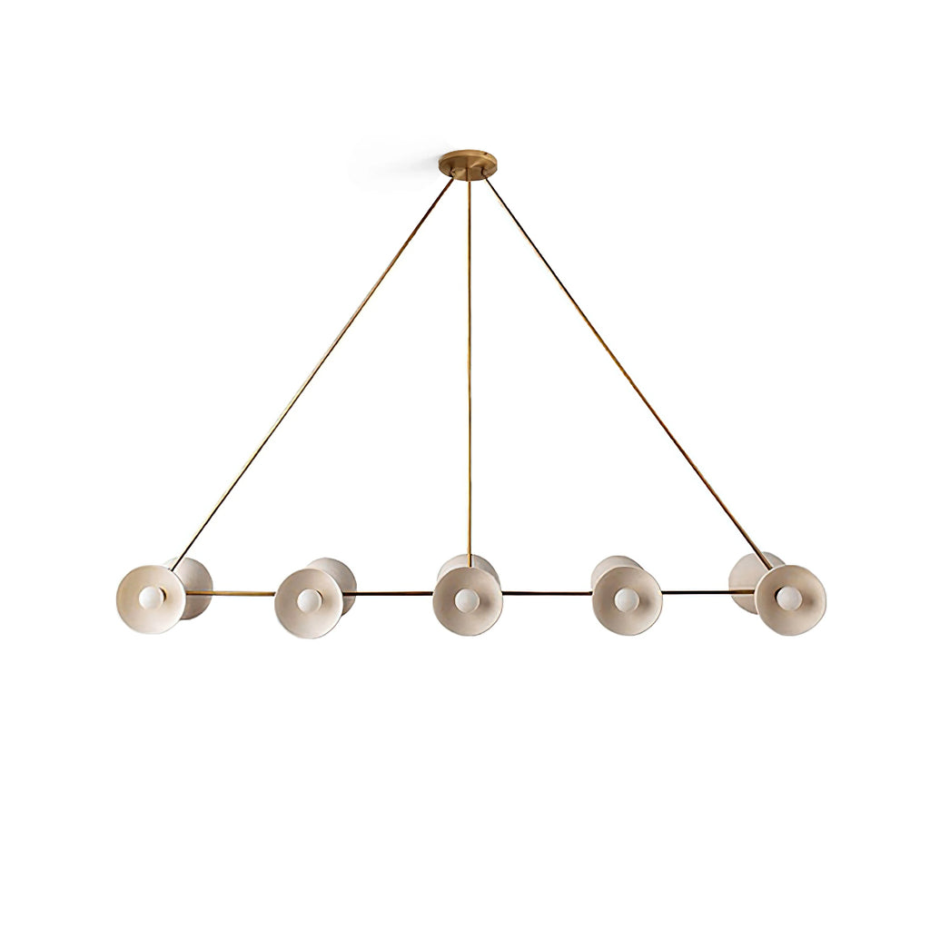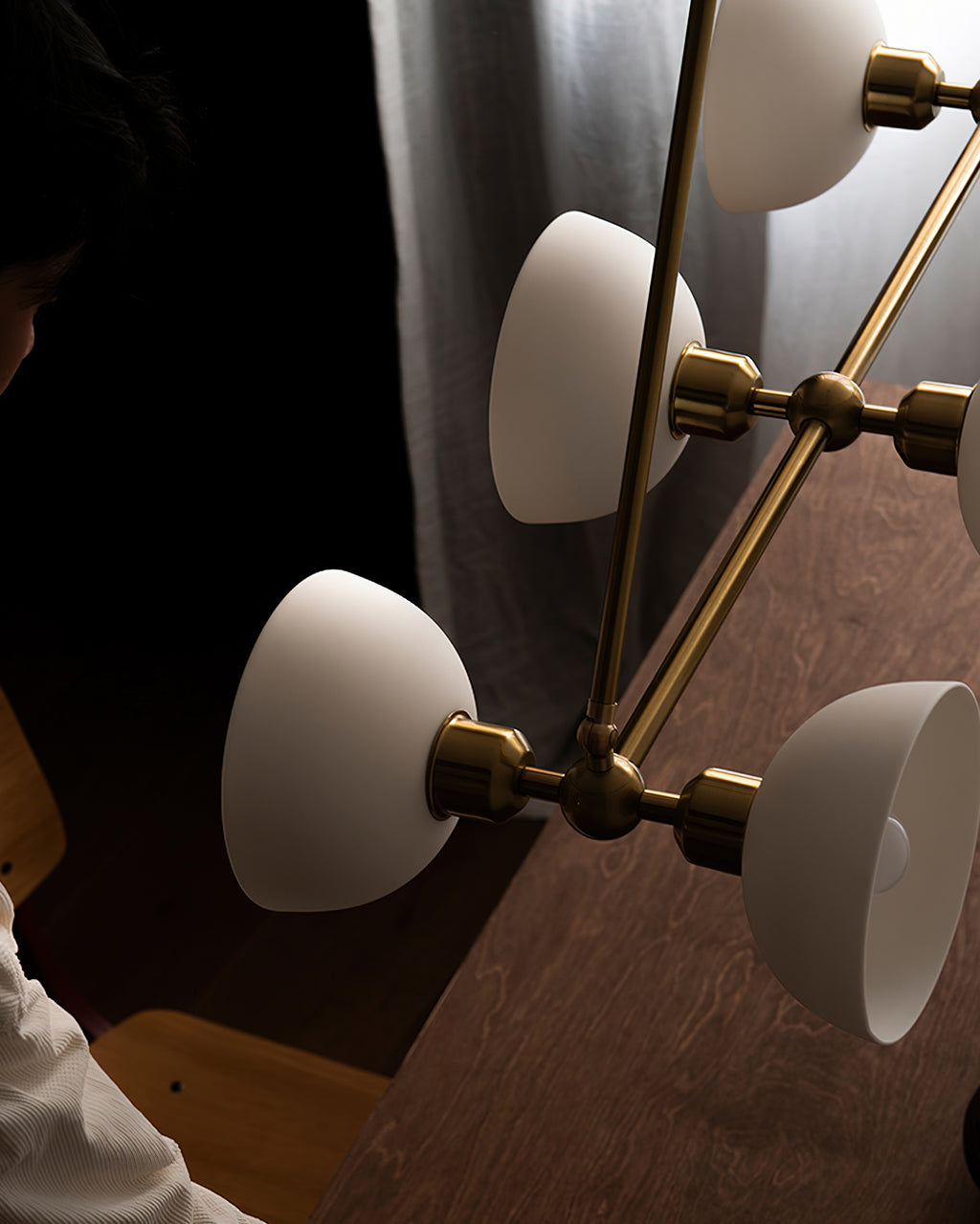 This Callisto Chandelier is all about its clean, architectural lines and delicate porcelain details. The brass frame has a great, minimalist look, but the real showstopper is how the porcelain shades themselves light up with a soft, warm glow. It's an elegant and modern light that’s a total conversation starter.