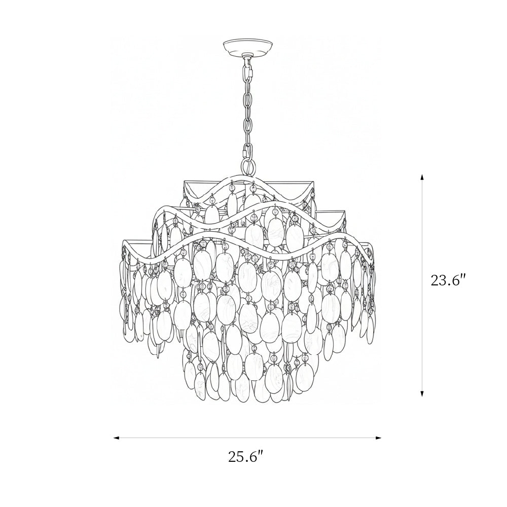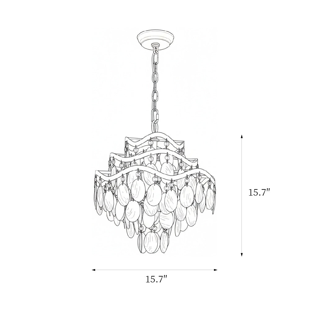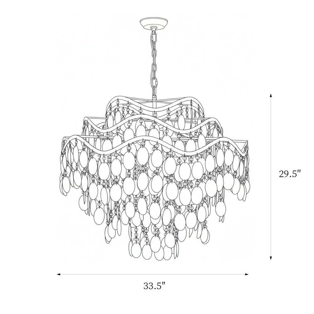 It has this perfect coastal-chic vibe that’s both elegant and relaxed. The frame is made of brass and has this really cool, wavy design that reminds you of the ocean. Then you have these gorgeous, cascading shells that give off the most beautiful, warm glow when the light is on. And for a little extra glam, there are tiny crystals tucked in that add a perfect touch of sparkle. It’s a stunning piece that feels special without being stuffy.
