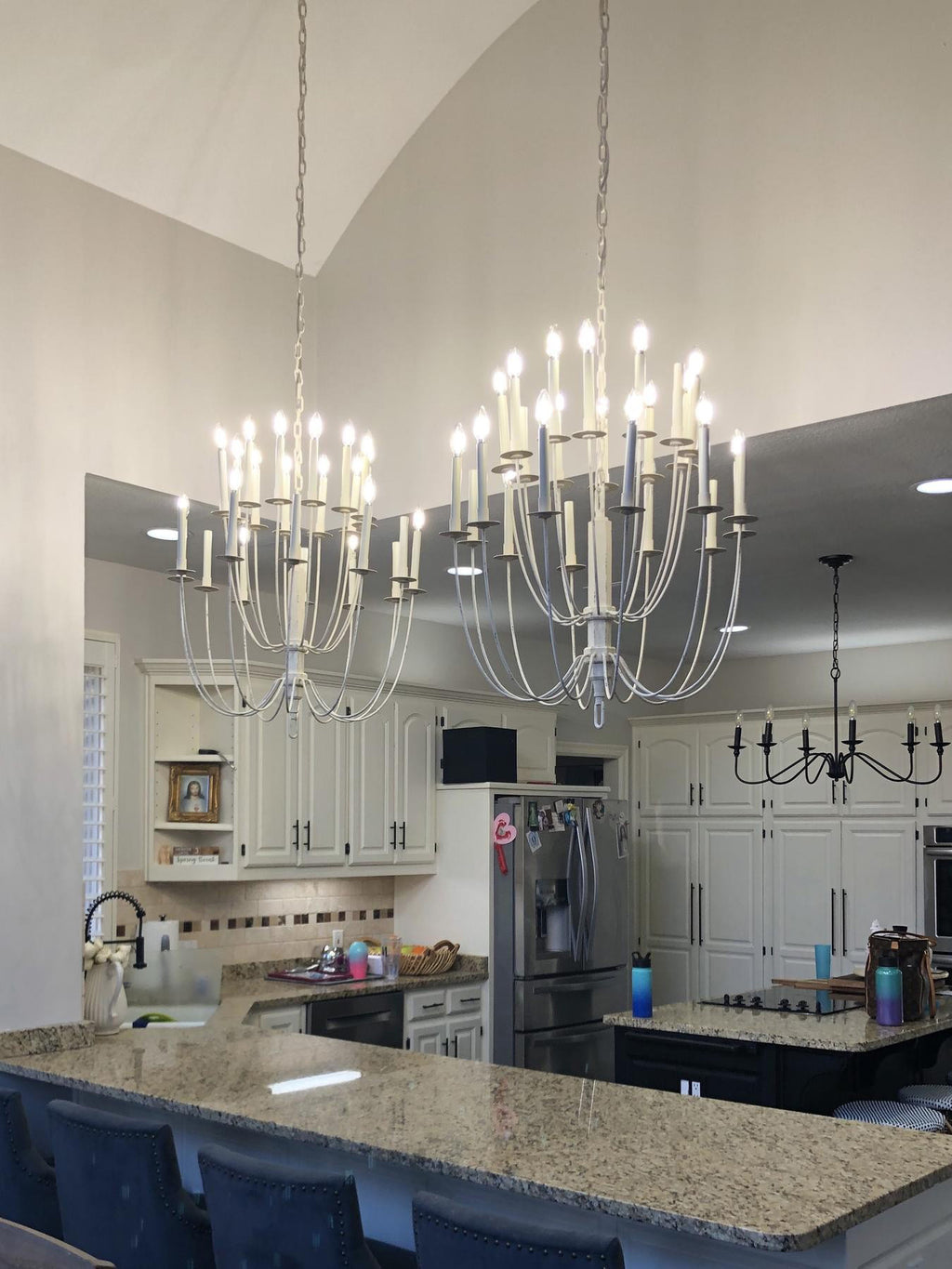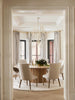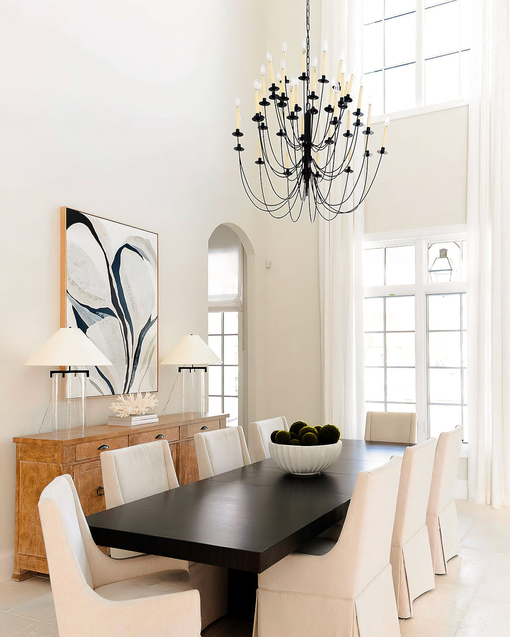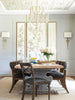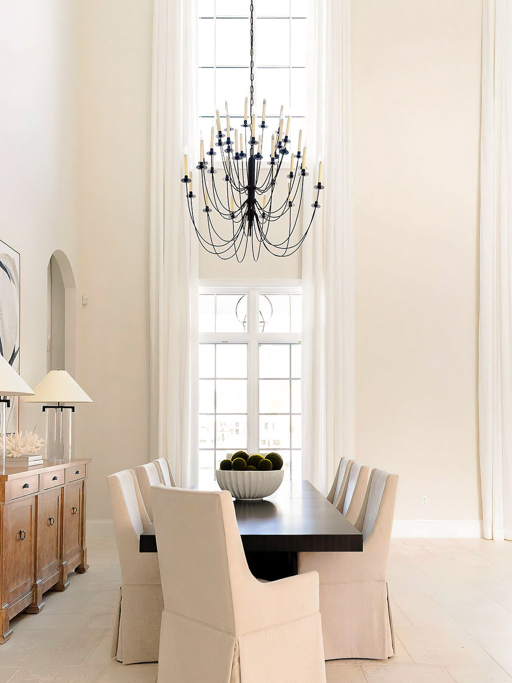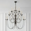 This elegant Erika Chandelier castle-inspired aesthetic to any formal setting. Featuring delicate metal rods and candelabra bulb sockets, it creates a captivating lighting display. Ideal for your dining or living room, this chandelier is sure to become a striking focal point in any space.