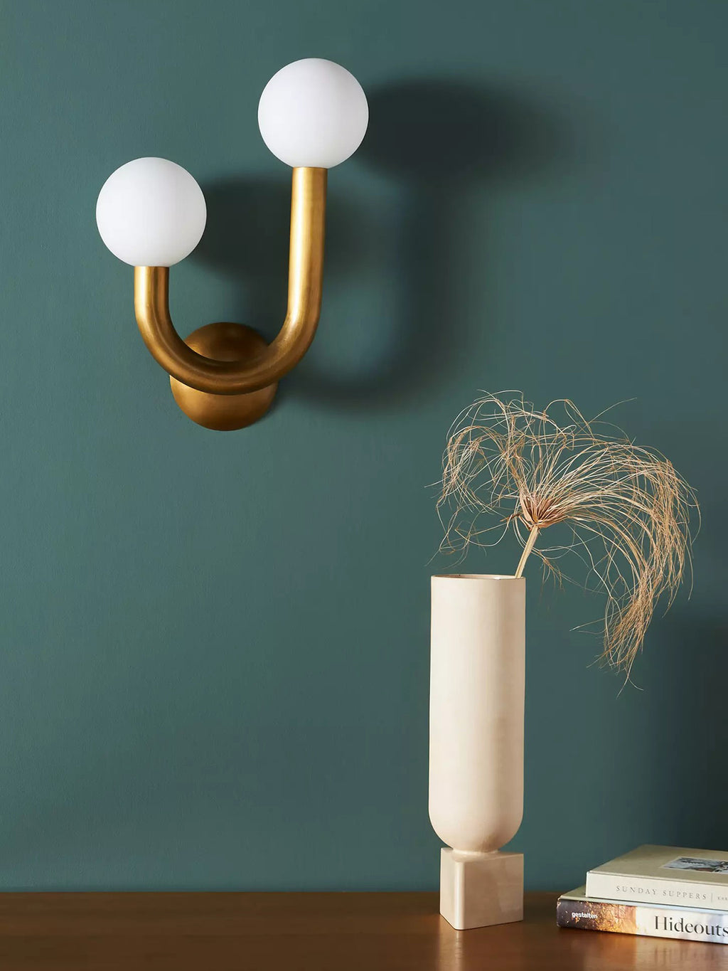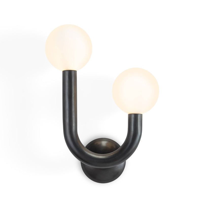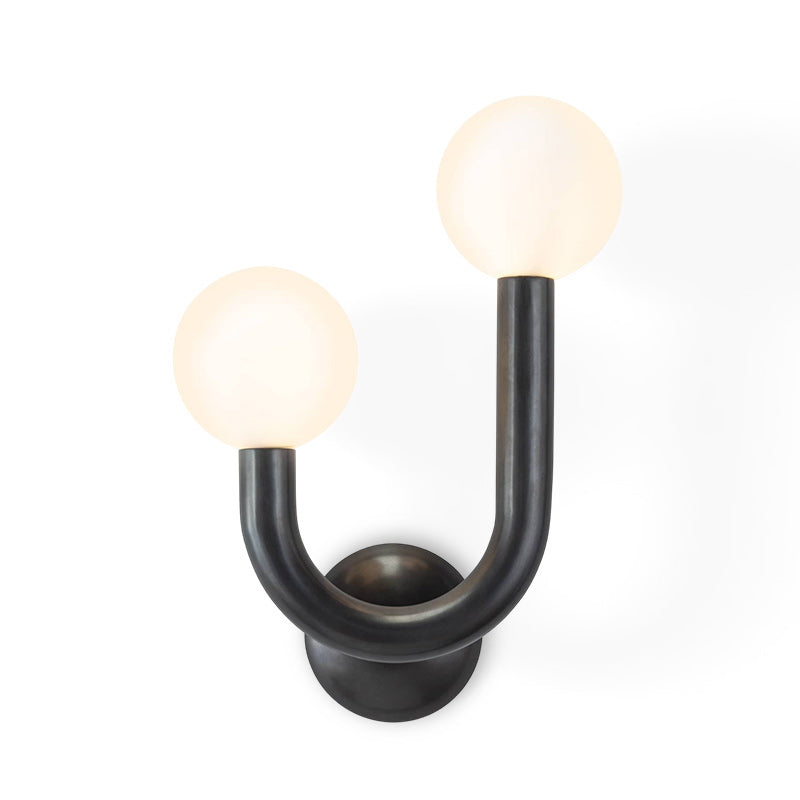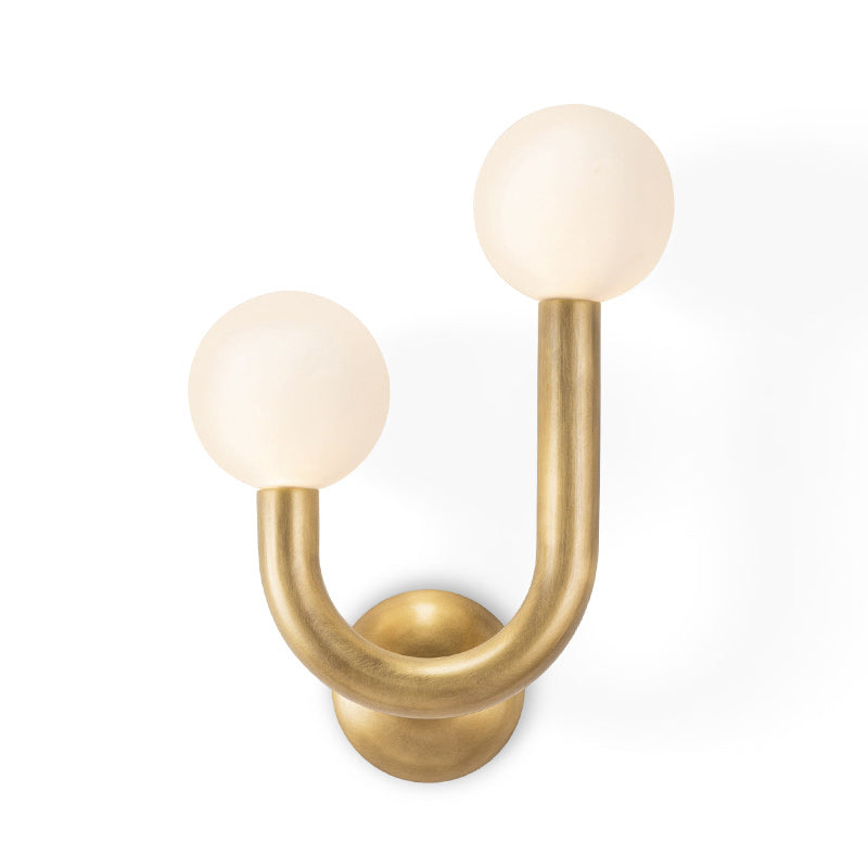 The Happy Sconce is a unique mix of modern and playful. Happy's simple, asymmetrical charm creates uplifting illumination perfect for an entryway, hallway, bedroom, or living space. The sconce's metal frame and contrasting matte white glass globes create an elevated take on a playful shape.
