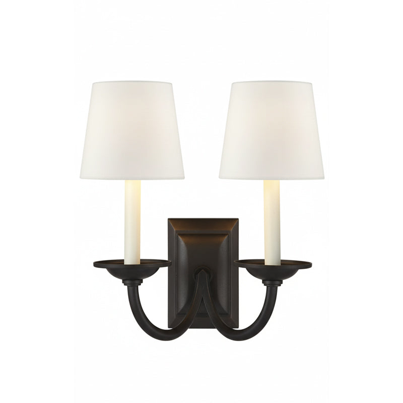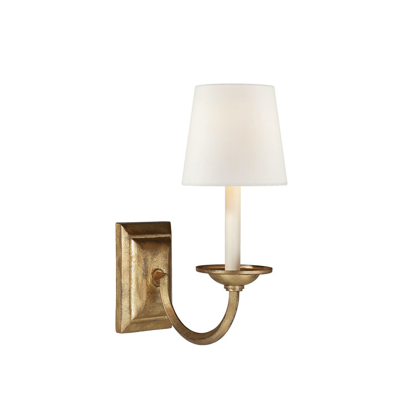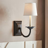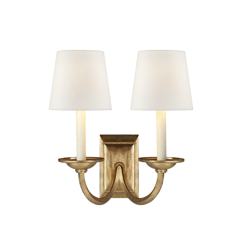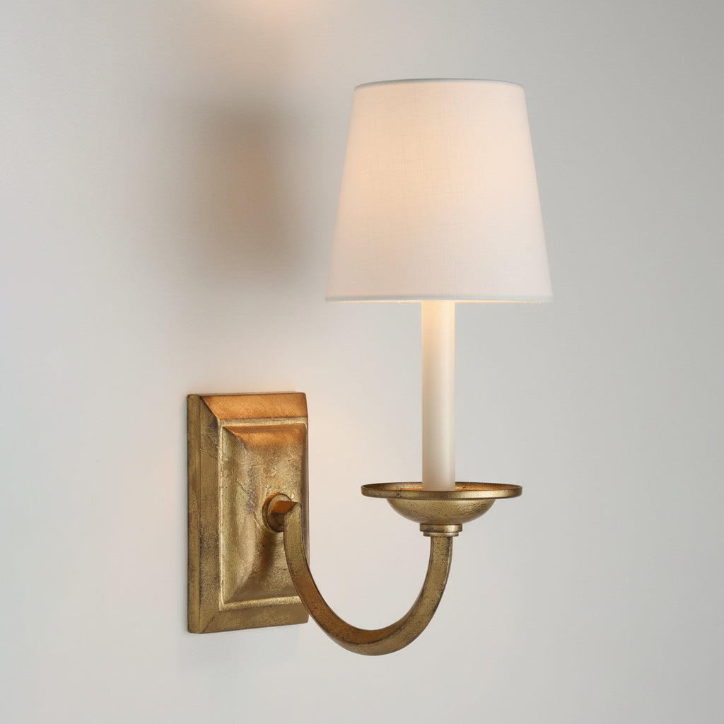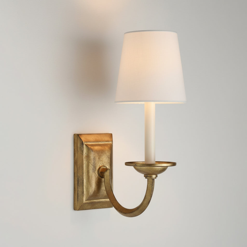 Experience the perfect blend of classic design and warm ambiance with the Katie Wall Lamp. Meticulously crafted from solid brass, this sconce features a rich, gilded finish that imparts a sense of history and luxury. A gracefully curved arm supports a classic candle-style light, topped with a crisp fabric shade that casts a soft, inviting glow.