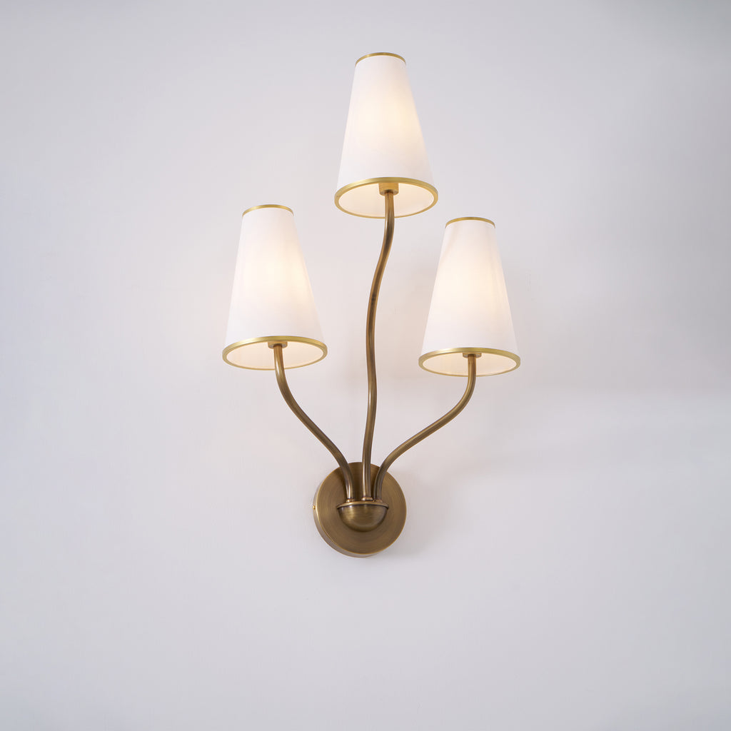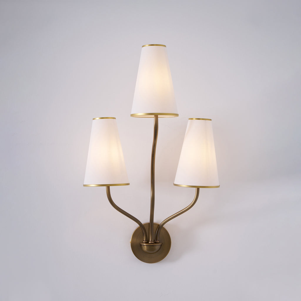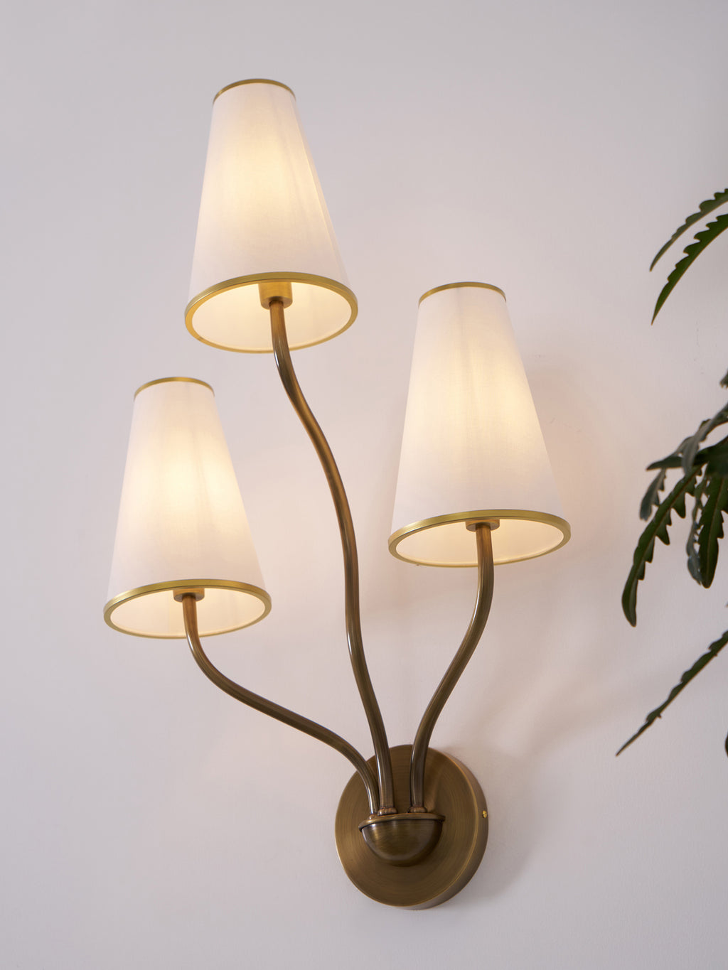 Classic yet modern, the Montreuil Wall Lamp is designed to add a touch of elegance to any space, creating a relaxed and sophisticated atmosphere. Its slender, soft lines, paired with a white fabric shade, create the perfect transition between classic and modern.