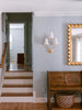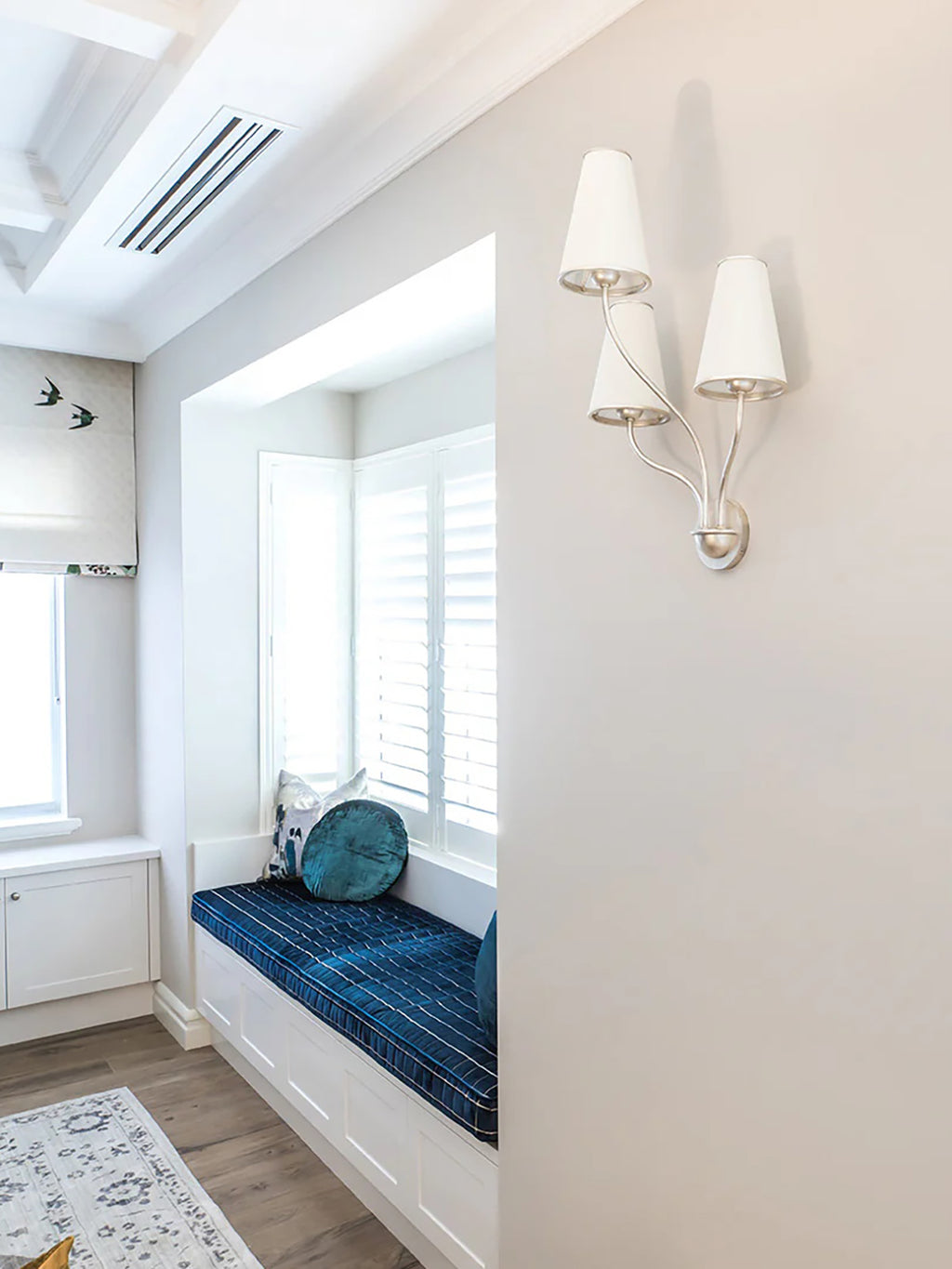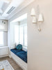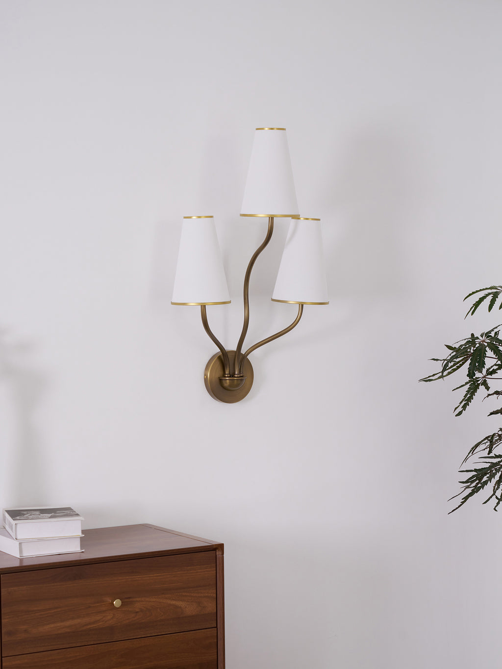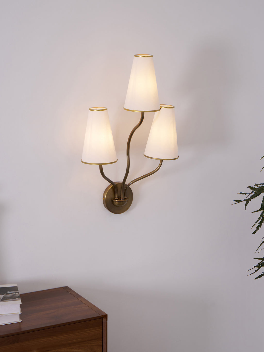 Classic yet modern, the Montreuil Wall Lamp is designed to add a touch of elegance to any space, creating a relaxed and sophisticated atmosphere. Its slender, soft lines, paired with a white fabric shade, create the perfect transition between classic and modern.