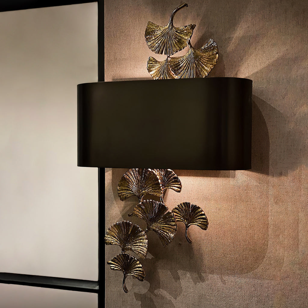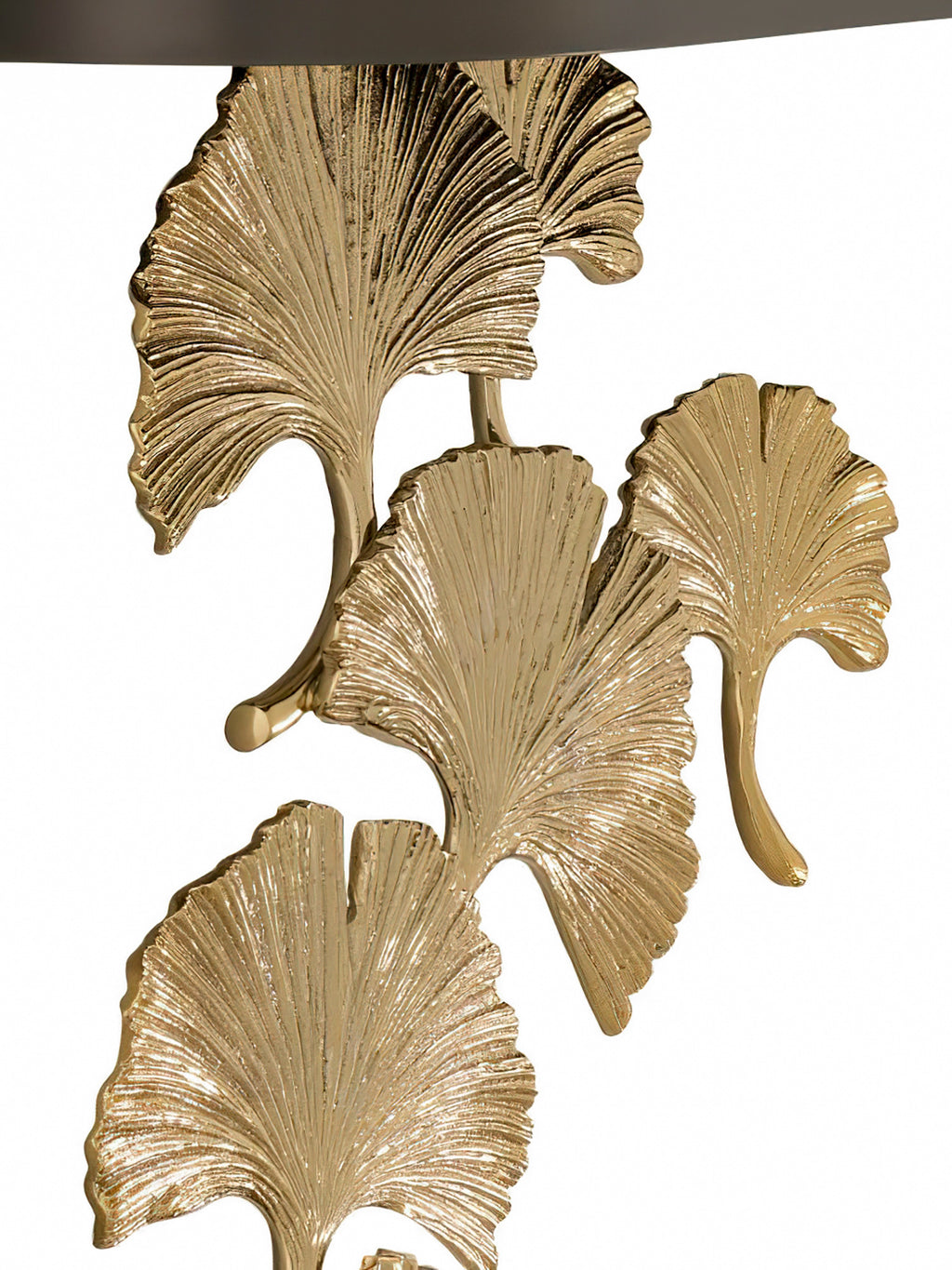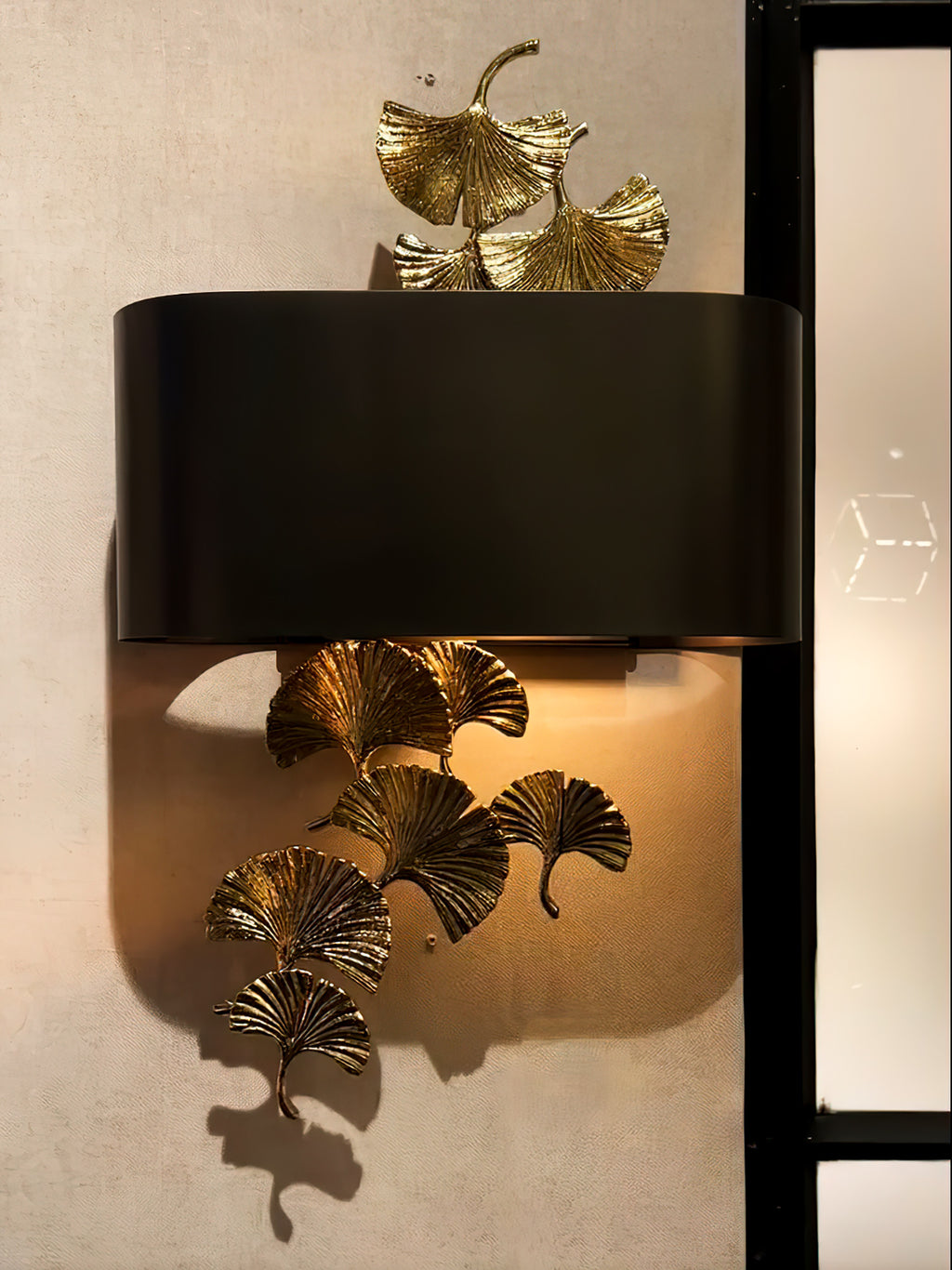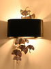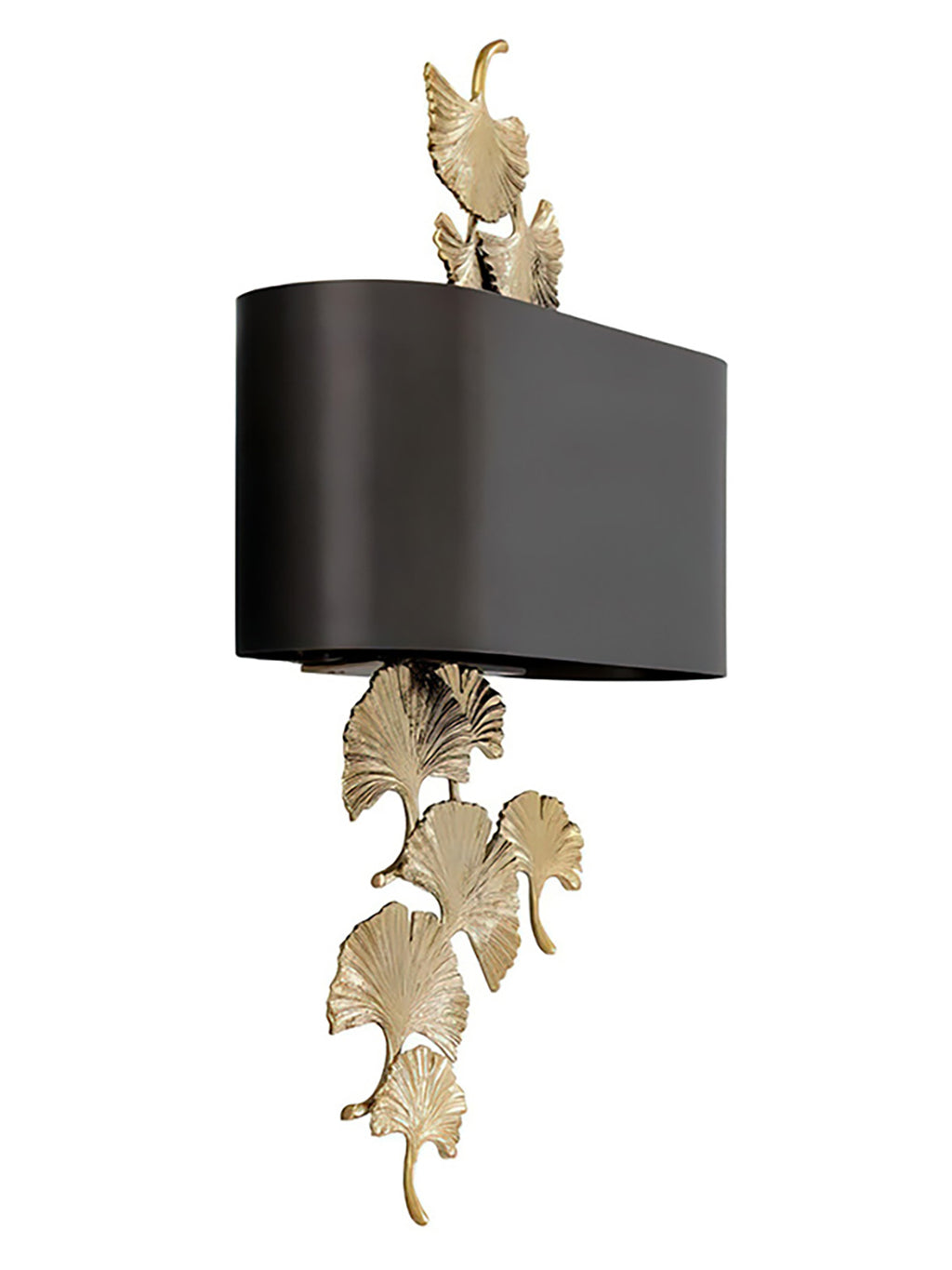 The Regina Wall Lamp featuring a sculptural body with gold-finished palm leaves, this ultra-chic wall lamp will bring tropical glamour into your home. Teamed with a striking black shade, this sensational light looks stunning even before it is lit. A perfect addition to several interior designs.