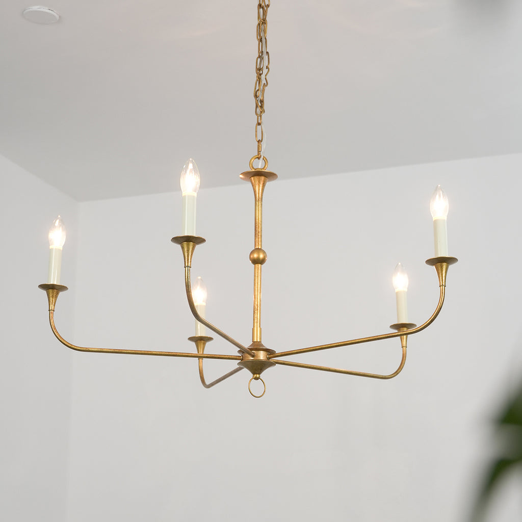 Elevate your home with the refined beauty of the Nottaway Chandelier 5-Light Candelabra Chandelier. The five candelabra-style lights provide ample illumination, creating an inviting ambiance in dining rooms, living areas, and entryways. Designed with a classic yet modern silhouette, the Nottaway Chandelier complements a variety of interior styles, from transitional to contemporary. Its open-frame design keeps the look airy and refined, allowing the light to shine freely and enhance your home.