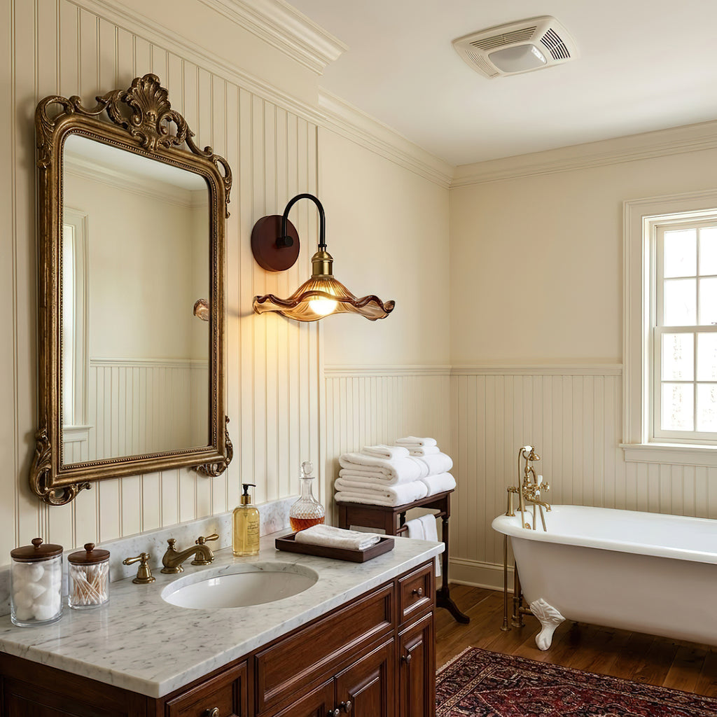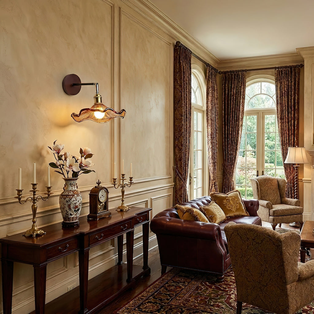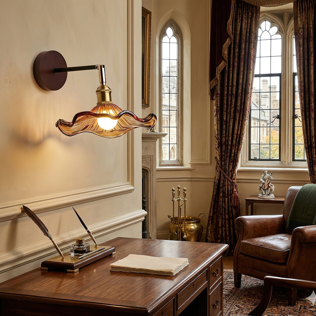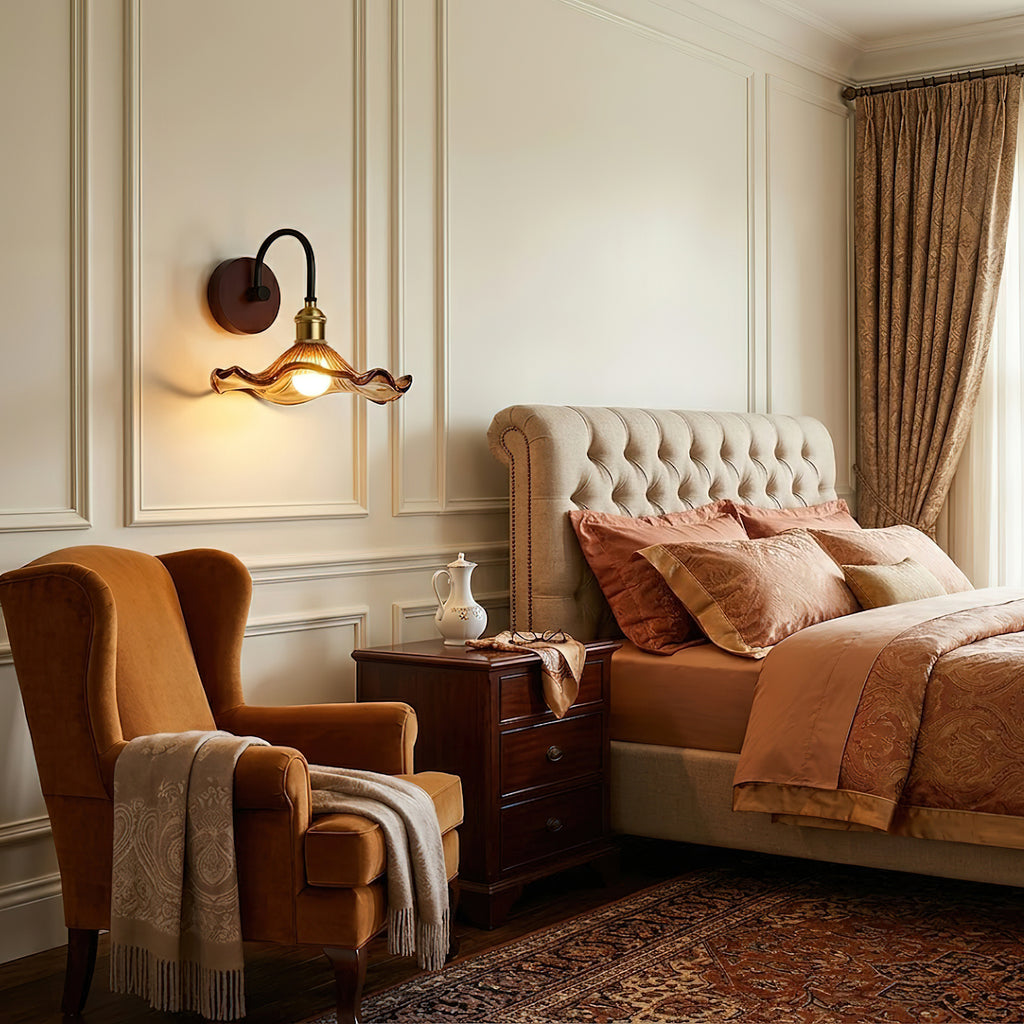 The Morgan Wall Lamp reinterprets the elegance of vintage aesthetics with its unique, graceful silhouette. A flowing, arched arm supports a wavy-edged shade that spreads out like a natural petal, allowing light to pour out gently from within the unfolding lines. It serves as both a warm beacon in an entryway and a finishing touch for a tranquil bathroom atmosphere, perfectly merging artistic sensibility with functional design.