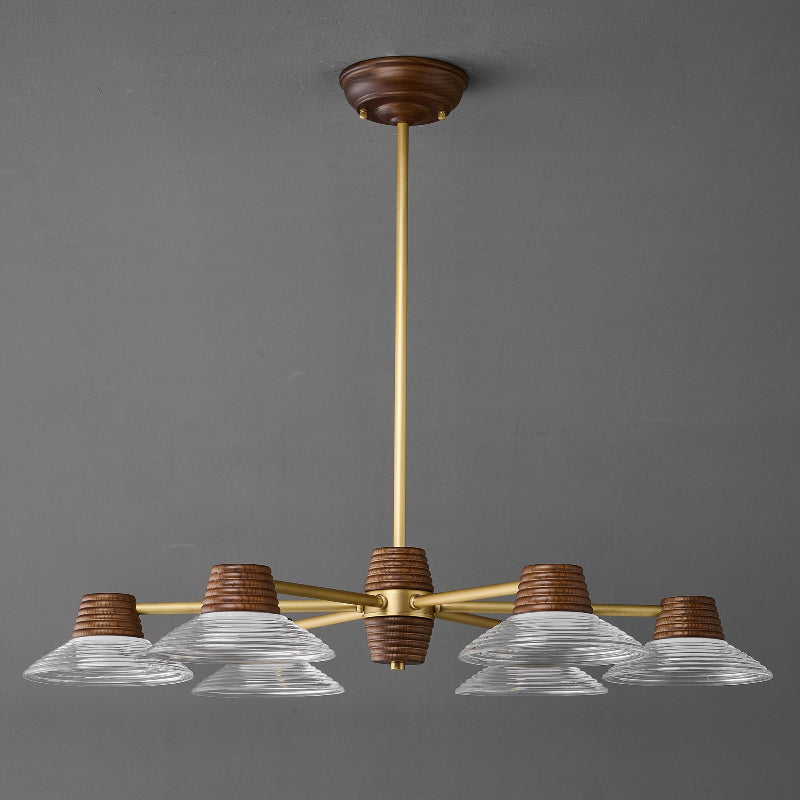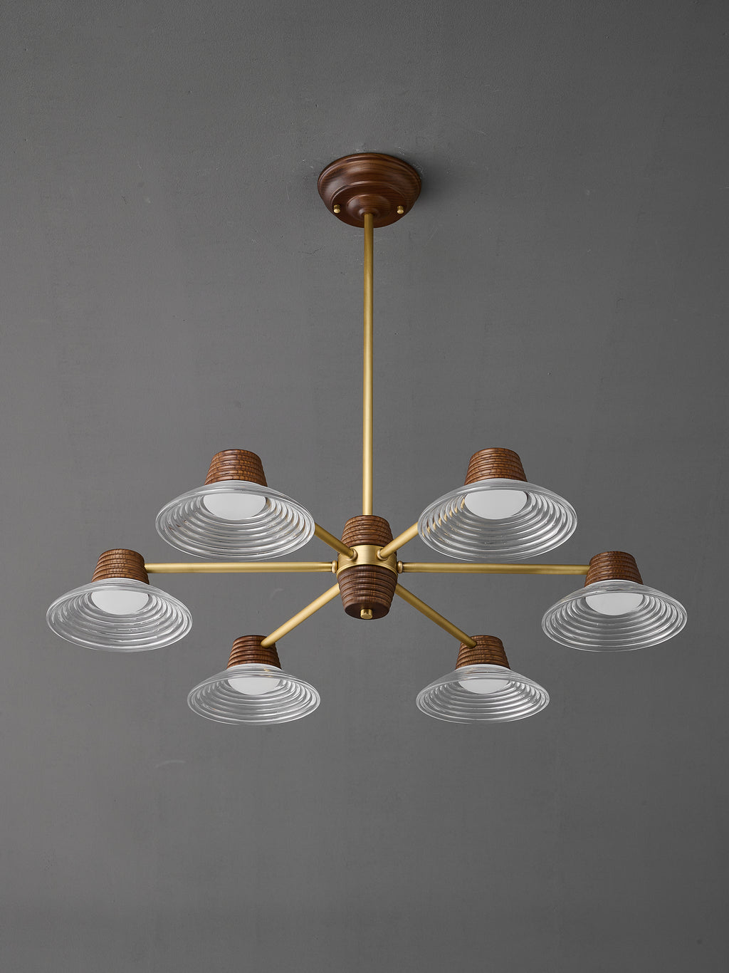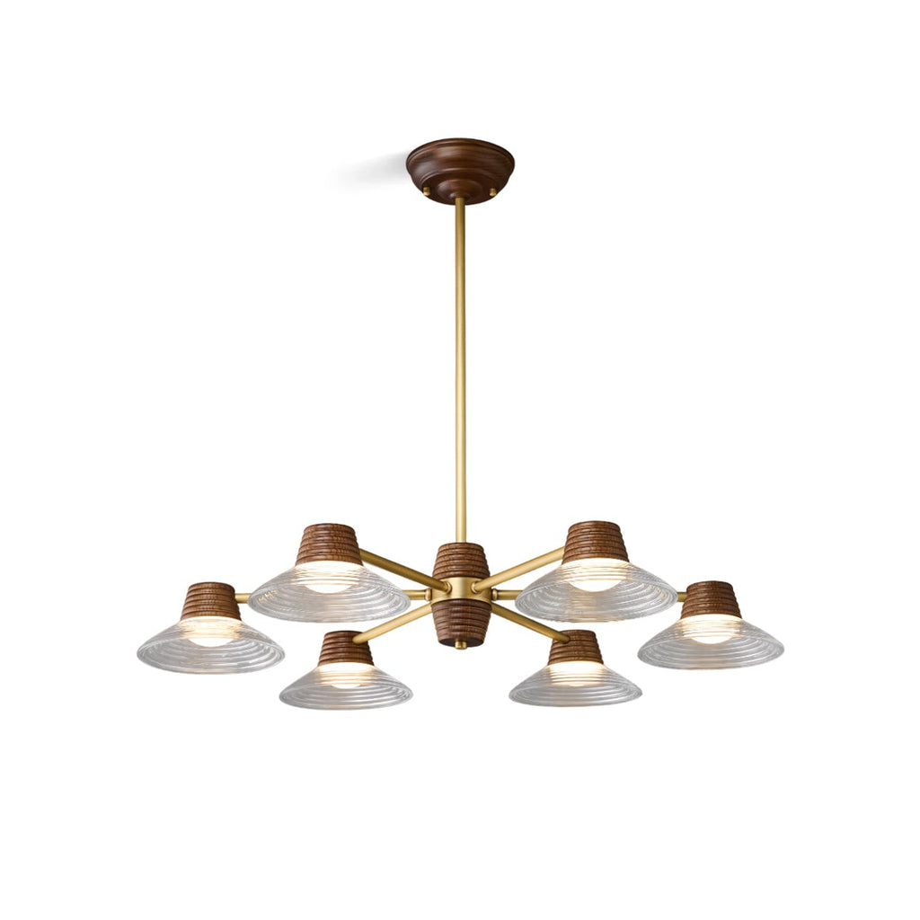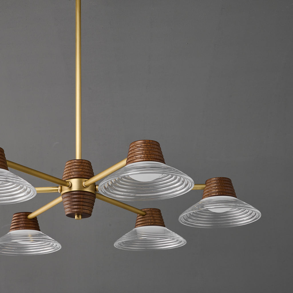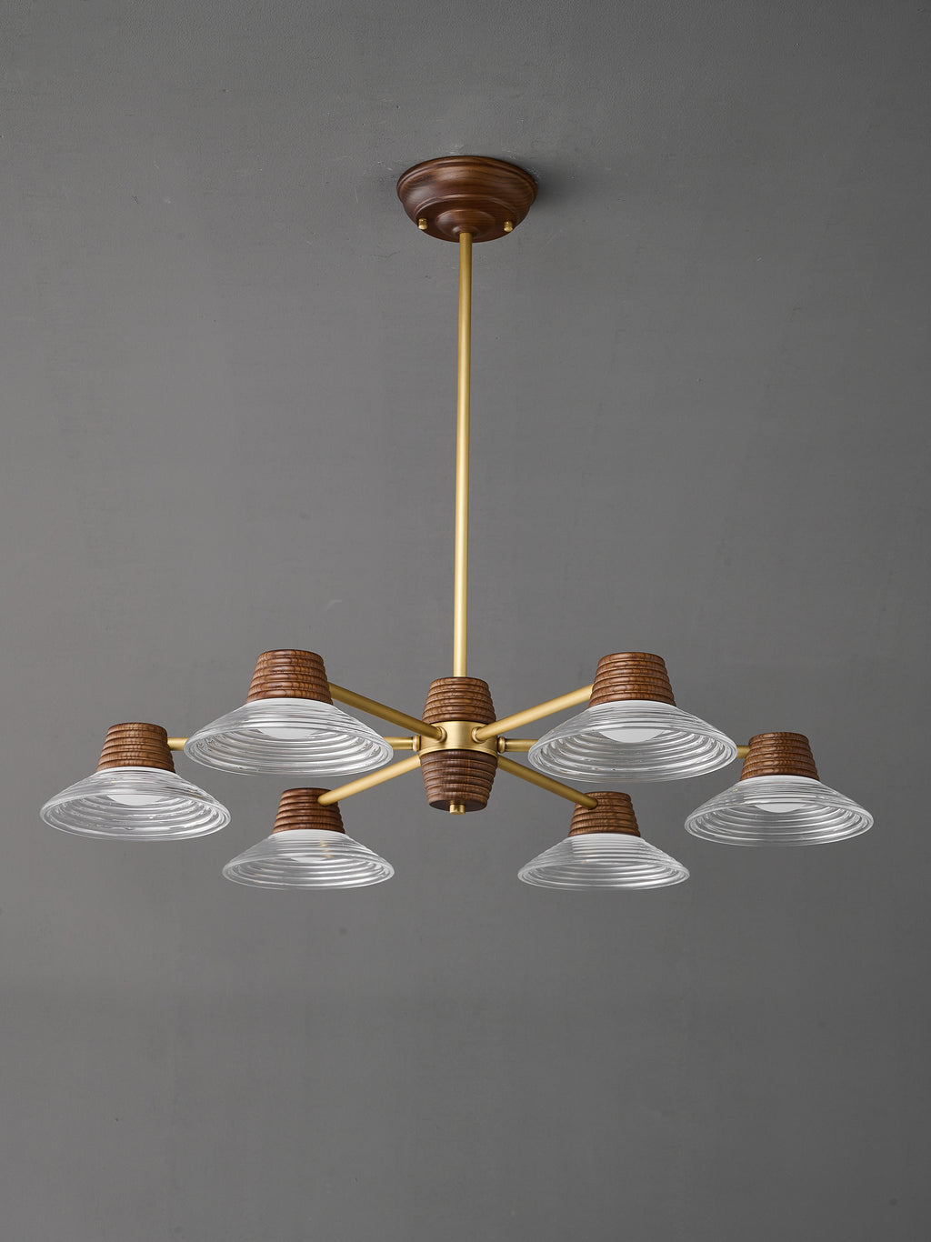 The Lydia Chandelier combines timeless elegance with refined craftsmanship. Featuring warm brass accents paired with natural ash wood and delicate glass elements, this fixture delivers sophisticated ambient lighting for any interior. The harmonious blend of materials creates visual interest while maintaining a cohesive aesthetic. Perfect for dining rooms, entryways, or living spaces seeking a statement piece that balances modern sensibility with classic design principles.