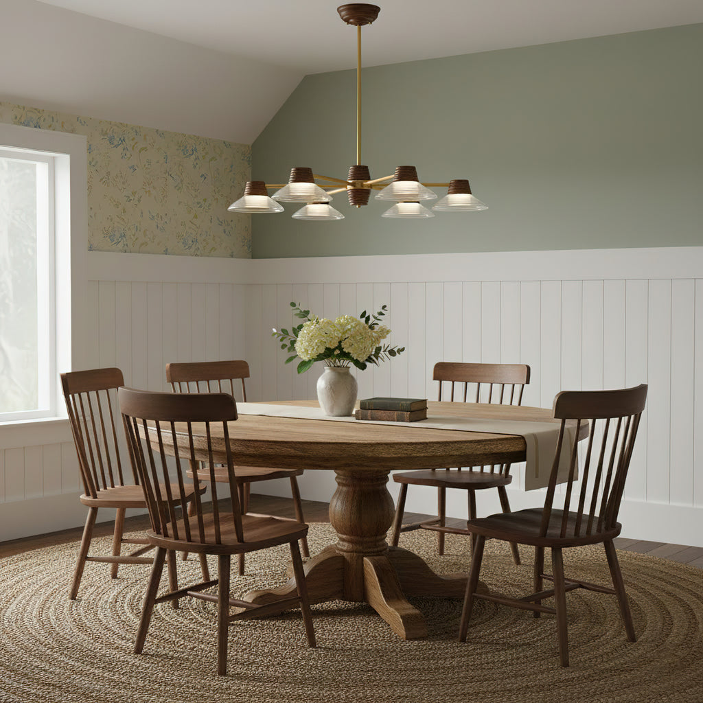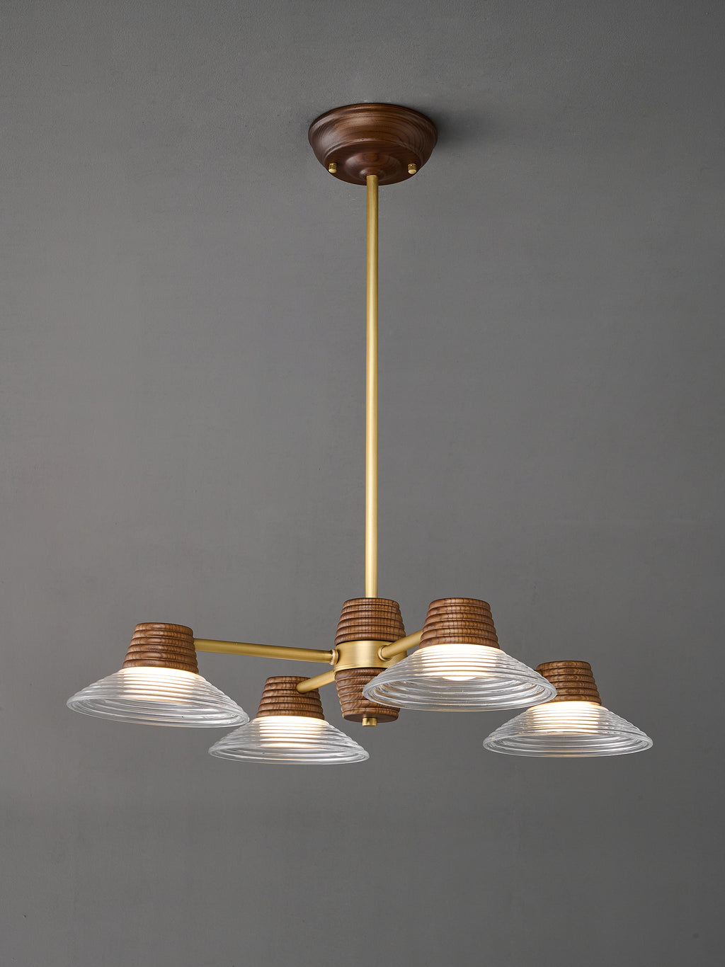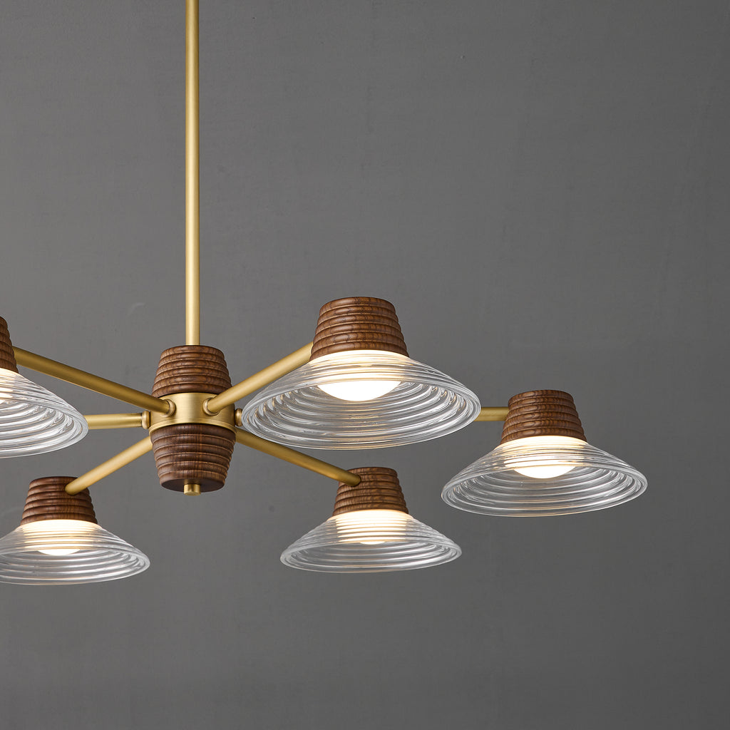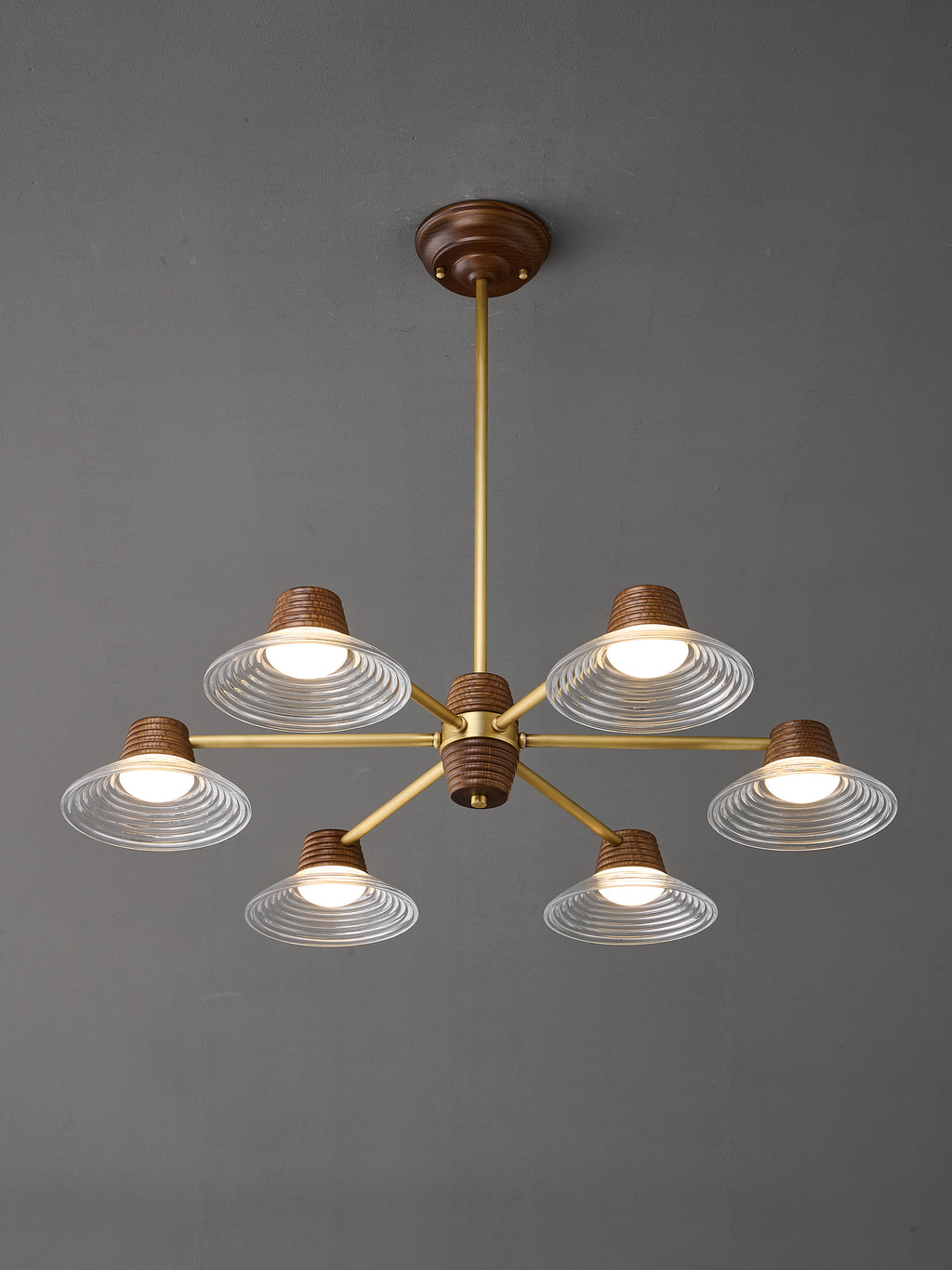 The Lydia Chandelier combines timeless elegance with refined craftsmanship. Featuring warm brass accents paired with natural ash wood and delicate glass elements, this fixture delivers sophisticated ambient lighting for any interior. The harmonious blend of materials creates visual interest while maintaining a cohesive aesthetic. Perfect for dining rooms, entryways, or living spaces seeking a statement piece that balances modern sensibility with classic design principles.