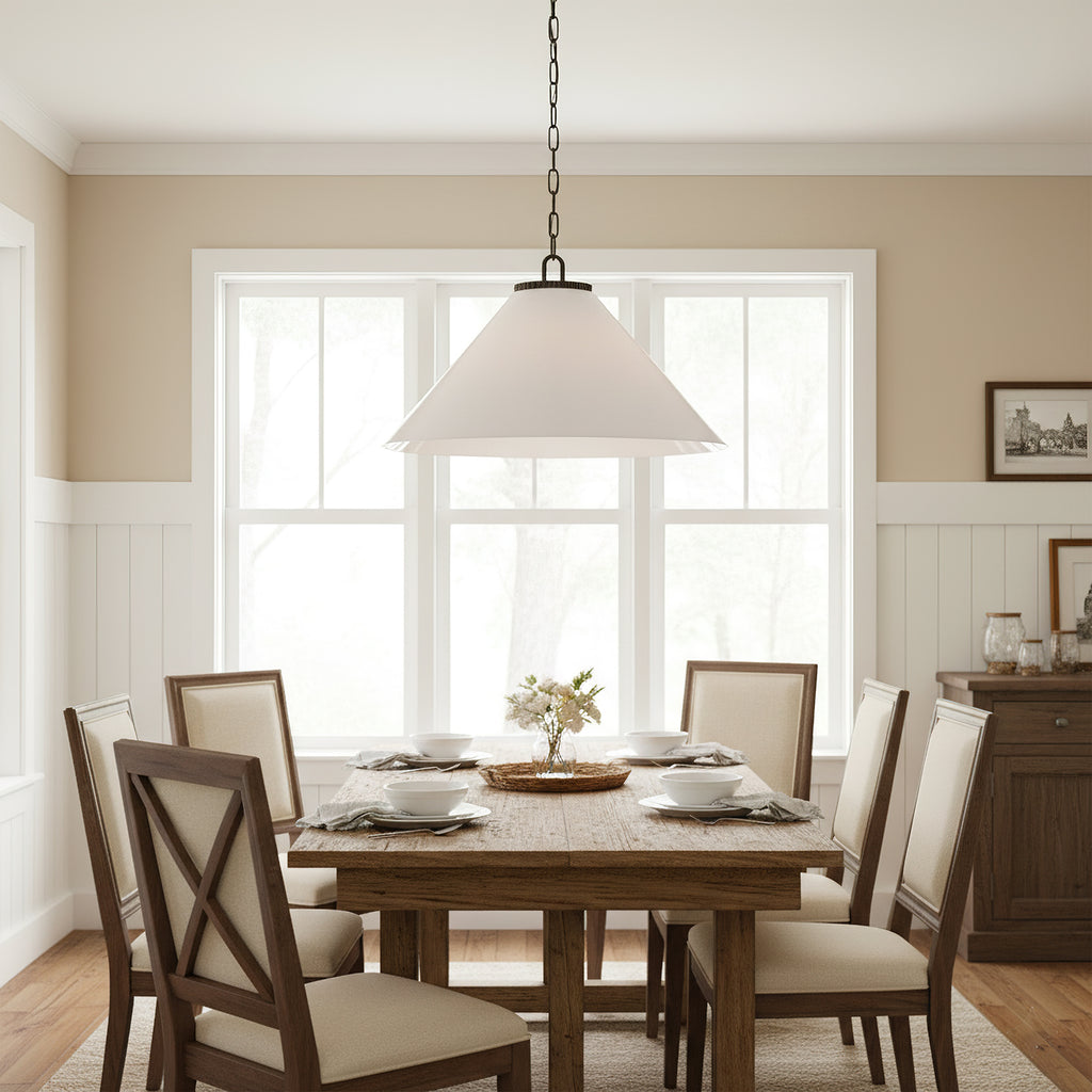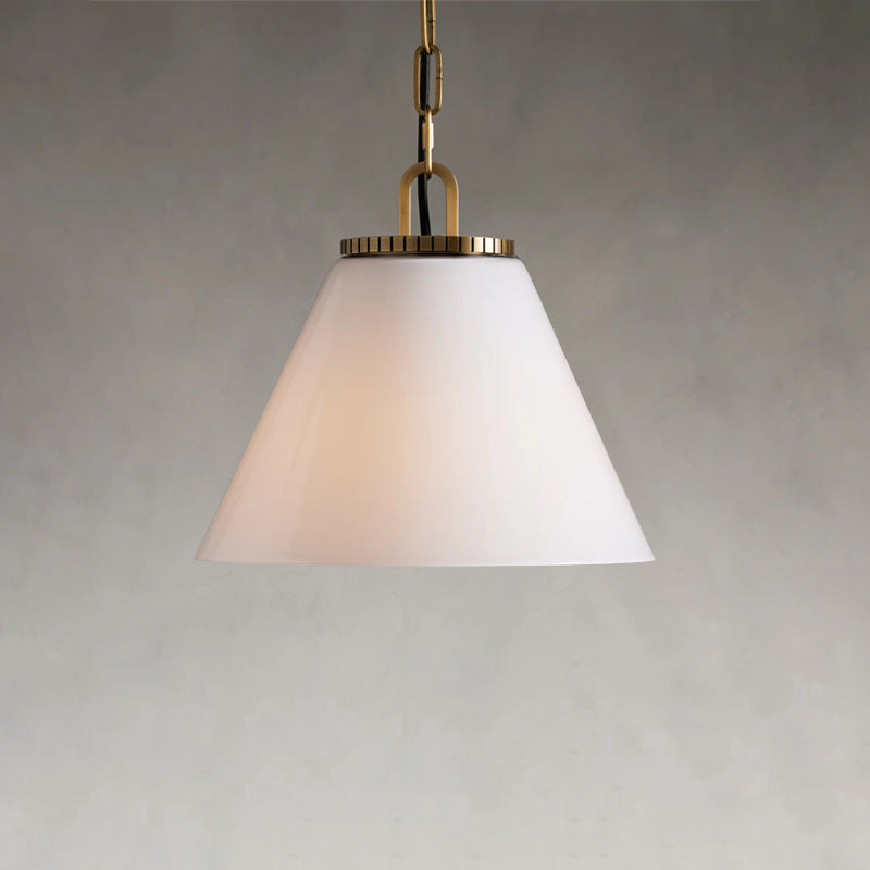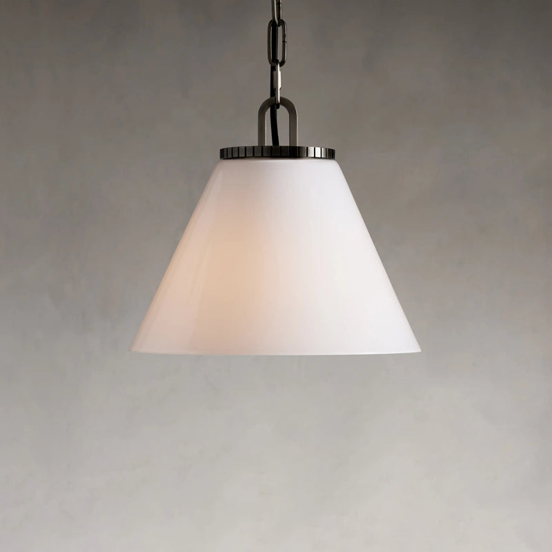 That classic cone shape with a milky white glass shade. It’s a clean look that never goes out of style. Seriously, it fits with almost any decor. It's a small piece that makes a big impact!