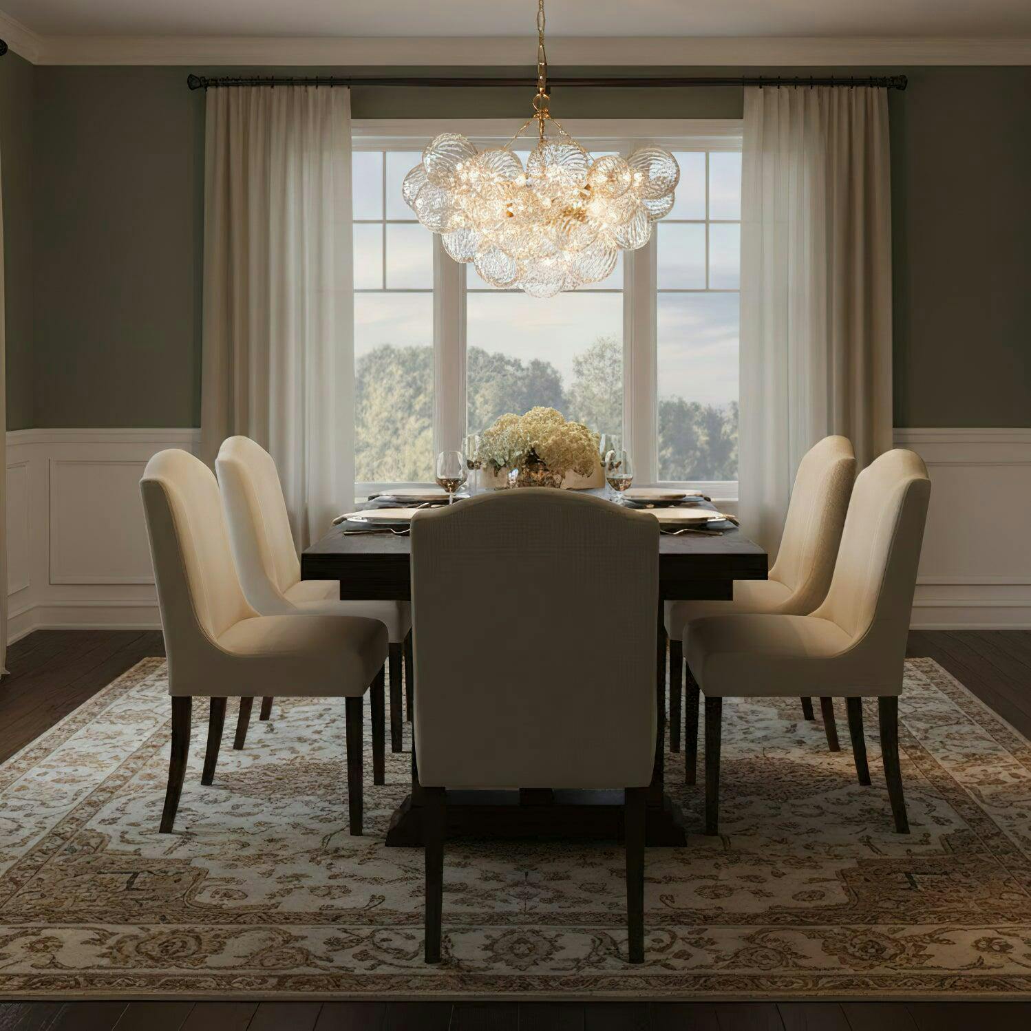 The Talia Chandelier represents a refined approach to overhead lighting, engineered with a robust iron construction that anchors the design while glass accents introduce transparency and luminous depth. This fixture's architectural presence elevates interior spaces through its balanced proportions and material contrast. The glass components allow light to disperse evenly, creating layered illumination that enhances both form and function. A sophisticated choice for those seeking enduring quality and understated luxury in their lighting solutions.