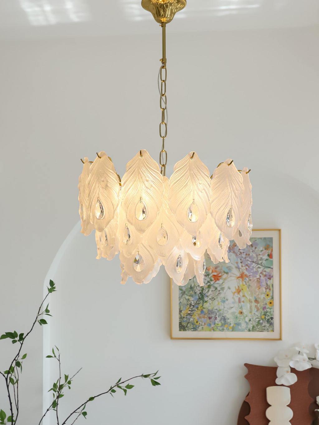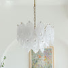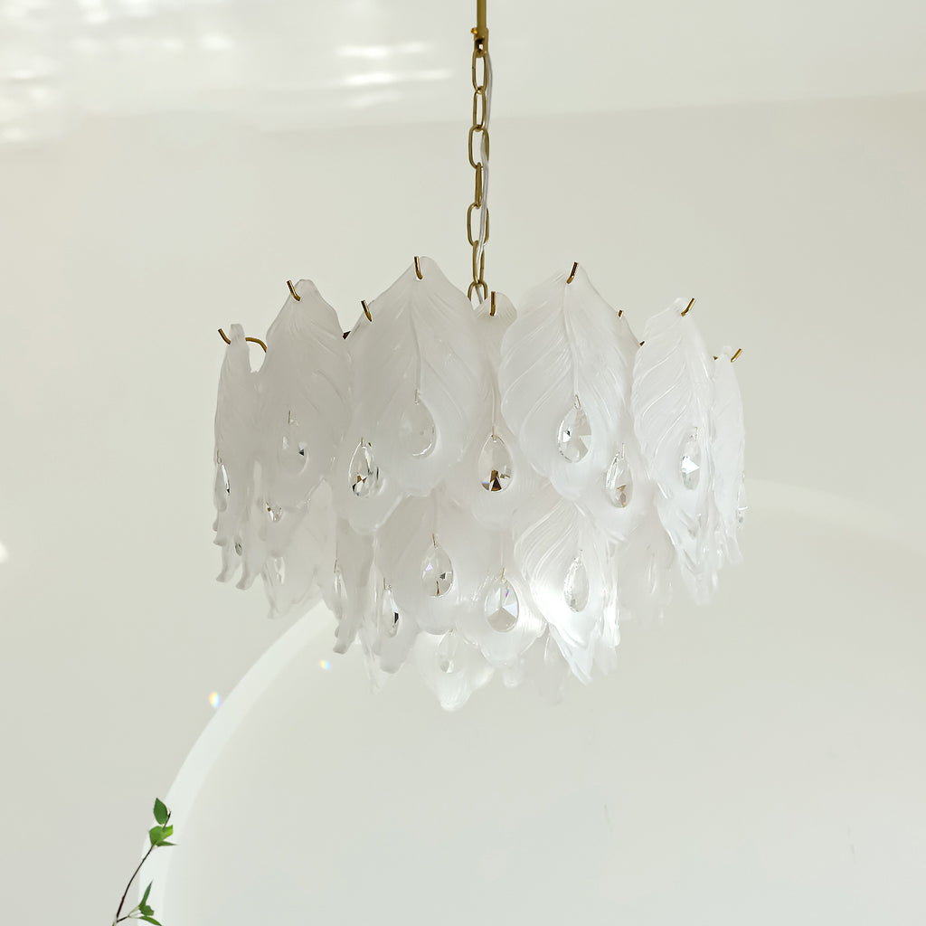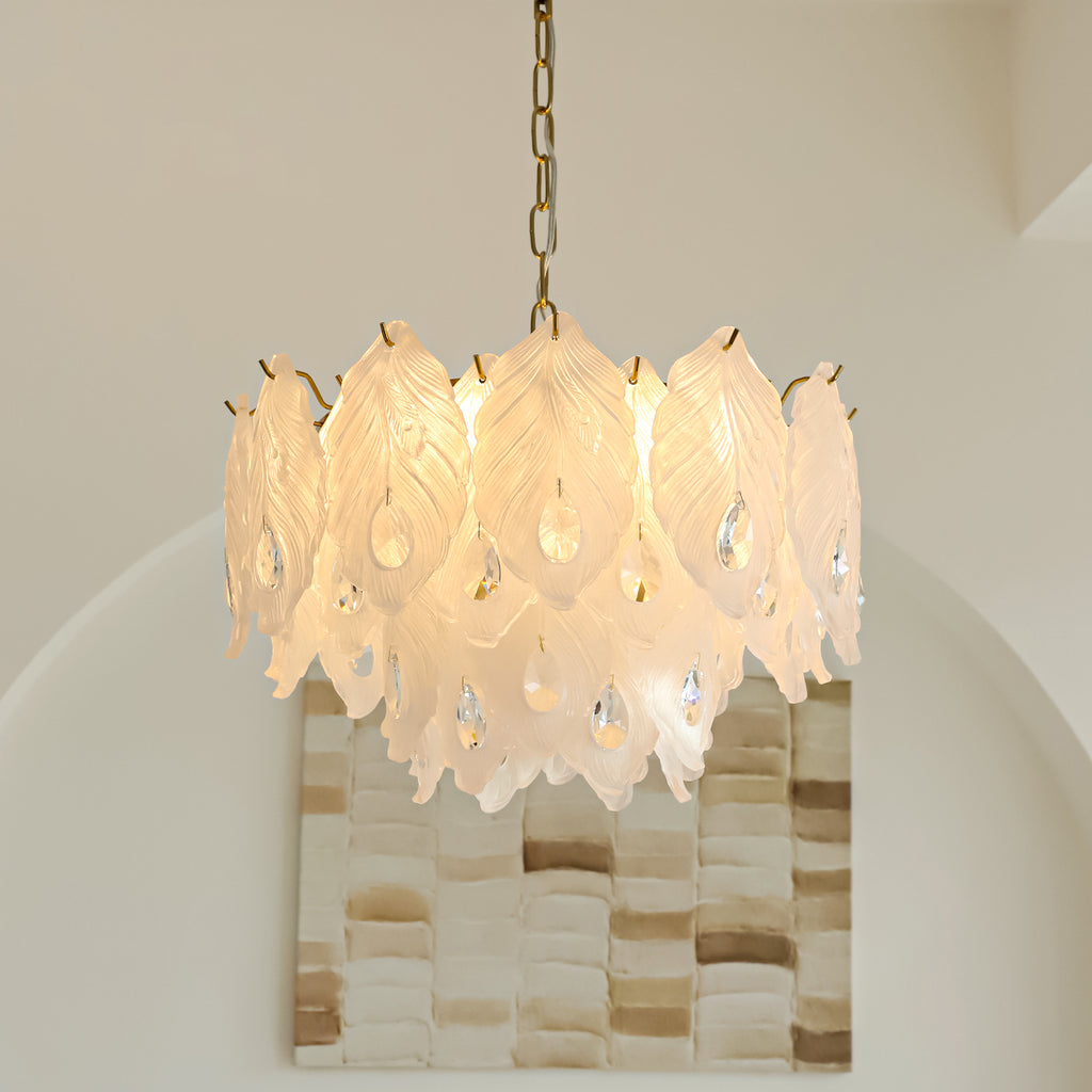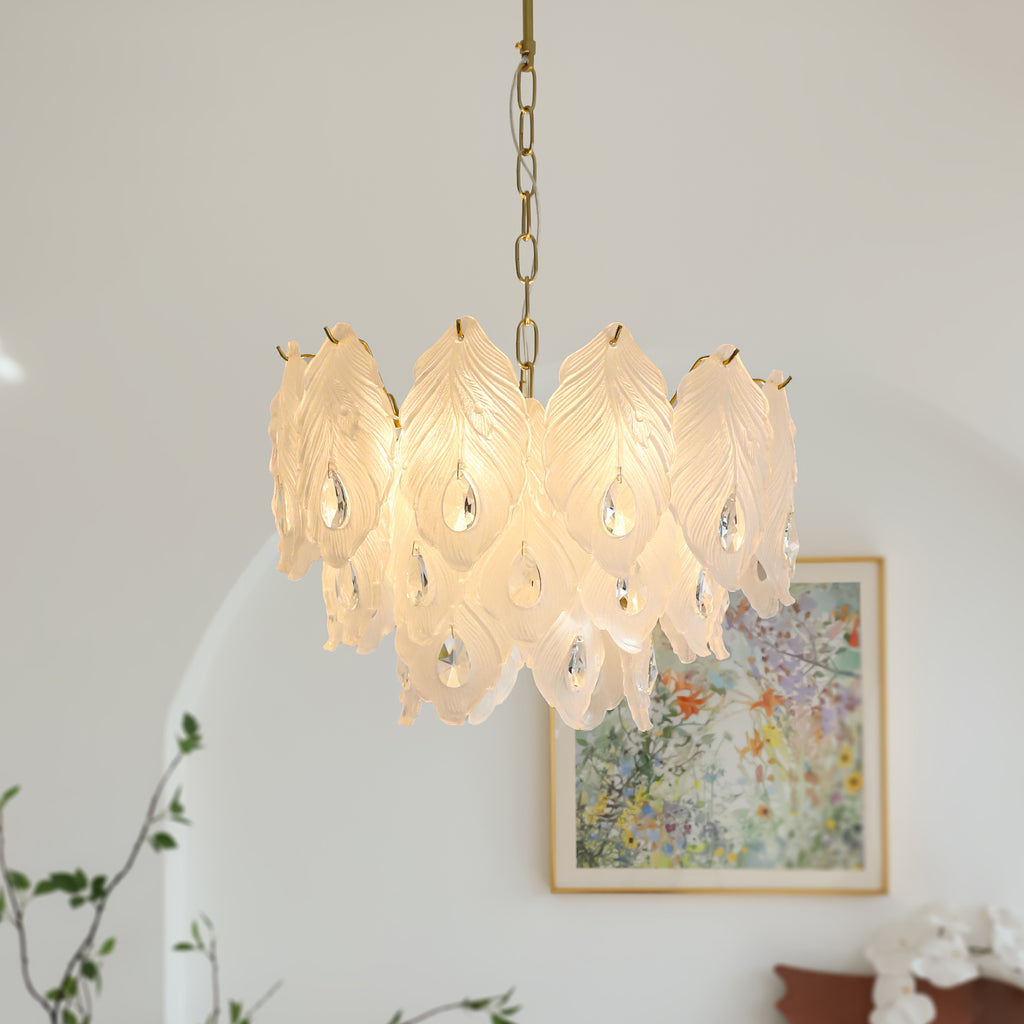 Add a touch of playful sophistication to your space with this dazzling chandelier. Its unique design, featuring textured glass, creates a captivating play of light. This elegant piece is perfect for illuminating your any room.Prepare to be delighted by its radiant charm!